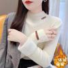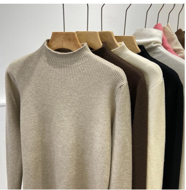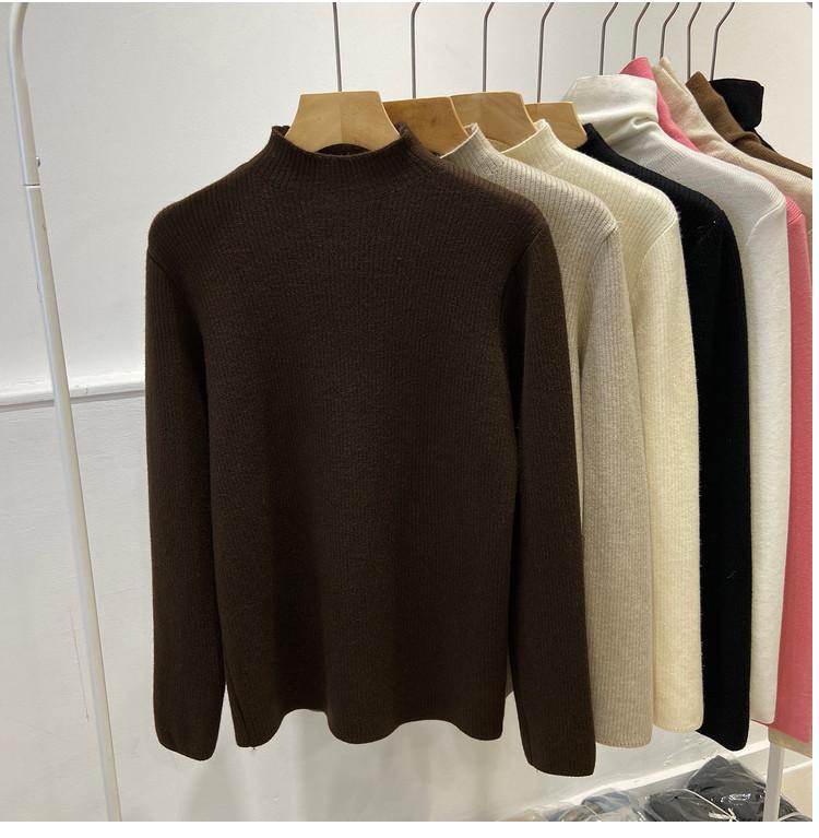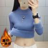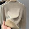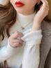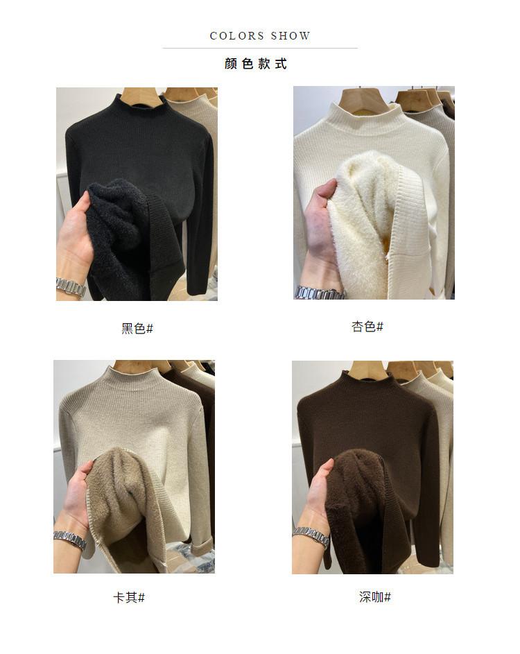 Camiseta Básica de Punto de Terciopelo Grueso para Invierno para Mujer, Suéter Pulóver de Terciopelo de Cuello Medio Alto de Una Pieza, Cálida Prenda Interior, Color Puro