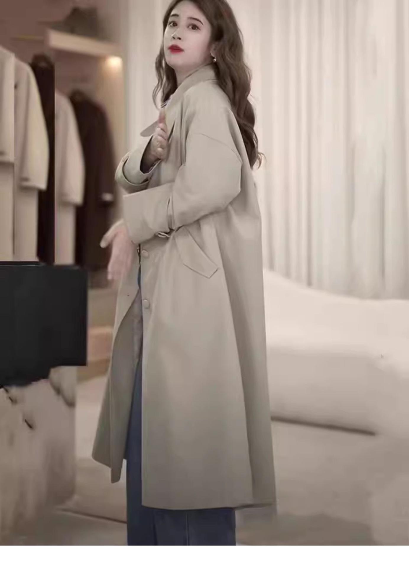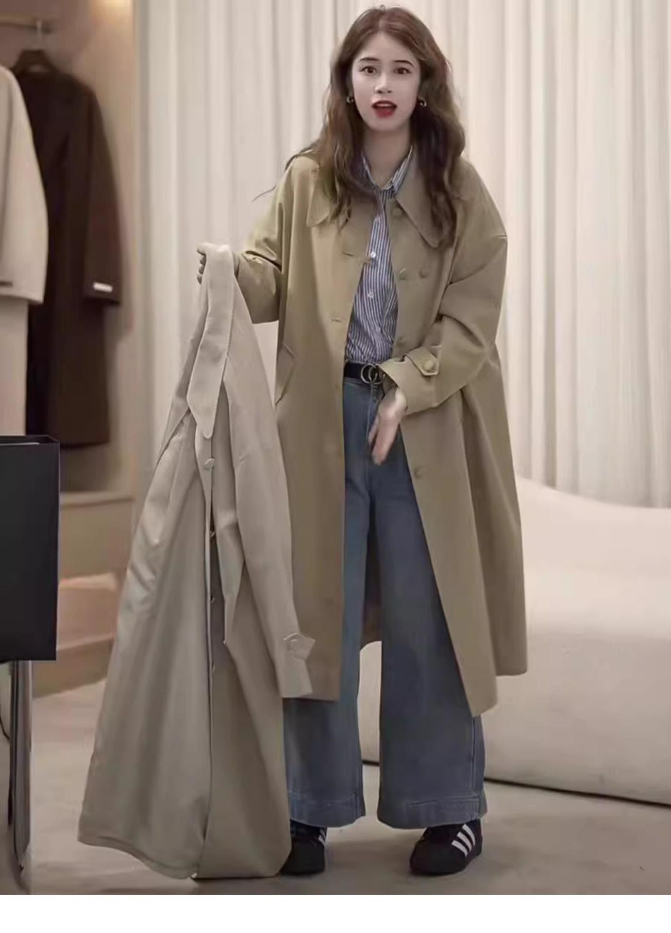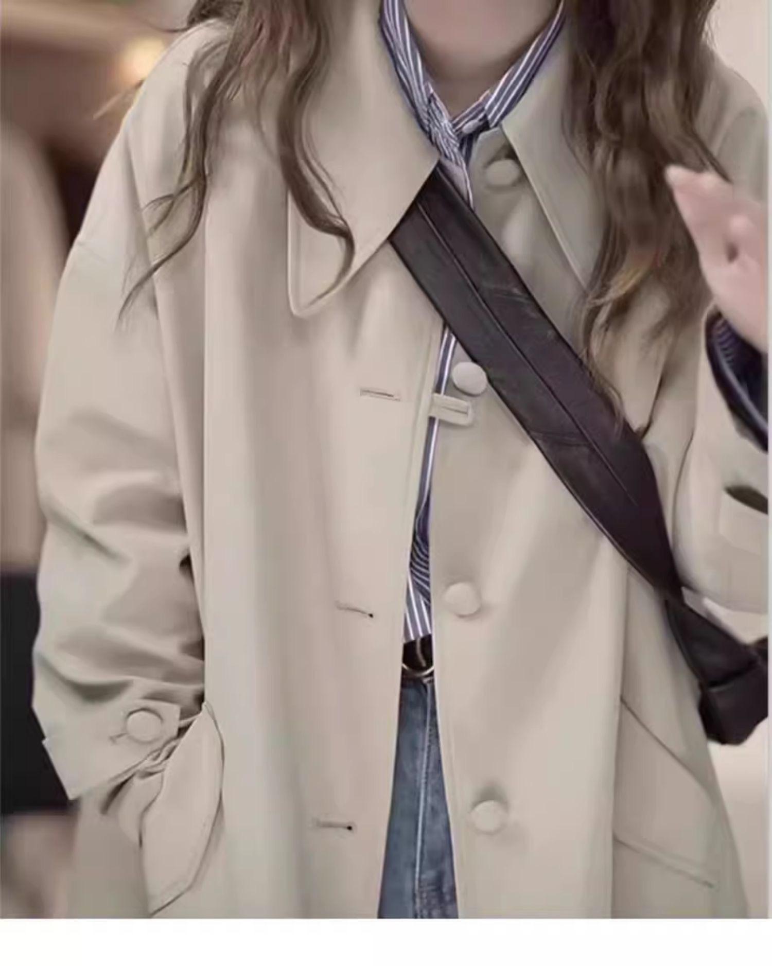 Abrigo Trench de Largo Medio para Mujer Otoño 2024, Chaqueta Nueva Holgada Casual Estilo Británico para Figuras Petite, Estilo para Ir al Trabajo