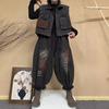 Verano 2024 Nuevo Estilo Chino Moda Chaleco Exterior Pintura a Tinta Pantalones Casuales de Pierna Ancha Pantalón de Tres Piezas 105