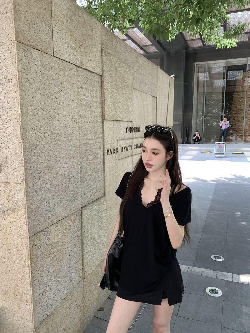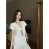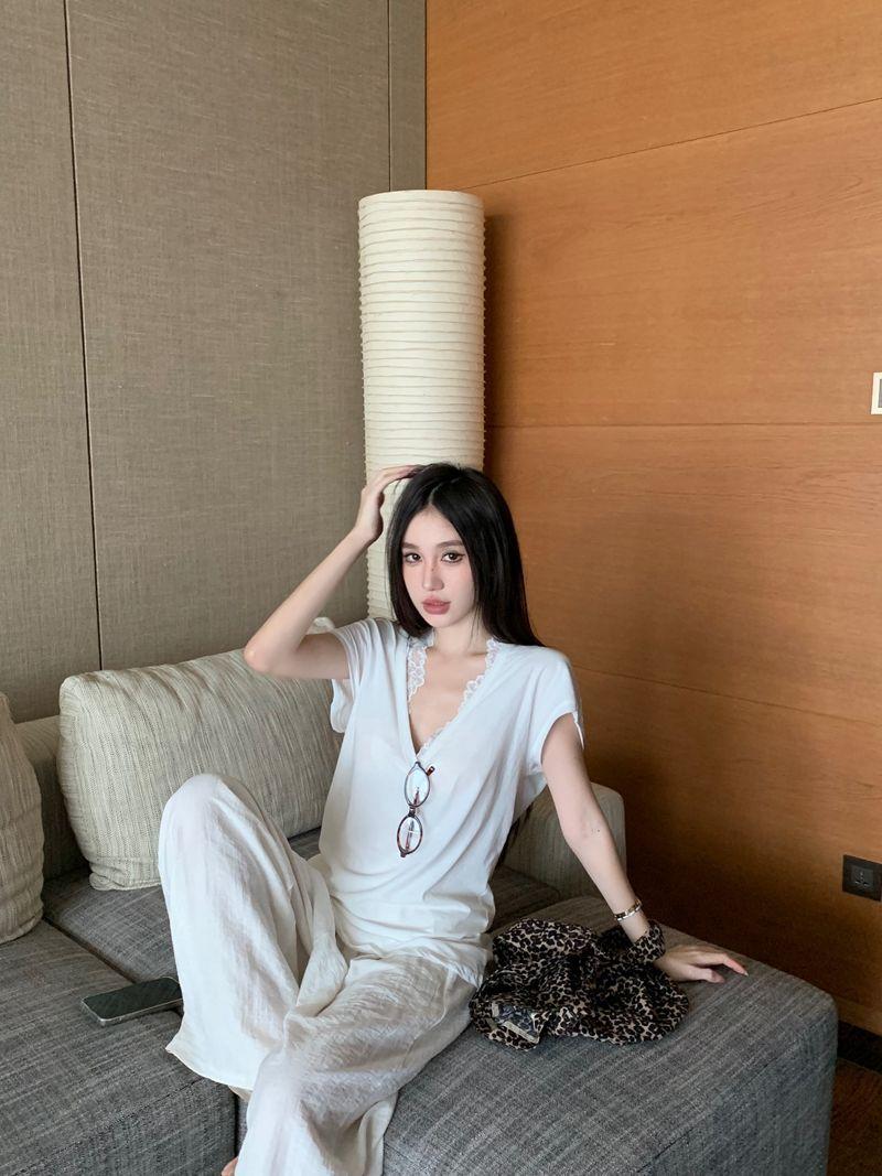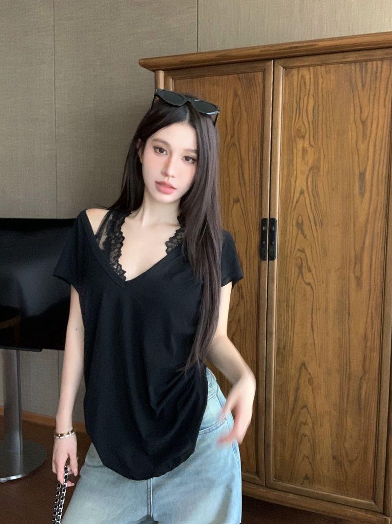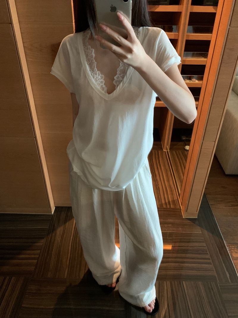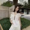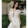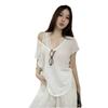 Traje de Chica Sexy Chaleco de Encaje Femenino 2025 Verano Nuevo Blanco Slim Manga Corta Camiseta Top Conjunto de Dos Piezas