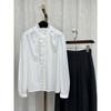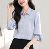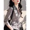 Camisa Francesa Simple Drapeada de Satén de Manga Larga para Mujer 2025 Nueva Primavera Versátil y Chic Top Elegante que Reduce la Edad