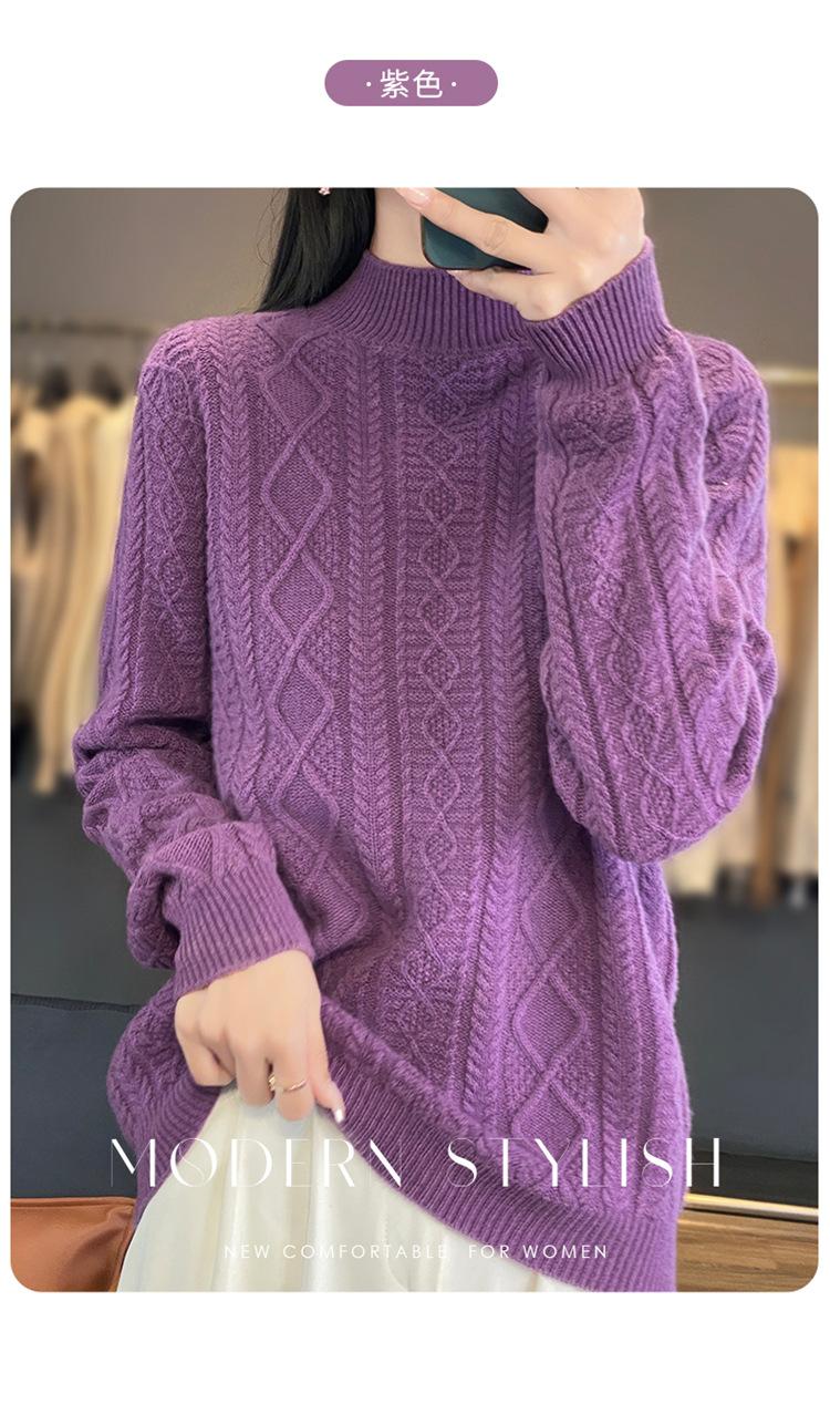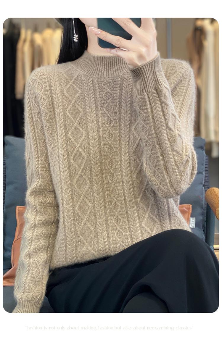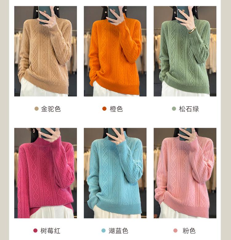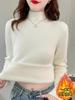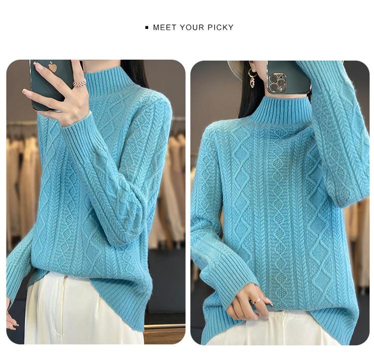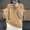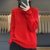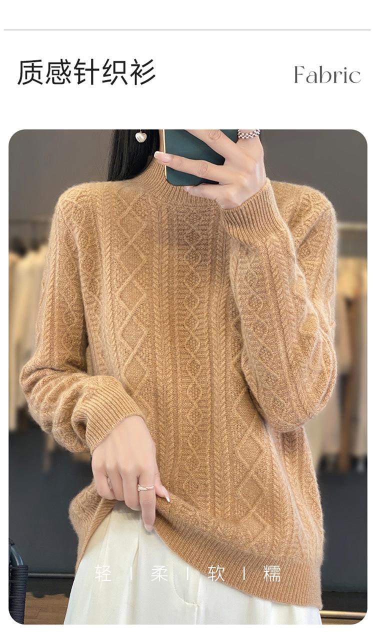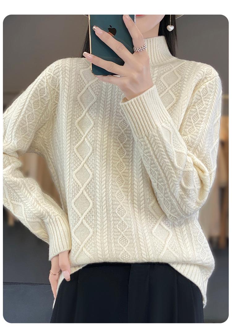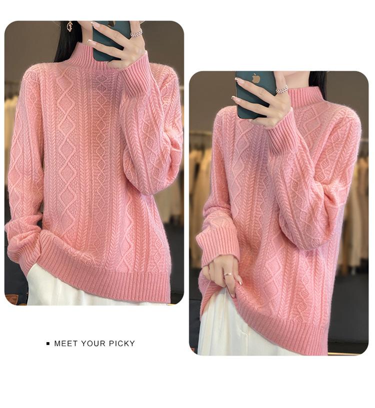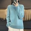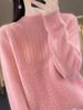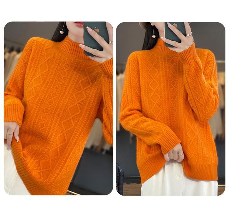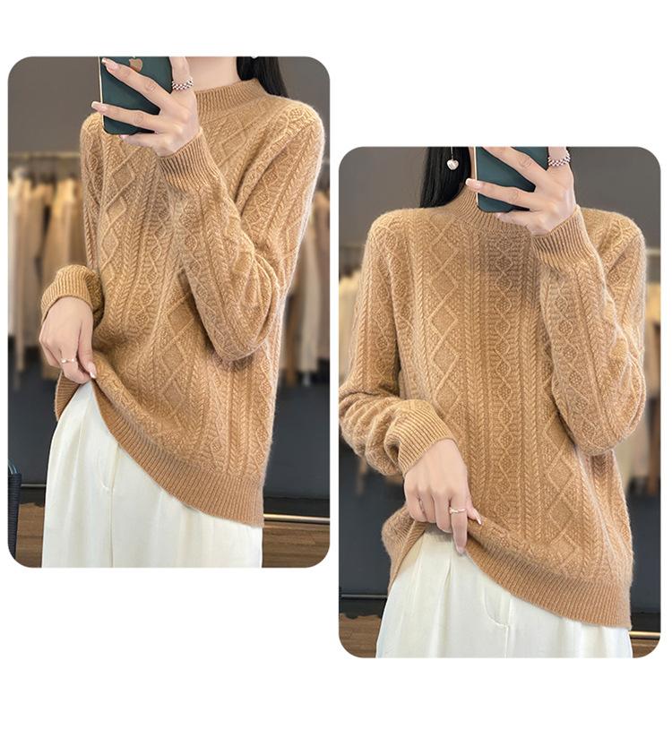 Suéter de punto de cuello alto medio para mujer, jersey de jacquard holgado, camisa básica, suéter grueso de color sólido, otoño e invierno de 2024