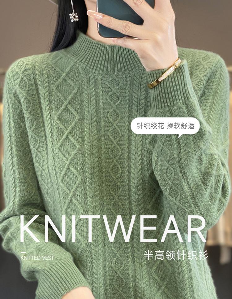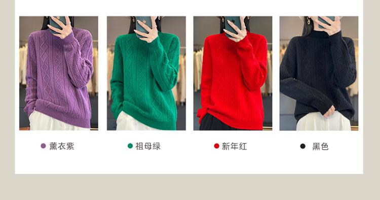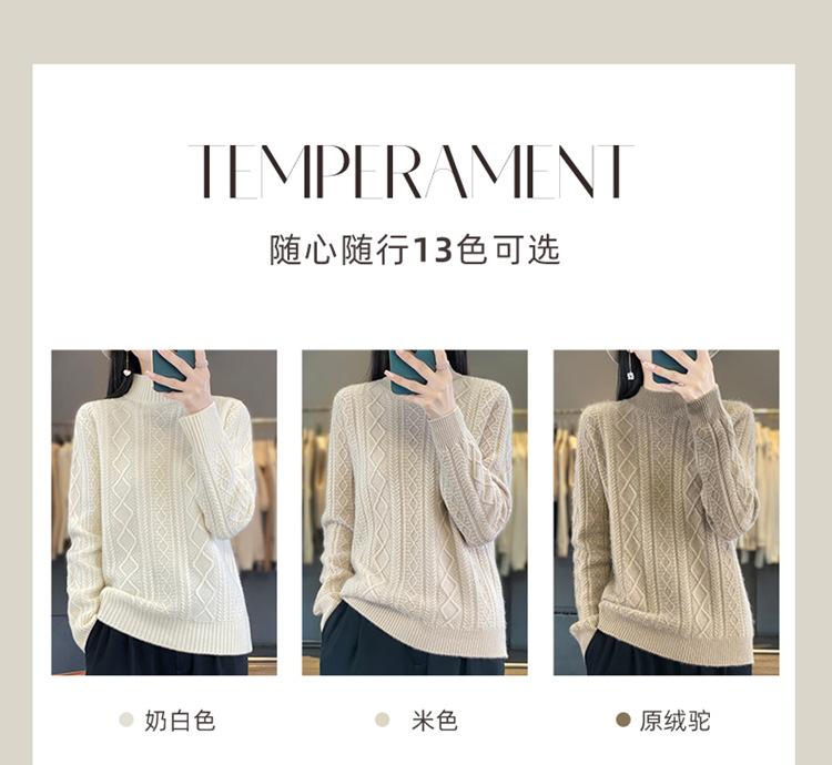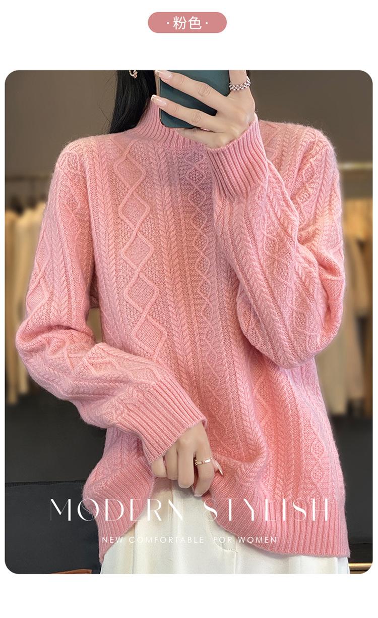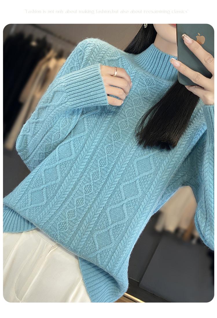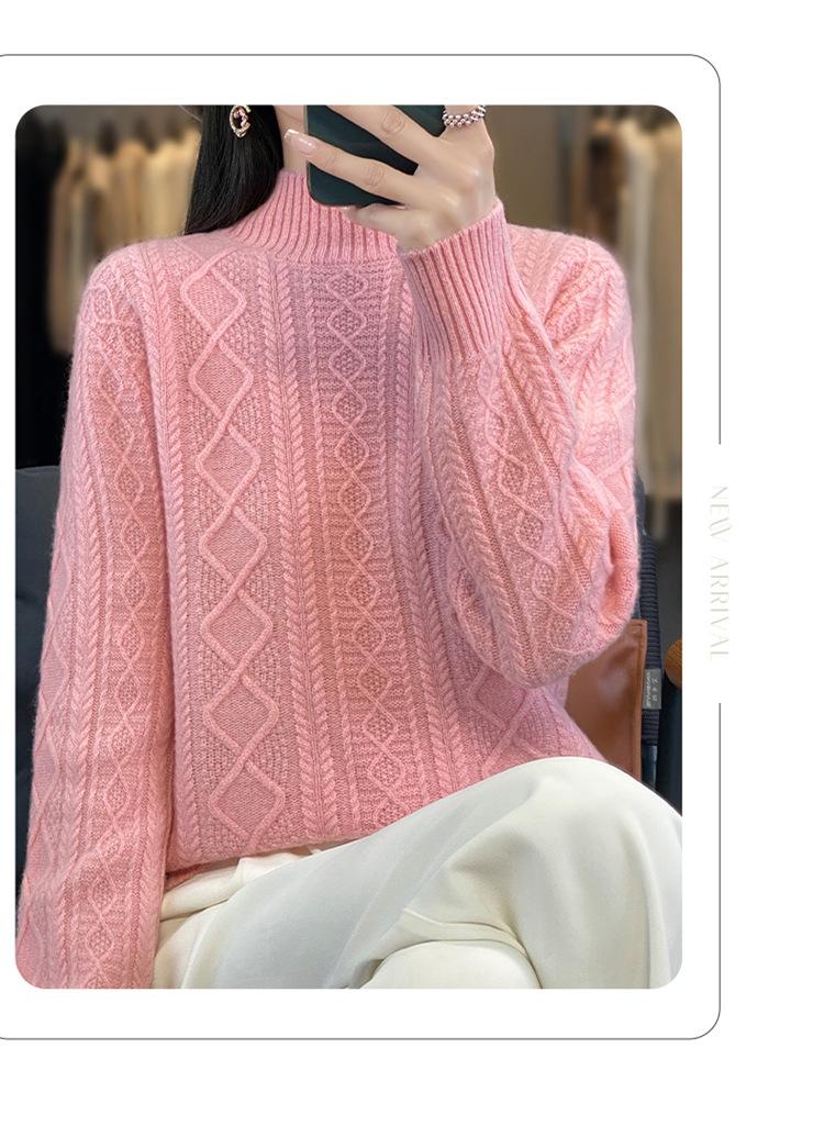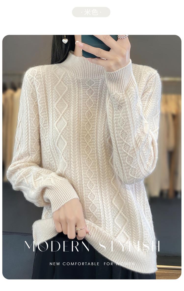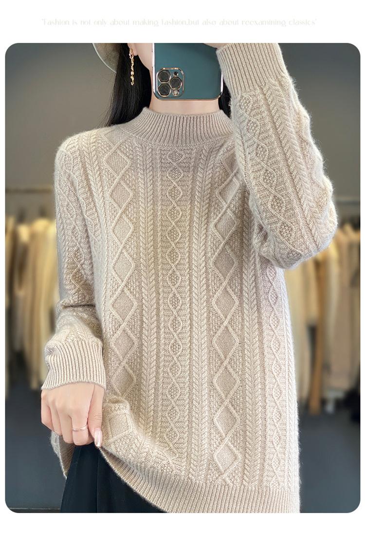 Suéter de punto de cuello alto medio para mujer, jersey de jacquard holgado, camisa básica, suéter grueso de color sólido, otoño e invierno de 2024