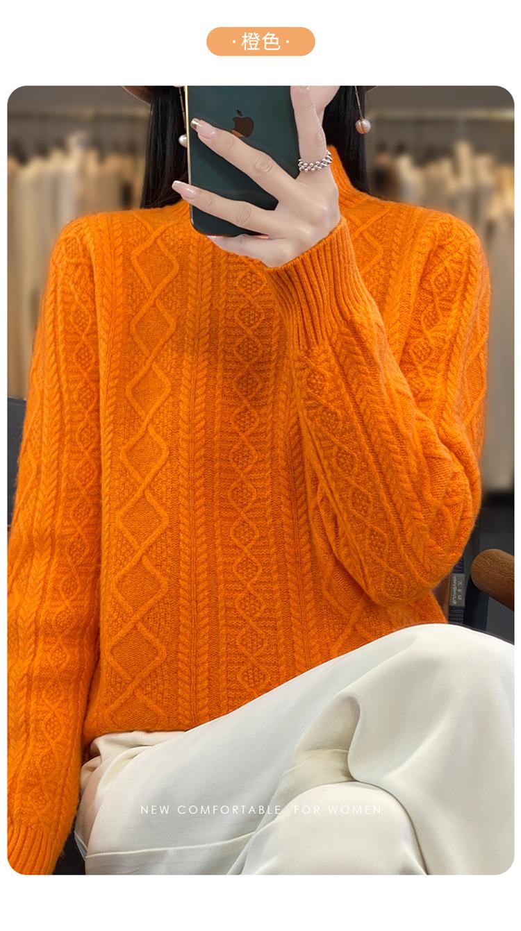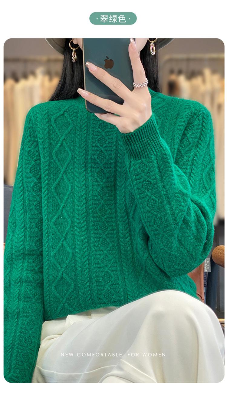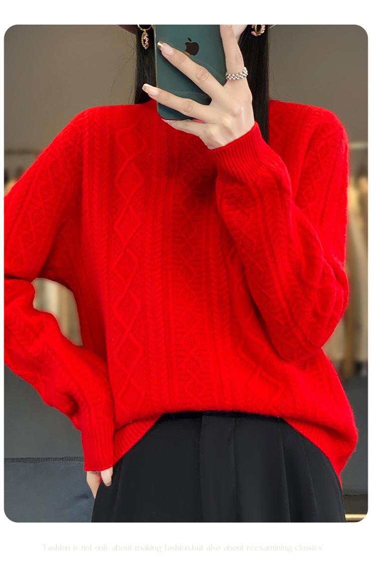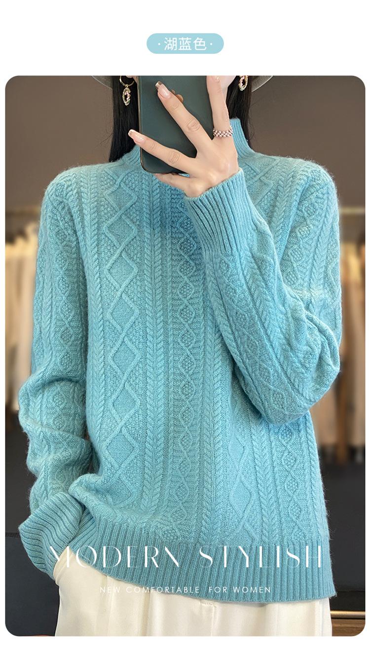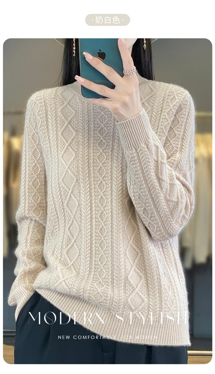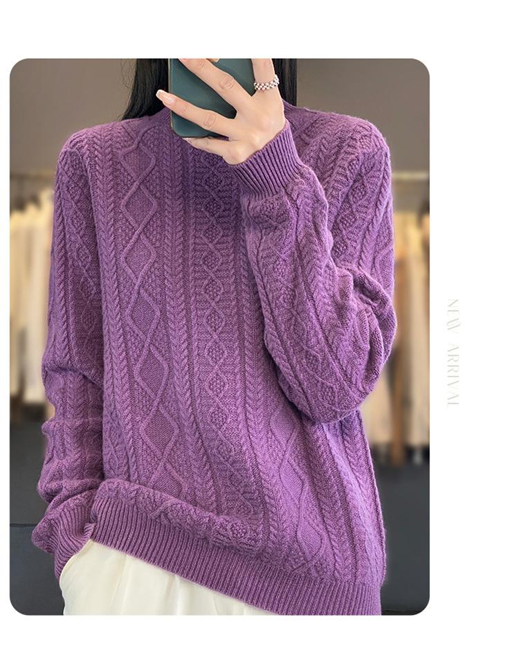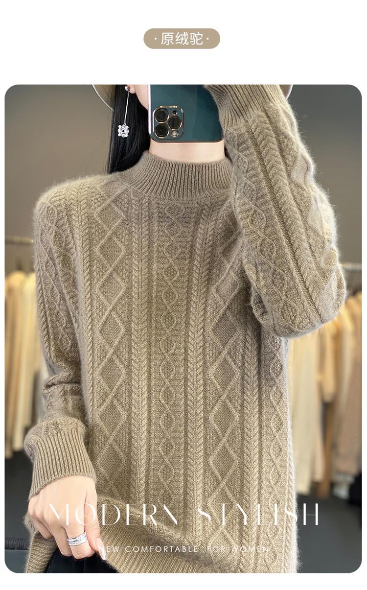 Suéter de punto de cuello alto medio para mujer, jersey de jacquard holgado, camisa básica, suéter grueso de color sólido, otoño e invierno de 2024