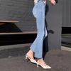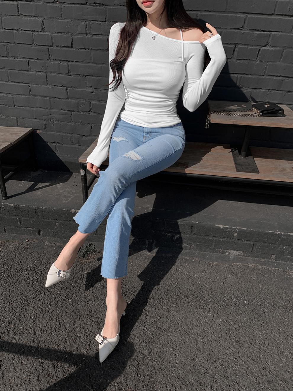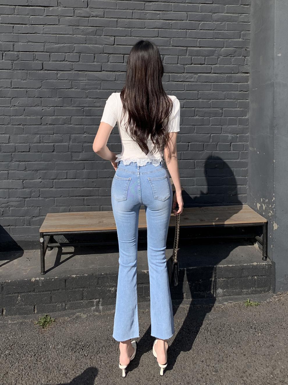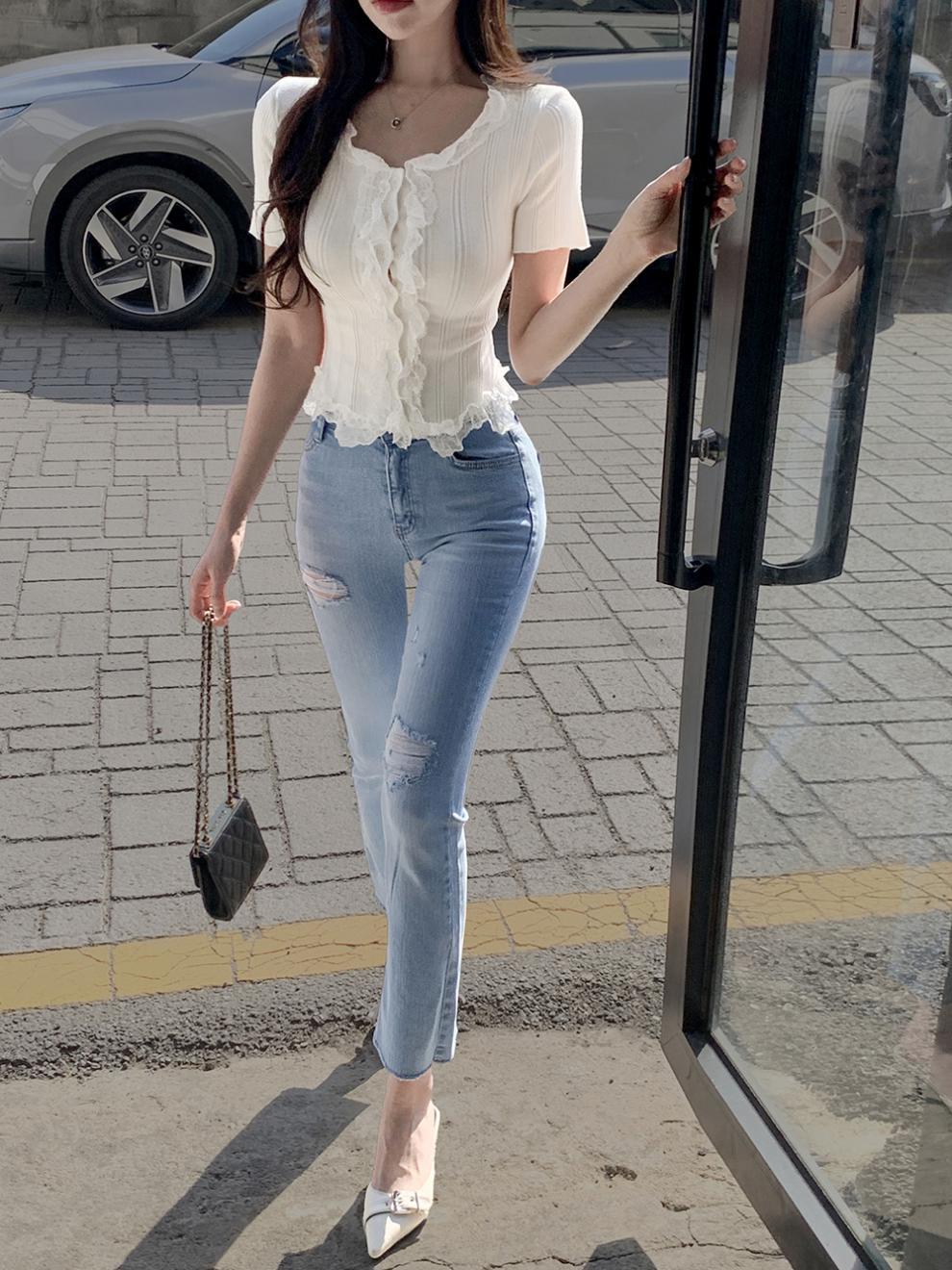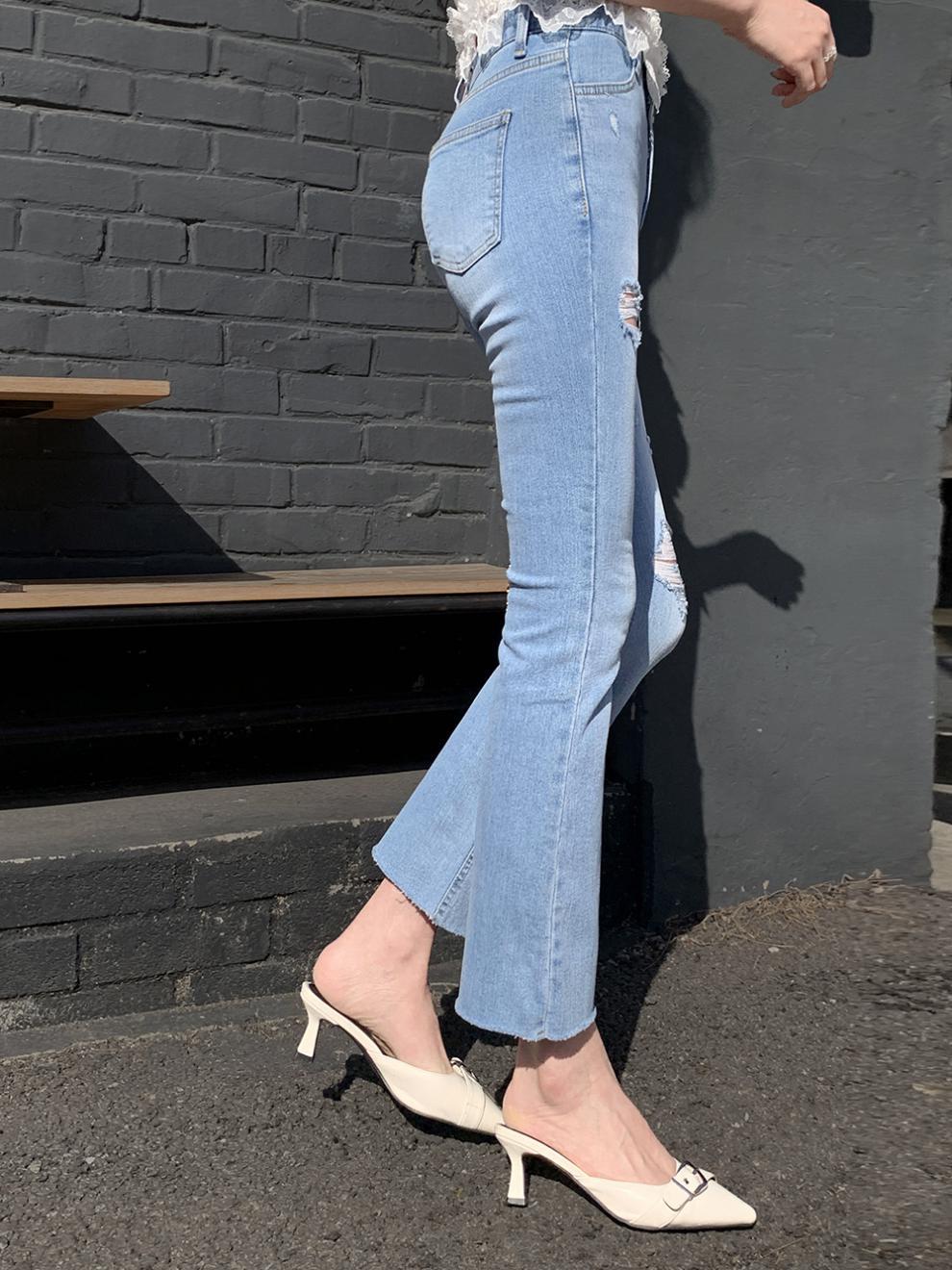 Jeans de Nueve Puntos de Otoño de Alta Calidad para Mujer Dongdaemun, Nuevos, Rotos, Ajustados