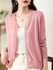Cárdigan de Punto Liso de Color Puro con Cuello en V, Prenda Exterior Delgada de Manga Larga con Aspecto Adelgazante, Otoño e Invierno para Mujer, Cárdigan Suéter Básico Abotonado