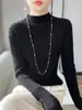 Suéter de Cuello Alto para Mujer para Usar debajo de un Abrigo, Nuevo Otoño e Invierno Trendy Versátil Suave Ajustado Tejido Camiseta Base, Casual y Versátil