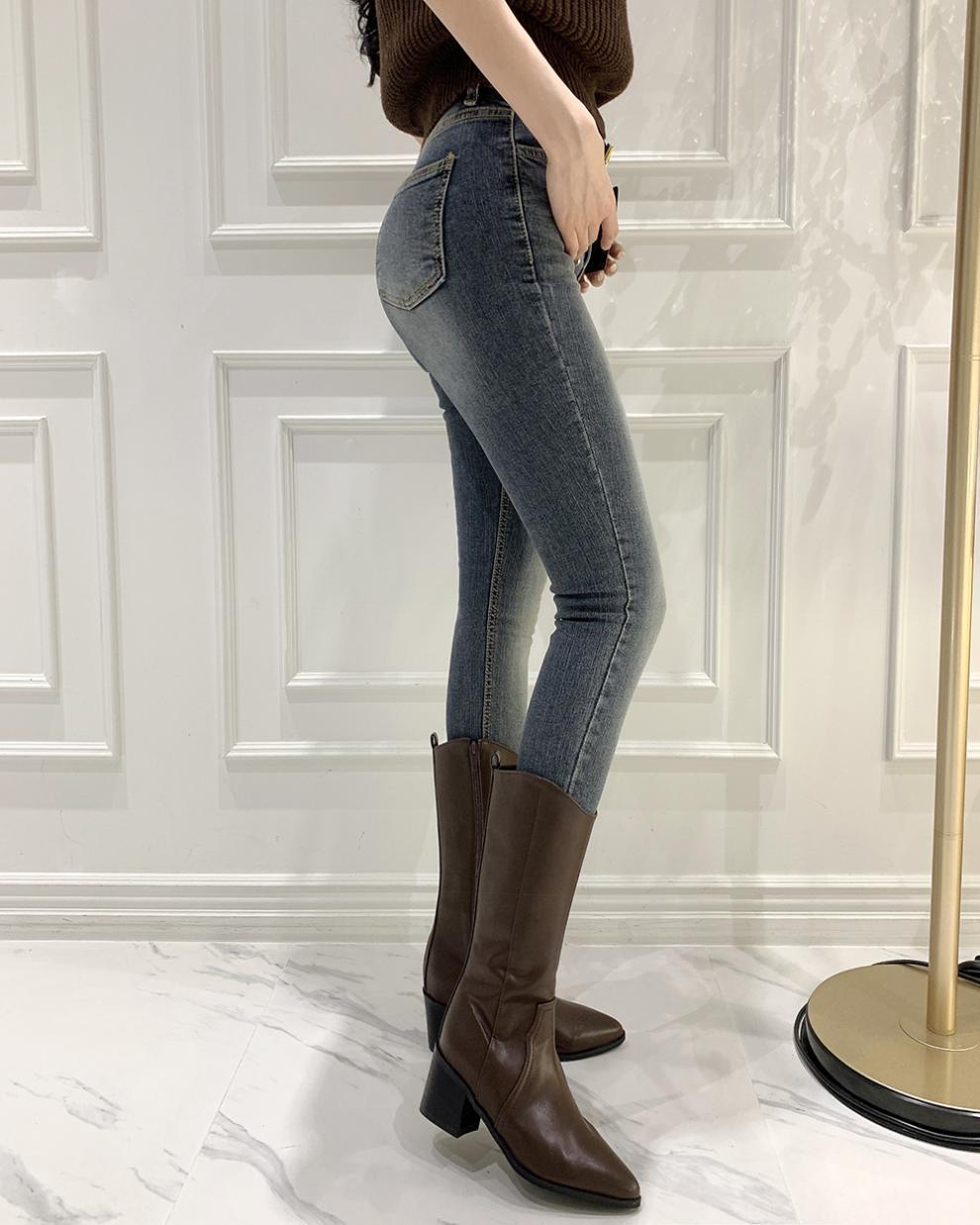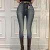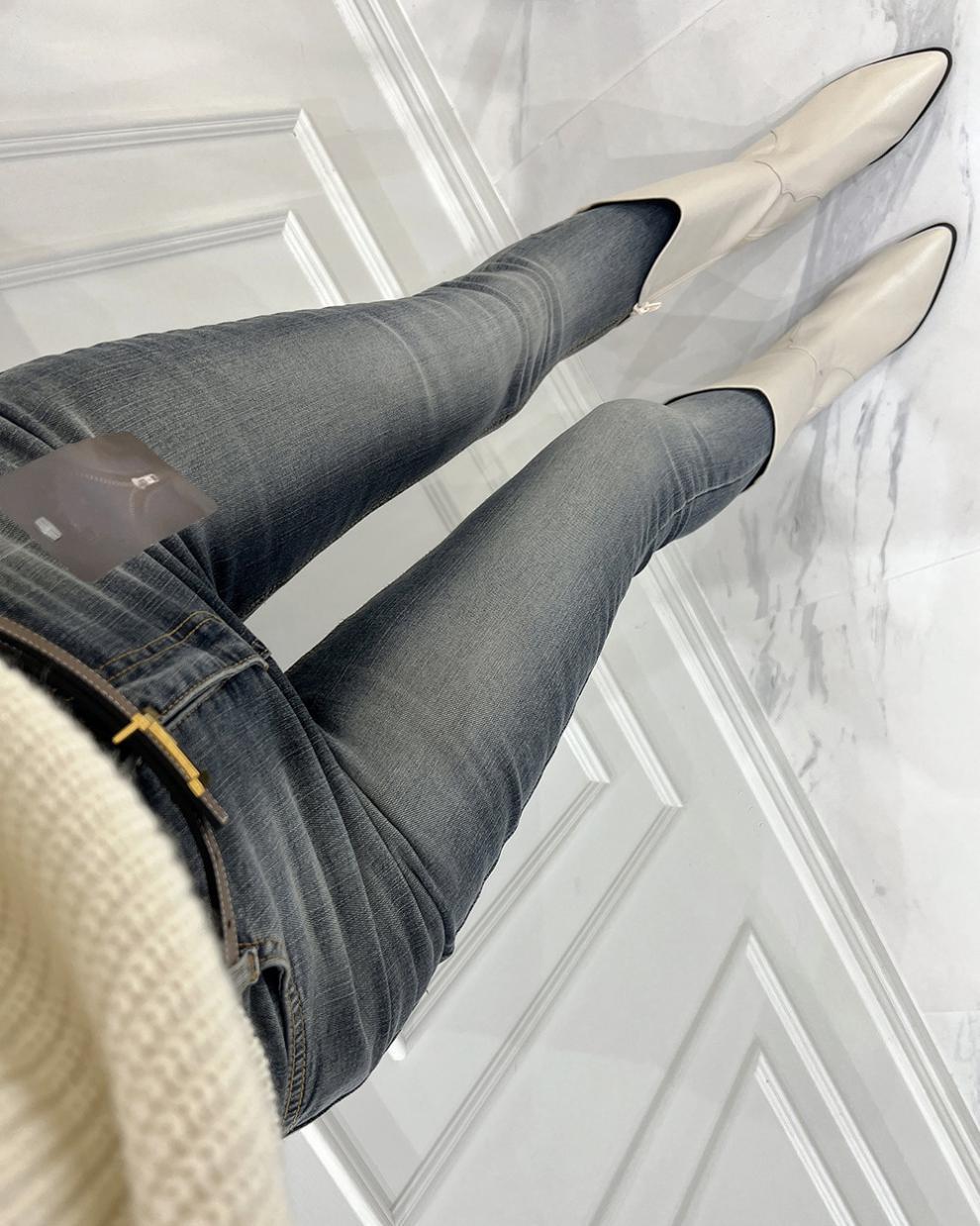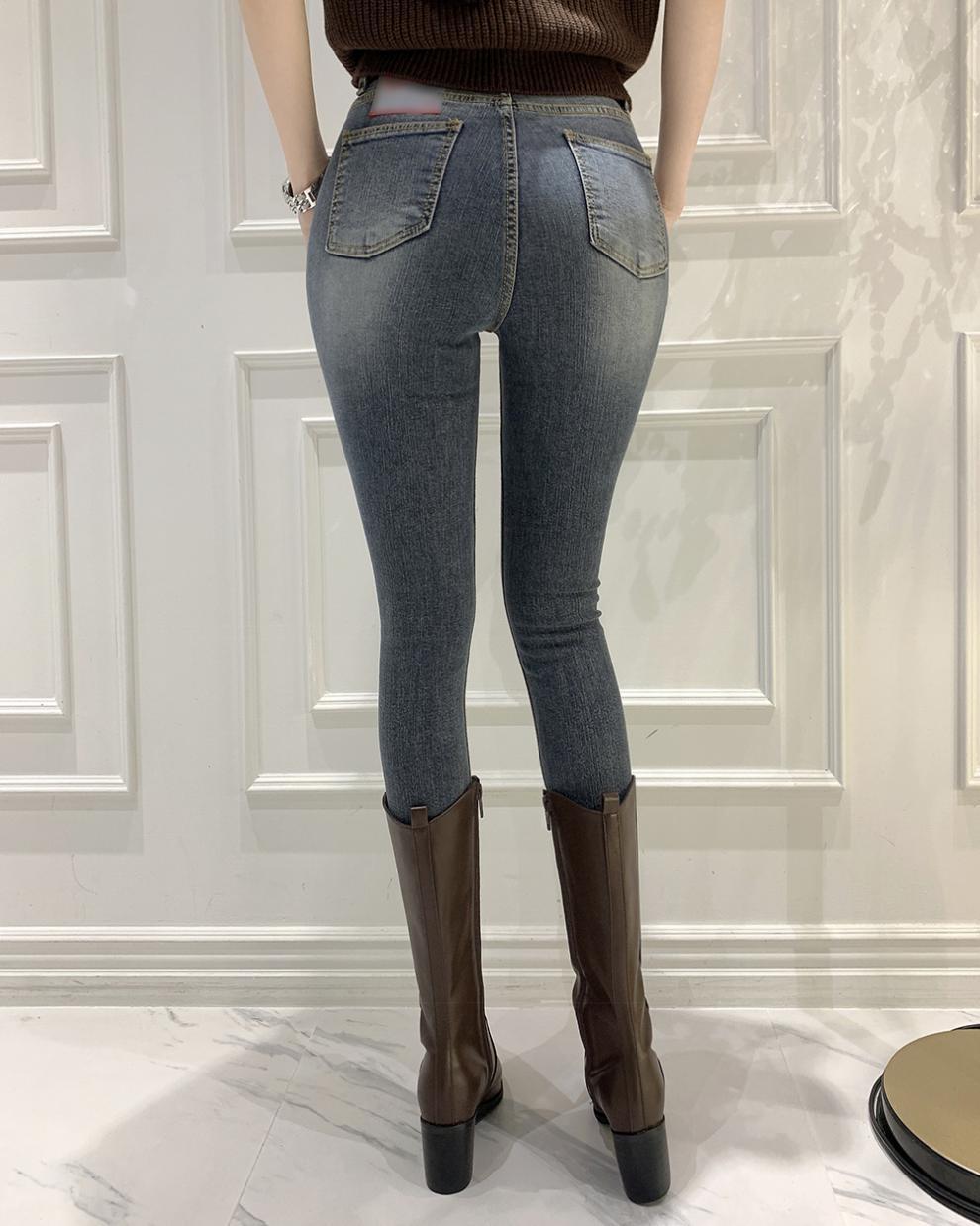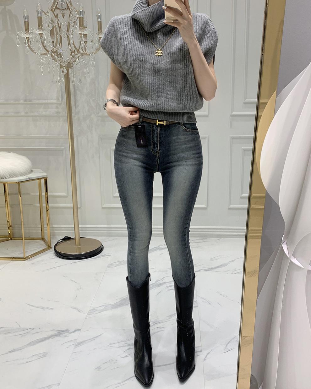 Ropa de mujer de Corea del Sur Dongdaemun nuevo retro gris azul adelgazante elástico cintura alta jeans ajustados