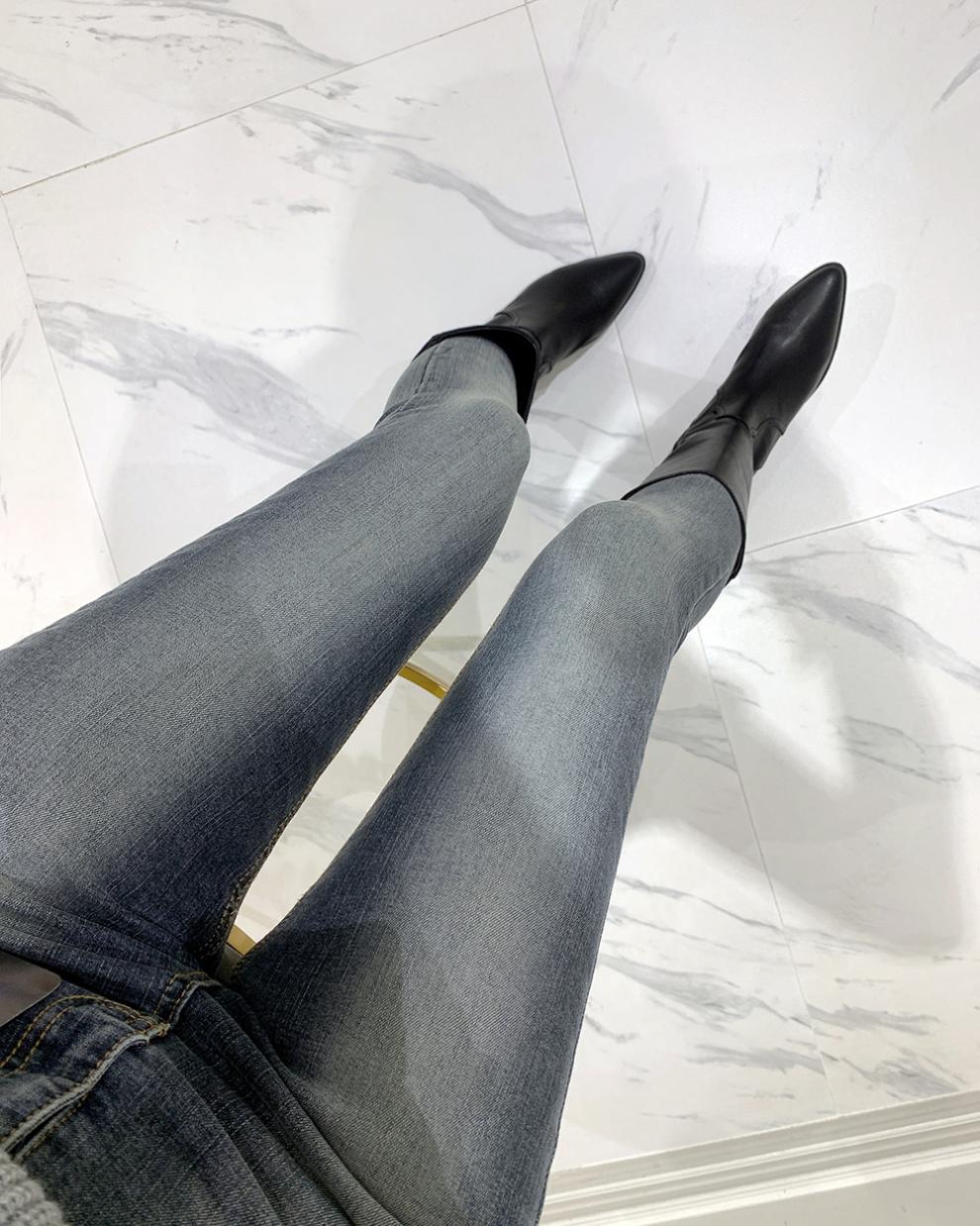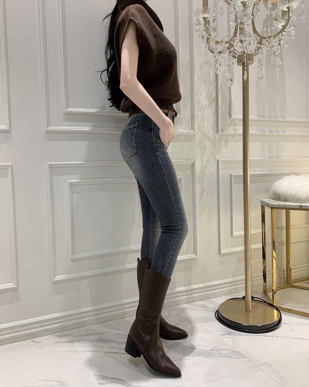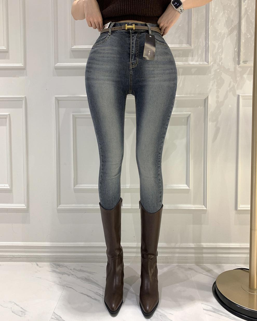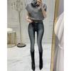 Ropa de mujer de Corea del Sur Dongdaemun nuevo retro gris azul adelgazante elástico cintura alta jeans ajustados