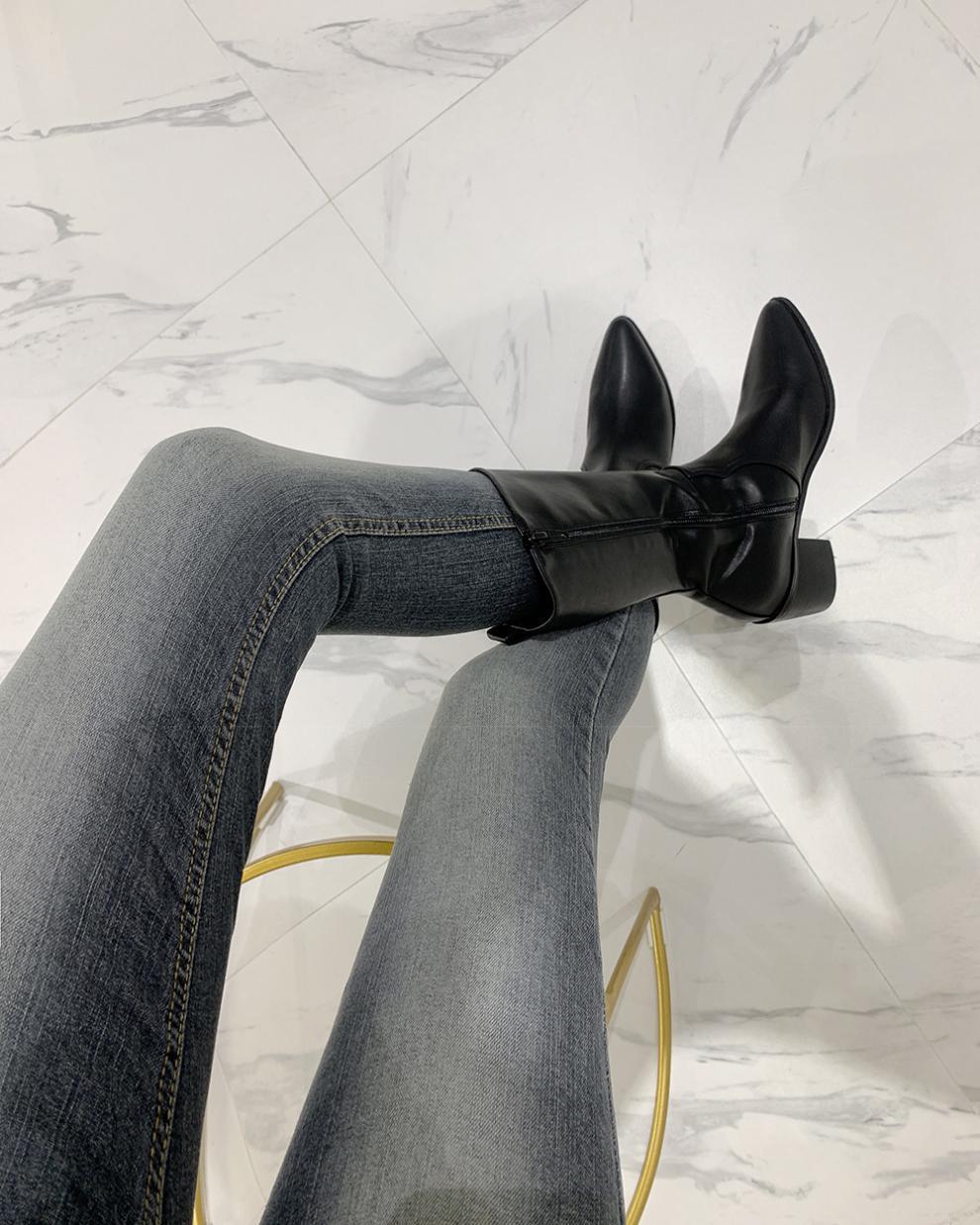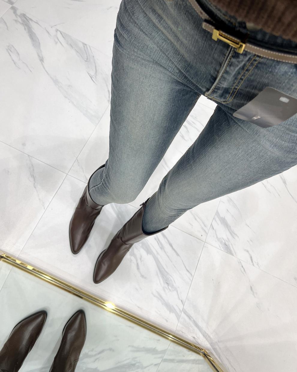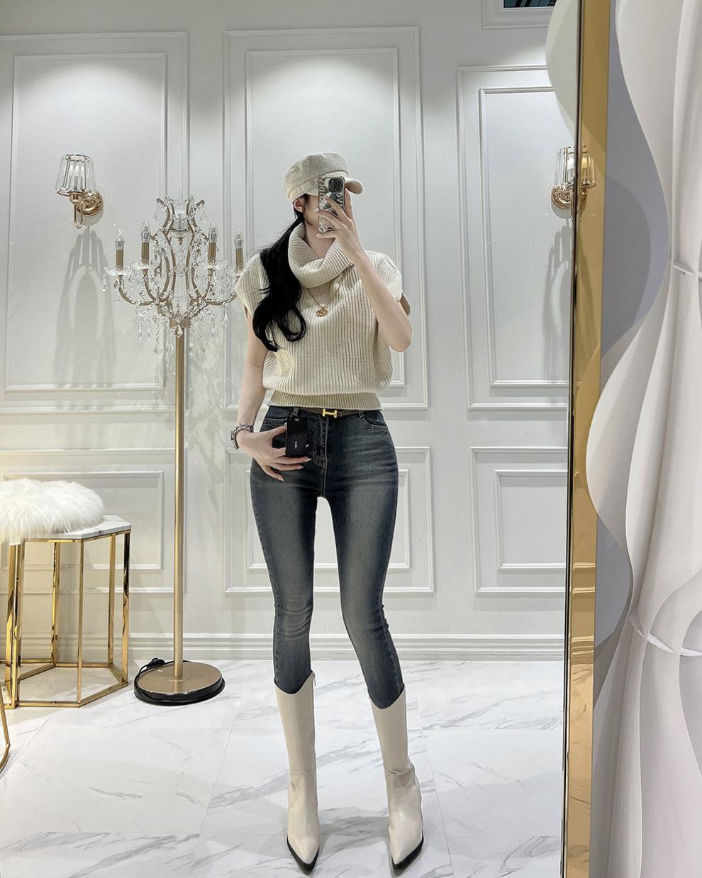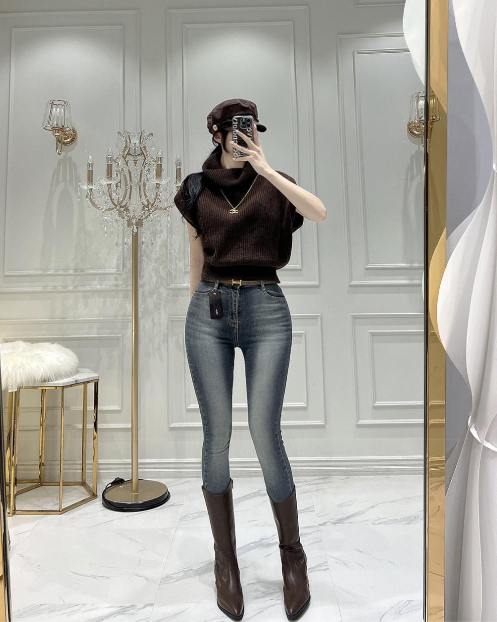 Ropa de mujer de Corea del Sur Dongdaemun nuevo retro gris azul adelgazante elástico cintura alta jeans ajustados