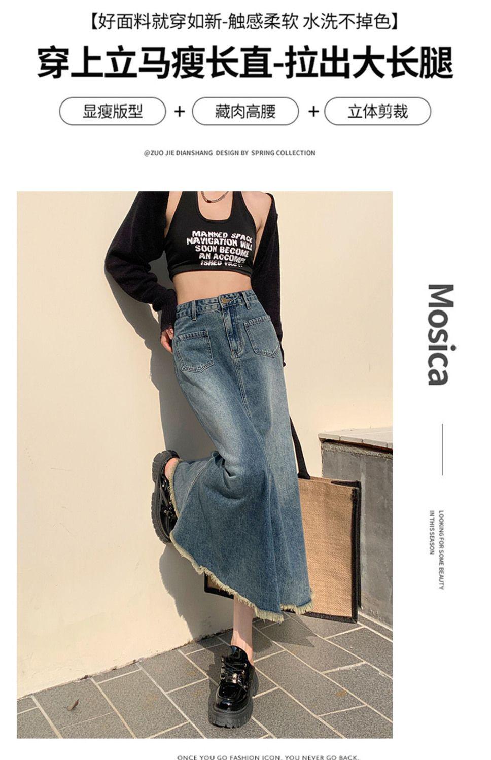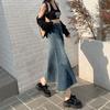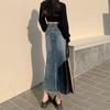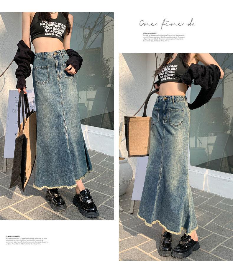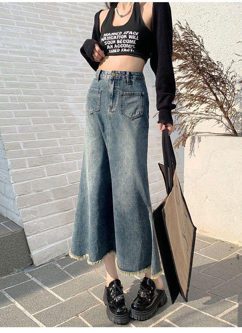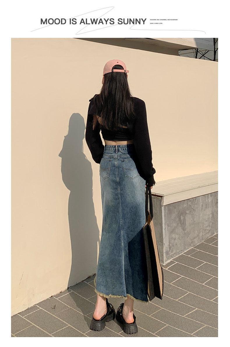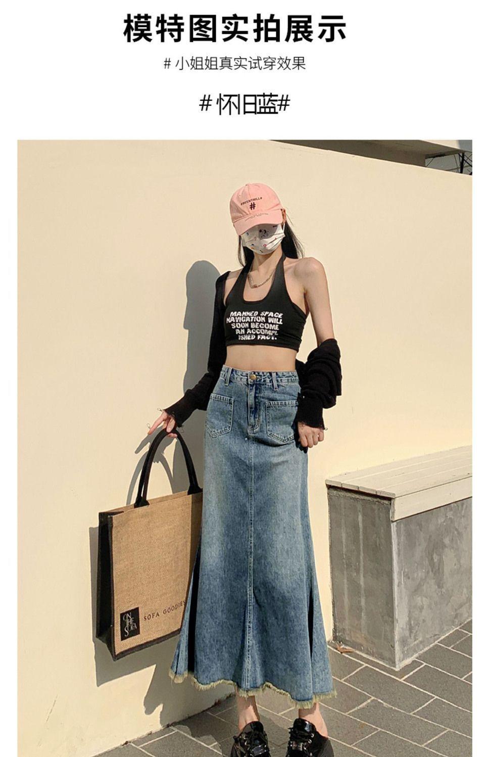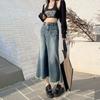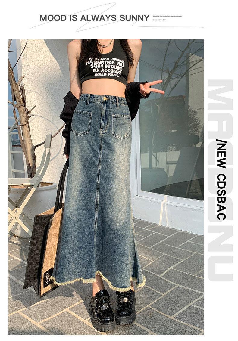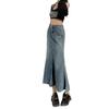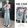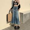 Falda Midi de Alta Calidad de Alta Calidad para Todo Combinable para 2024 Pequeña Cintura Alta Denim Media Longitud para Mujer Azul Retro