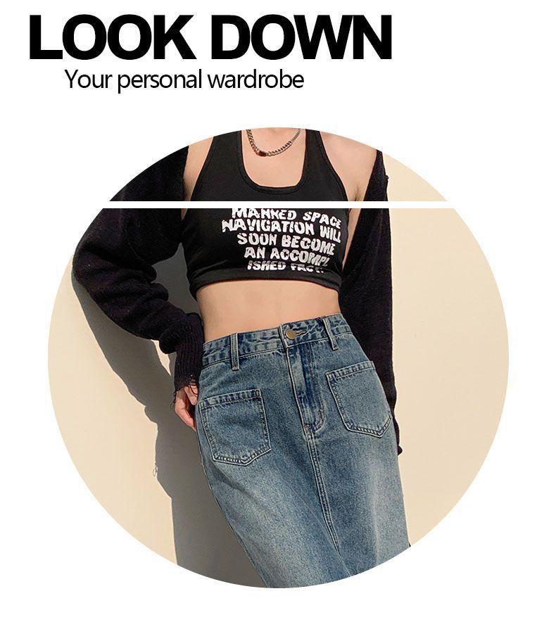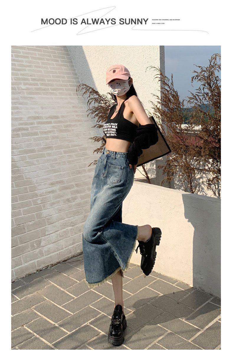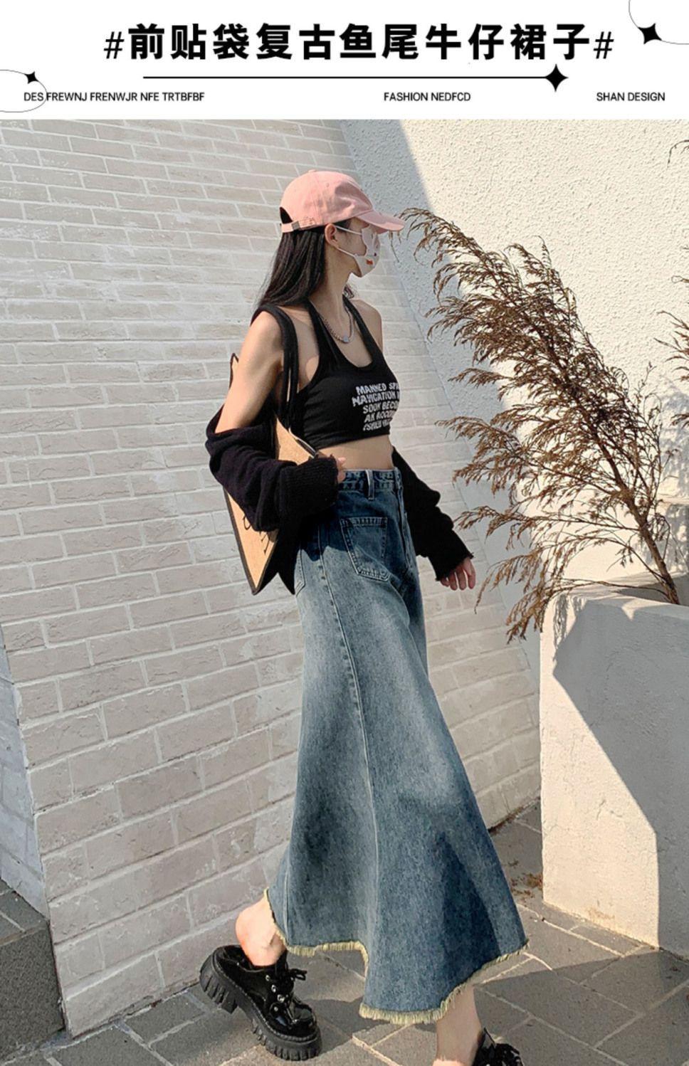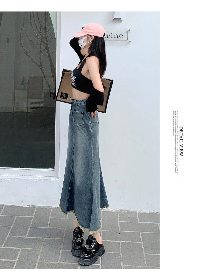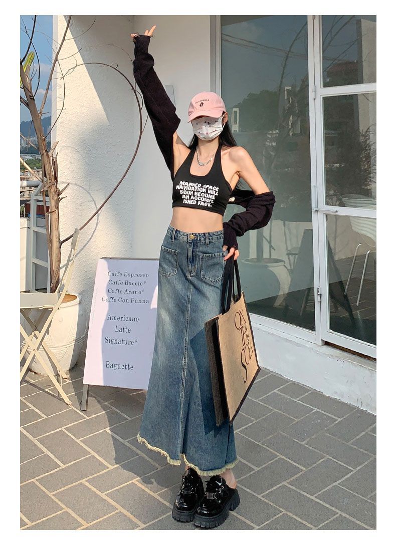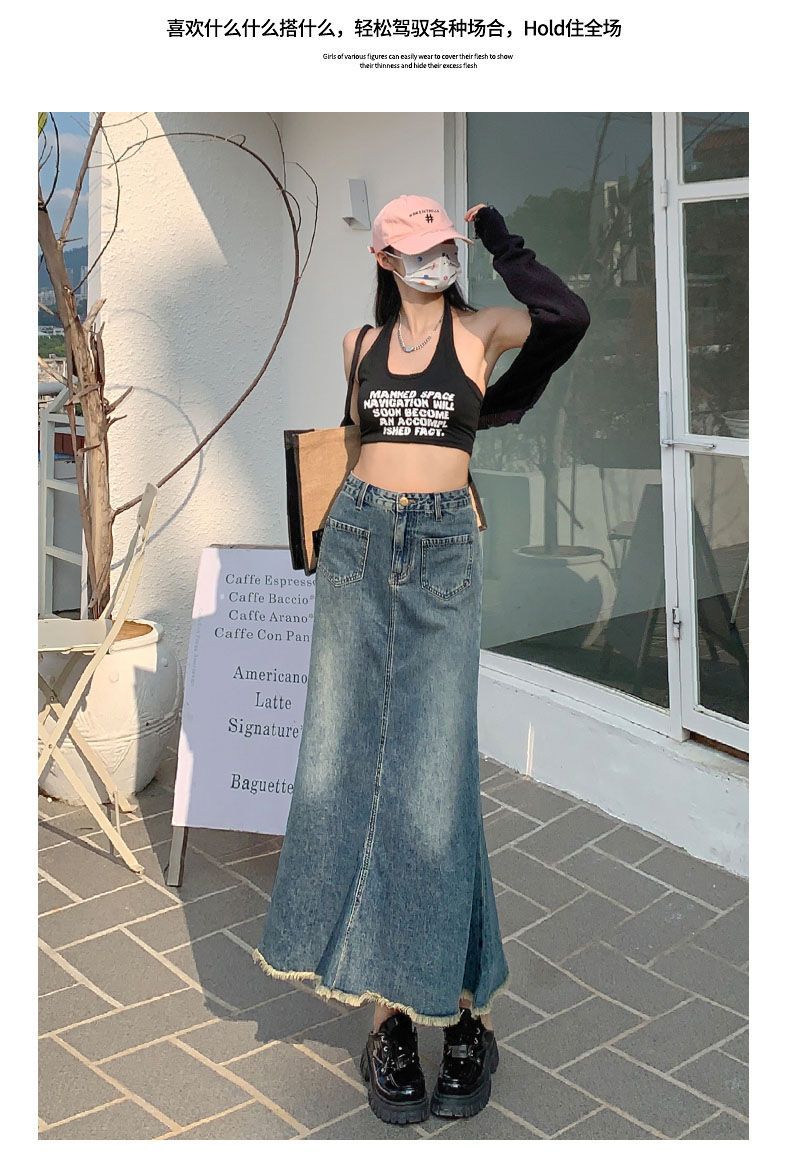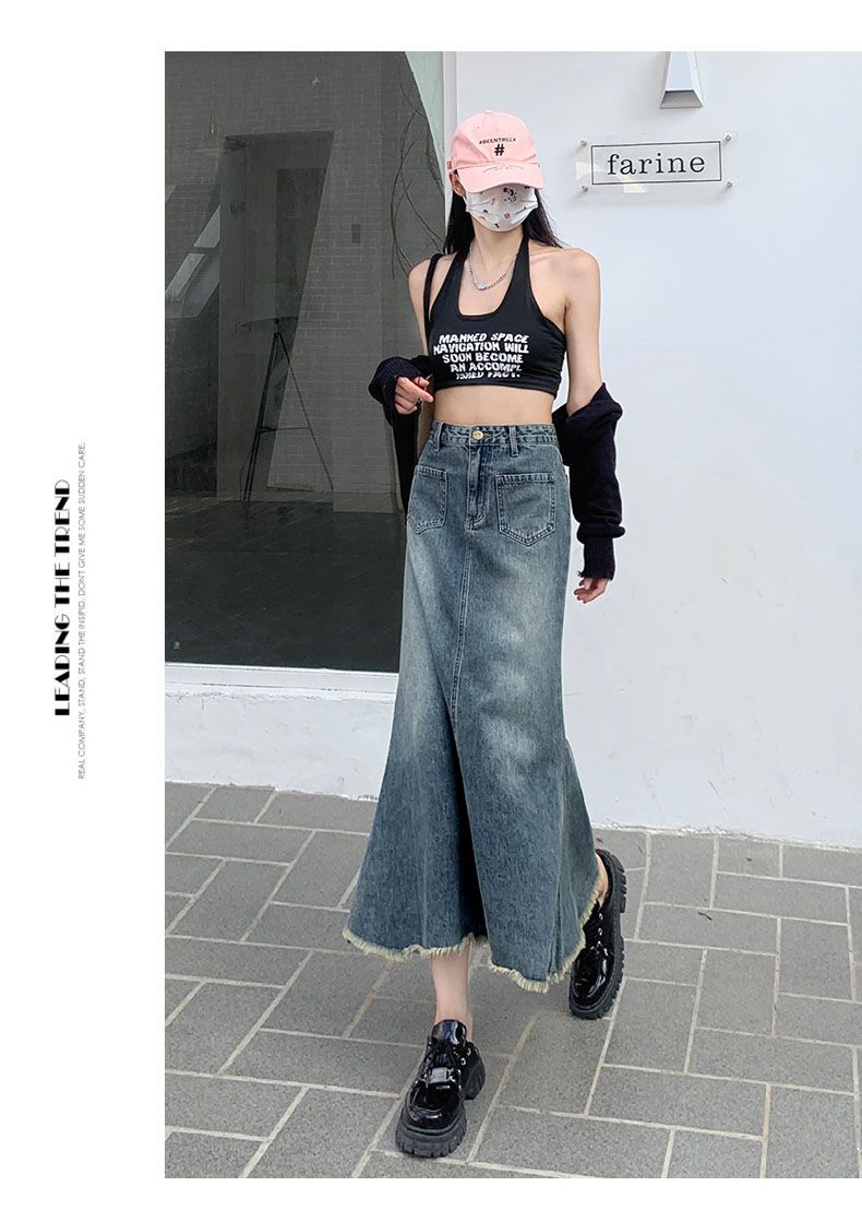 Falda Midi de Alta Calidad de Alta Calidad para Todo Combinable para 2024 Pequeña Cintura Alta Denim Media Longitud para Mujer Azul Retro