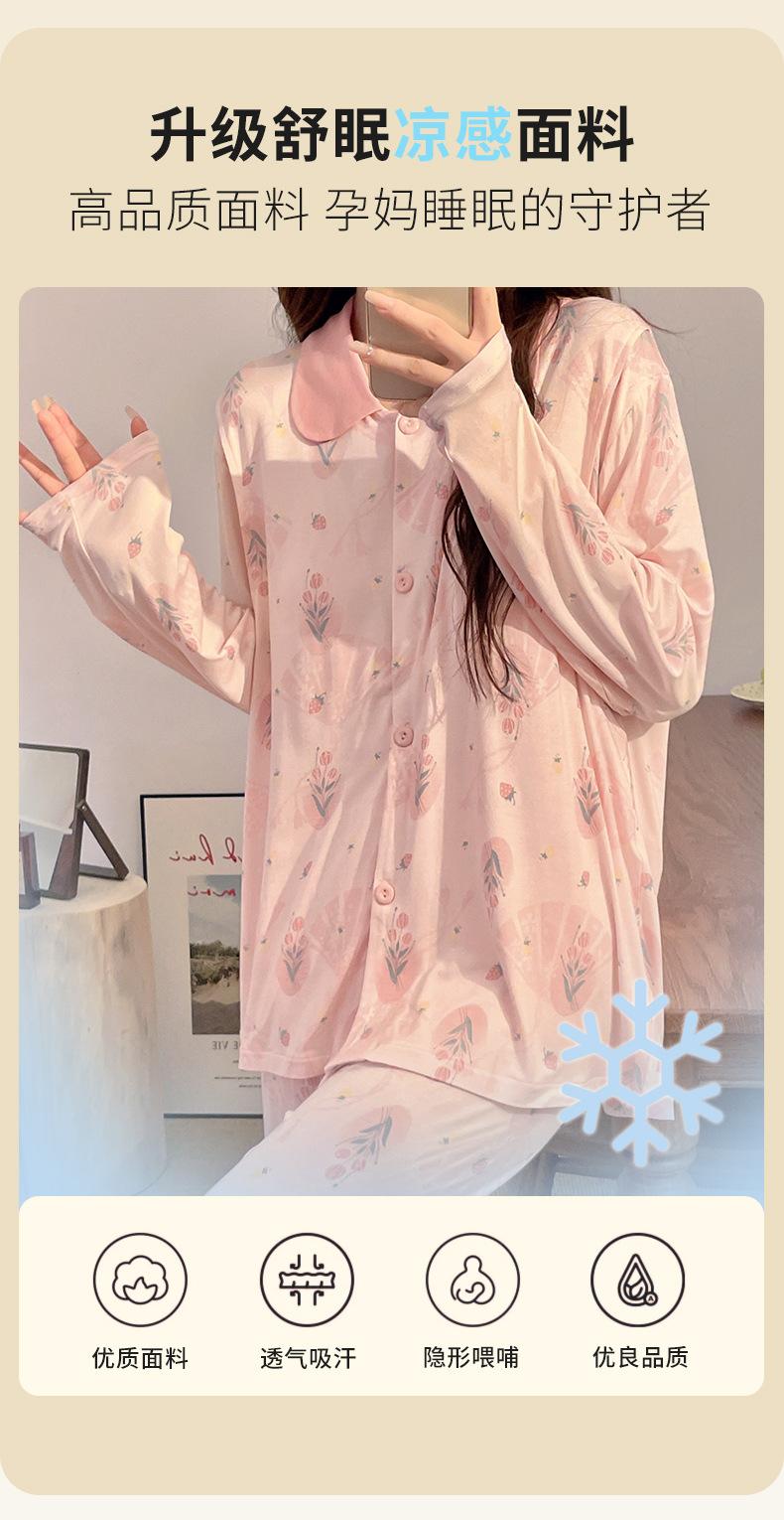 Tiktok Tienda en Línea Nuevo de Primavera y Otoño en Stock Amazon Maternidad Lactancia Set de Dos Piezas de Manga Larga con Almohadillas en el Pecho