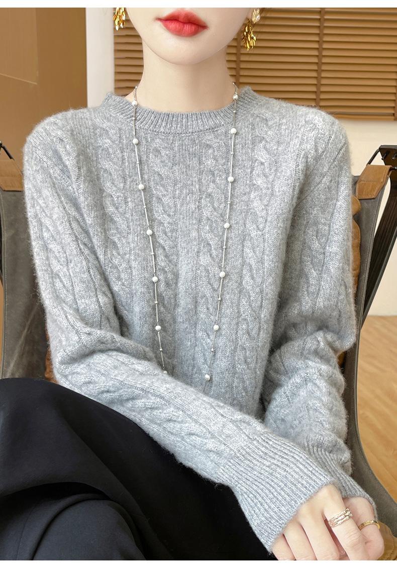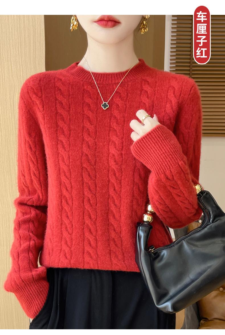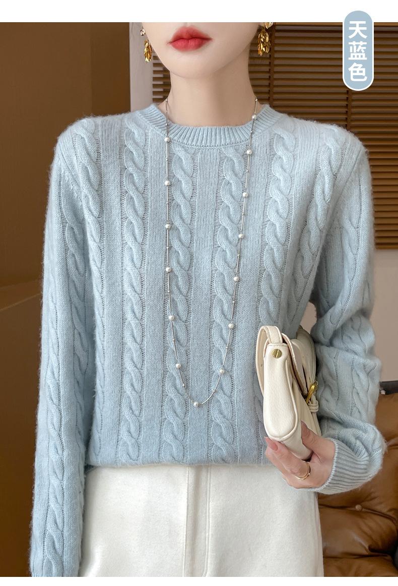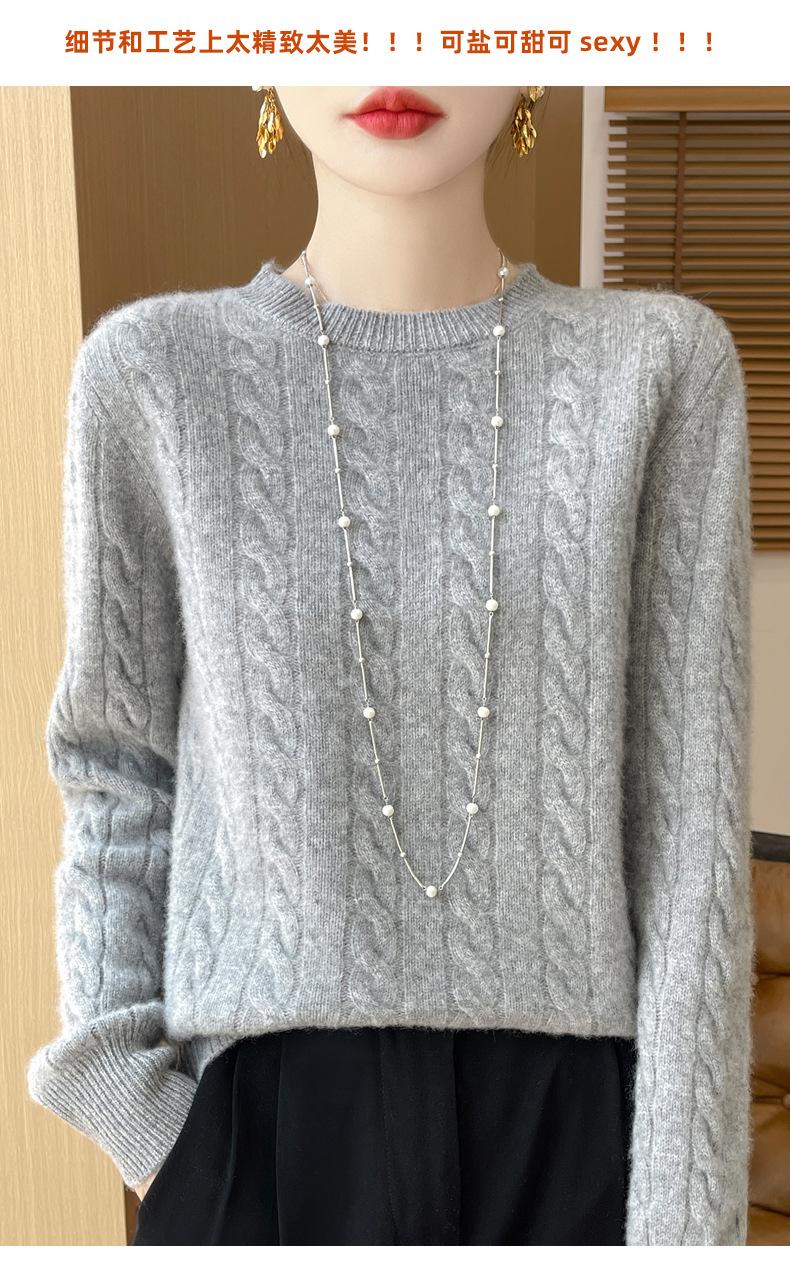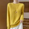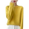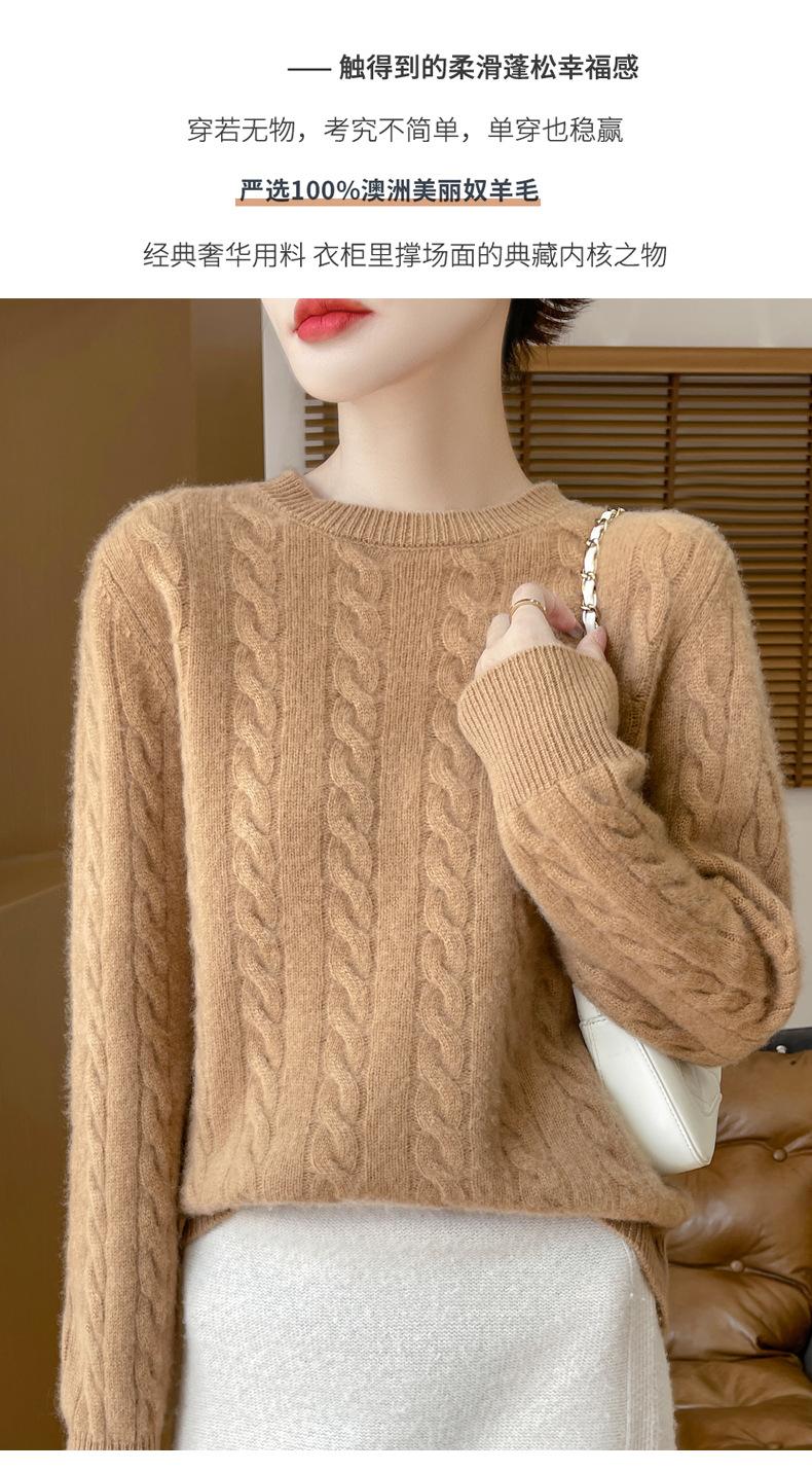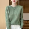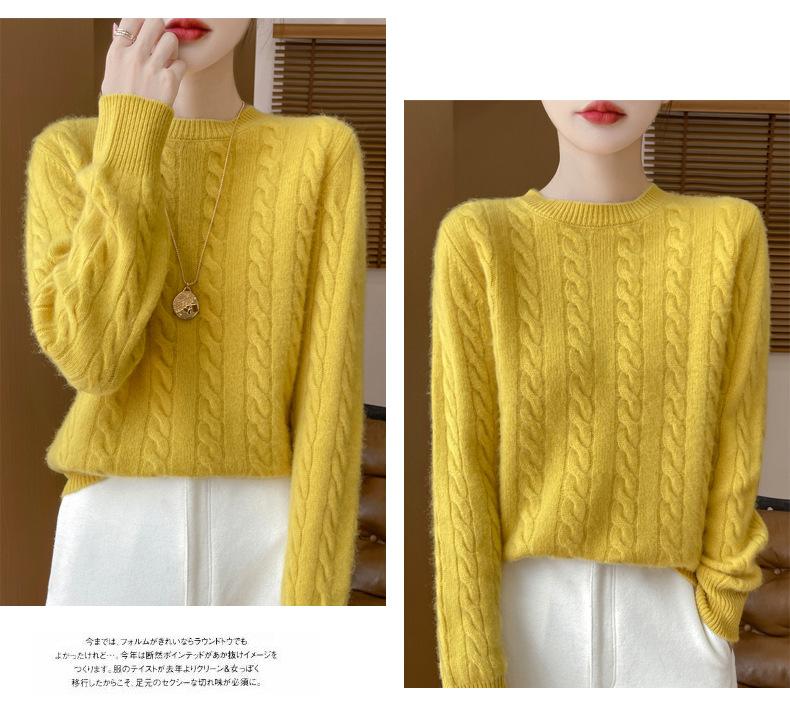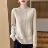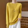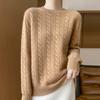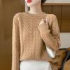 Camisa de punto con cuello redondo trenzado de lana pura para mujer, jersey de manga larga, color sólido, gruesa, para uso diario, otoño e invierno, nueva