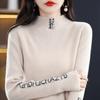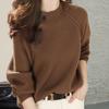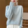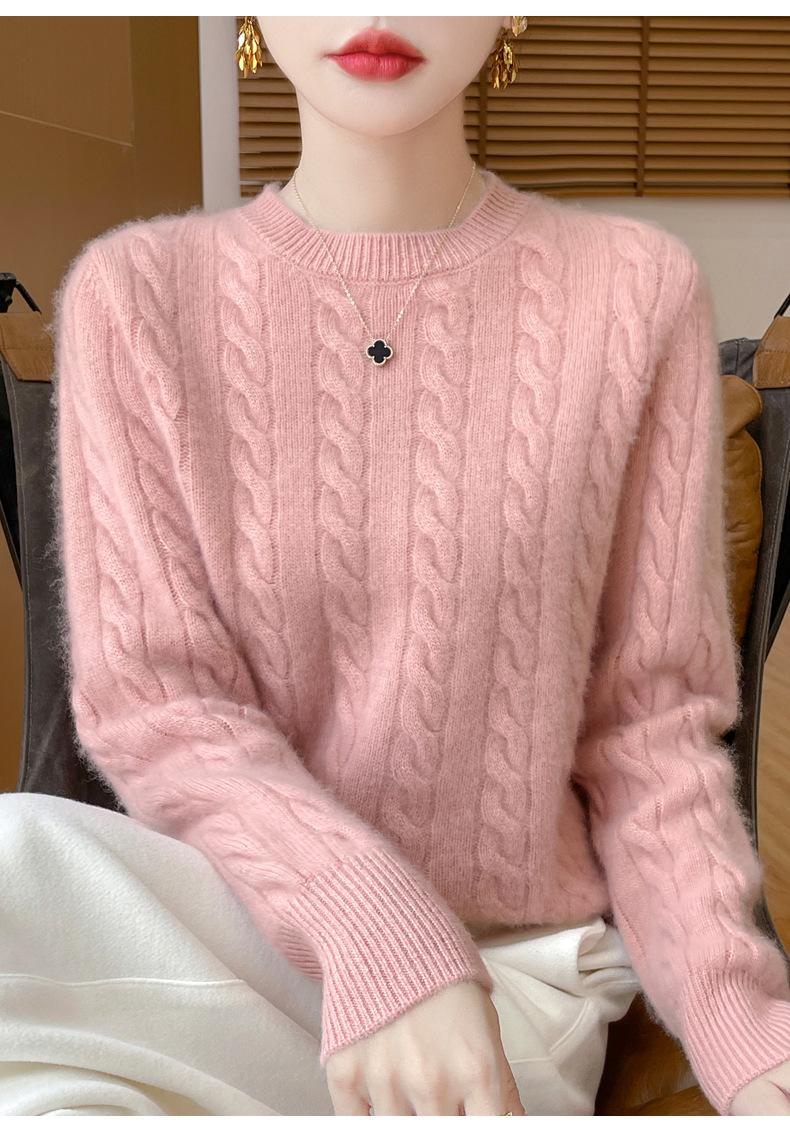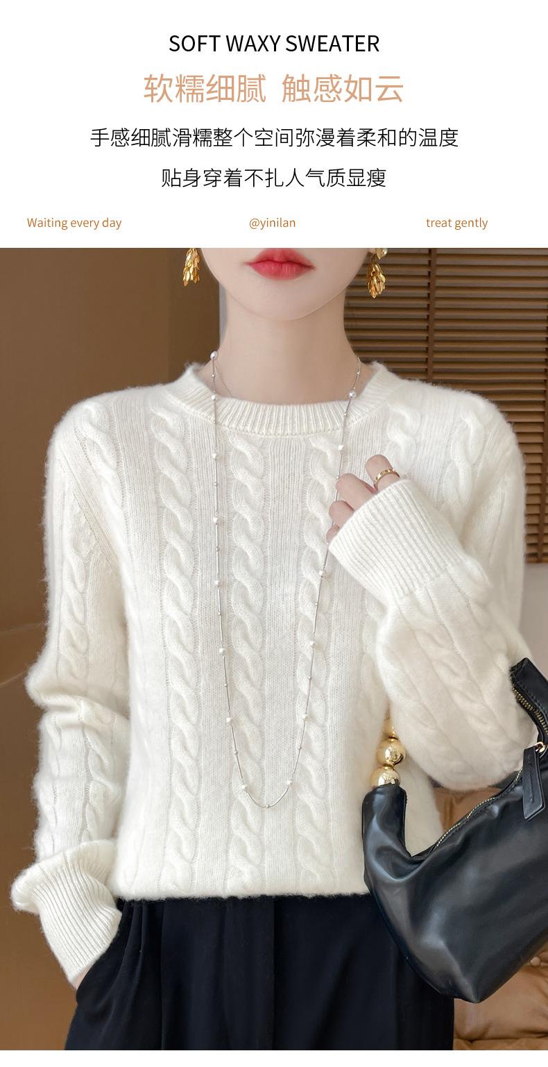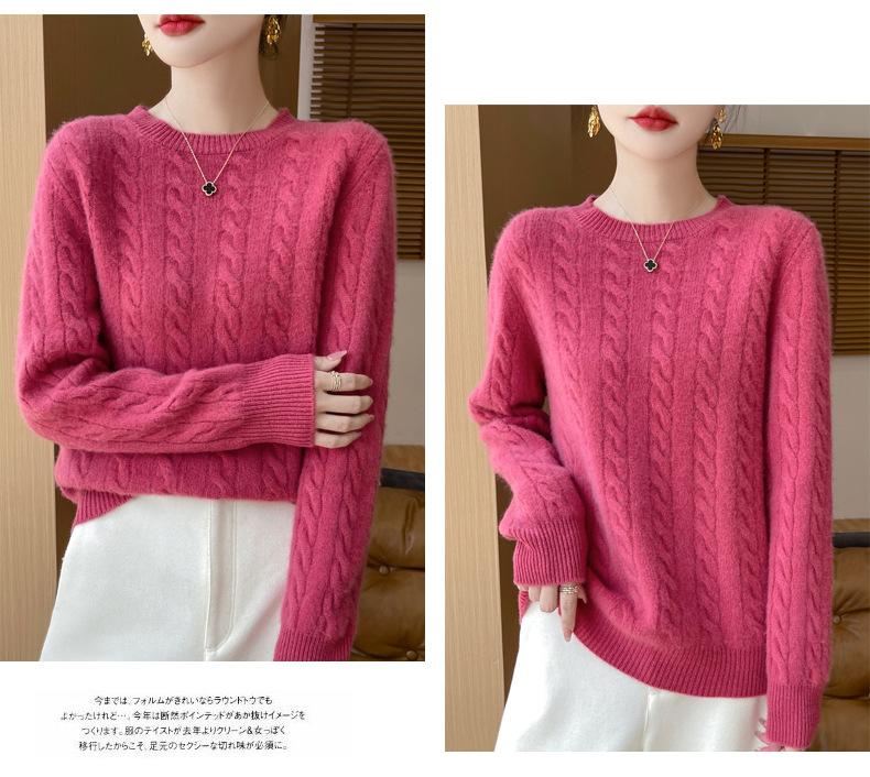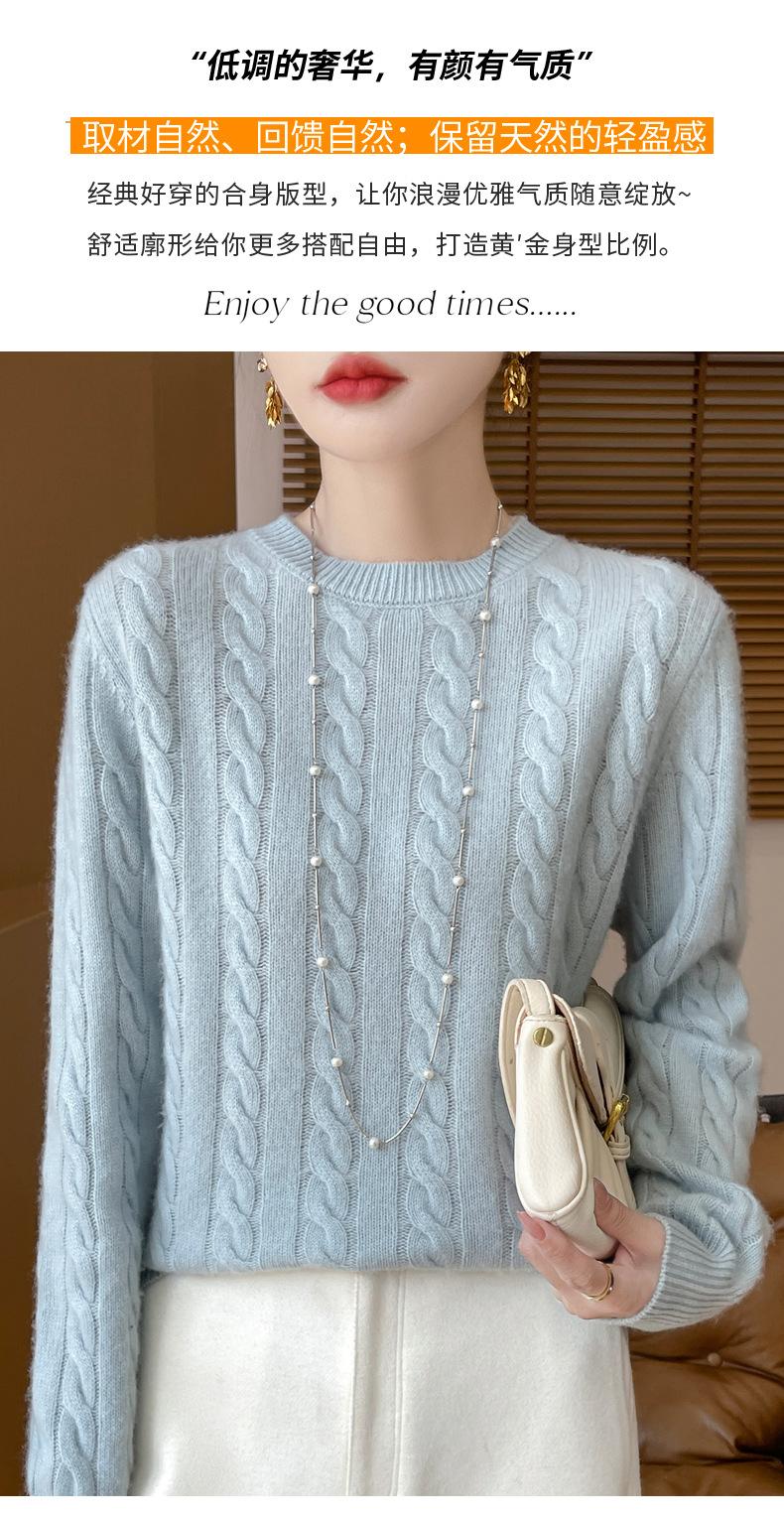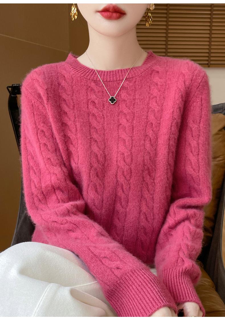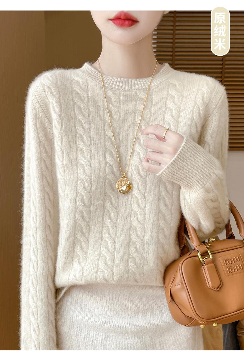 Camisa de punto con cuello redondo trenzado de lana pura para mujer, jersey de manga larga, color sólido, gruesa, para uso diario, otoño e invierno, nueva