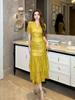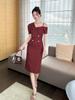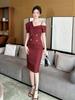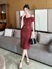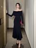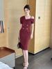 2025 Nuevo Verano para Mujer Francés Sexy Hombros Descubiertos Ajustado Caderas Ceñidas Largo Medio Vestido Traje 50959