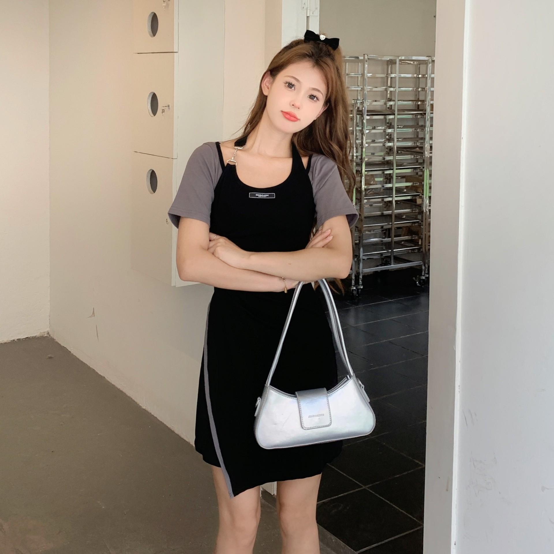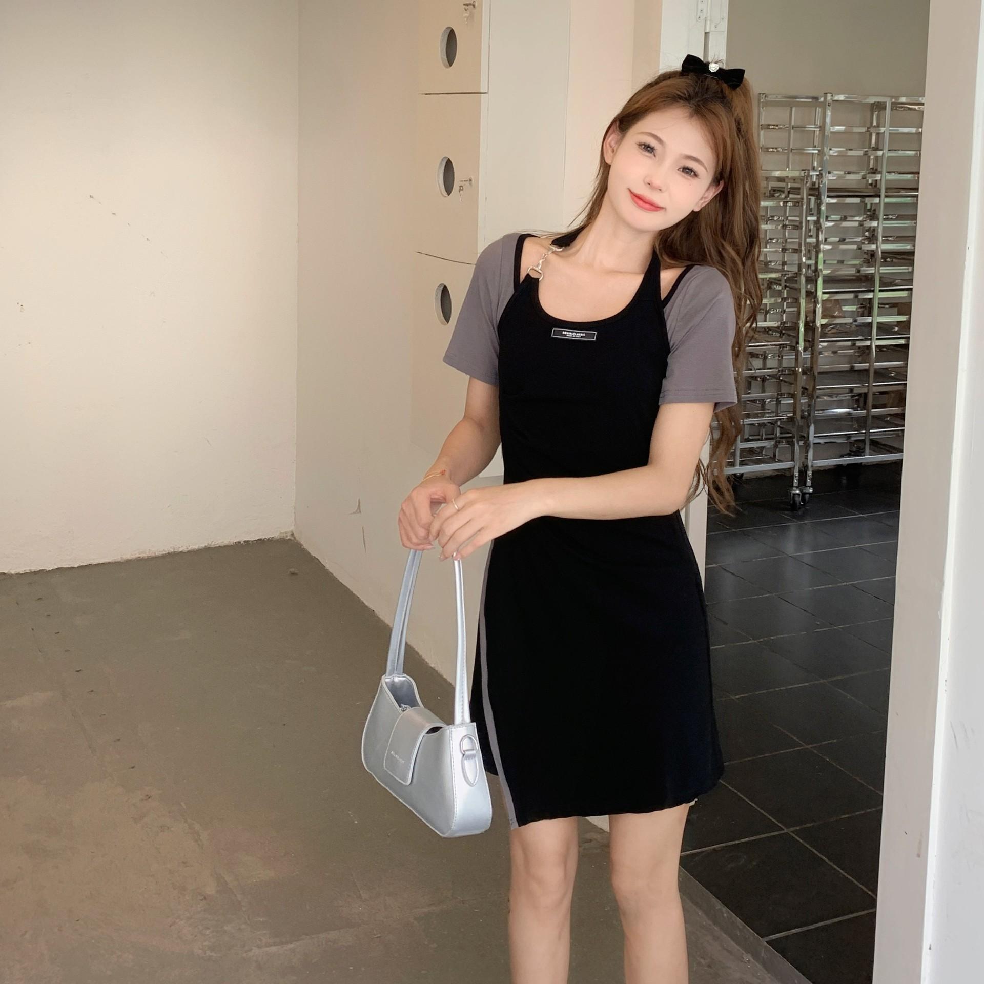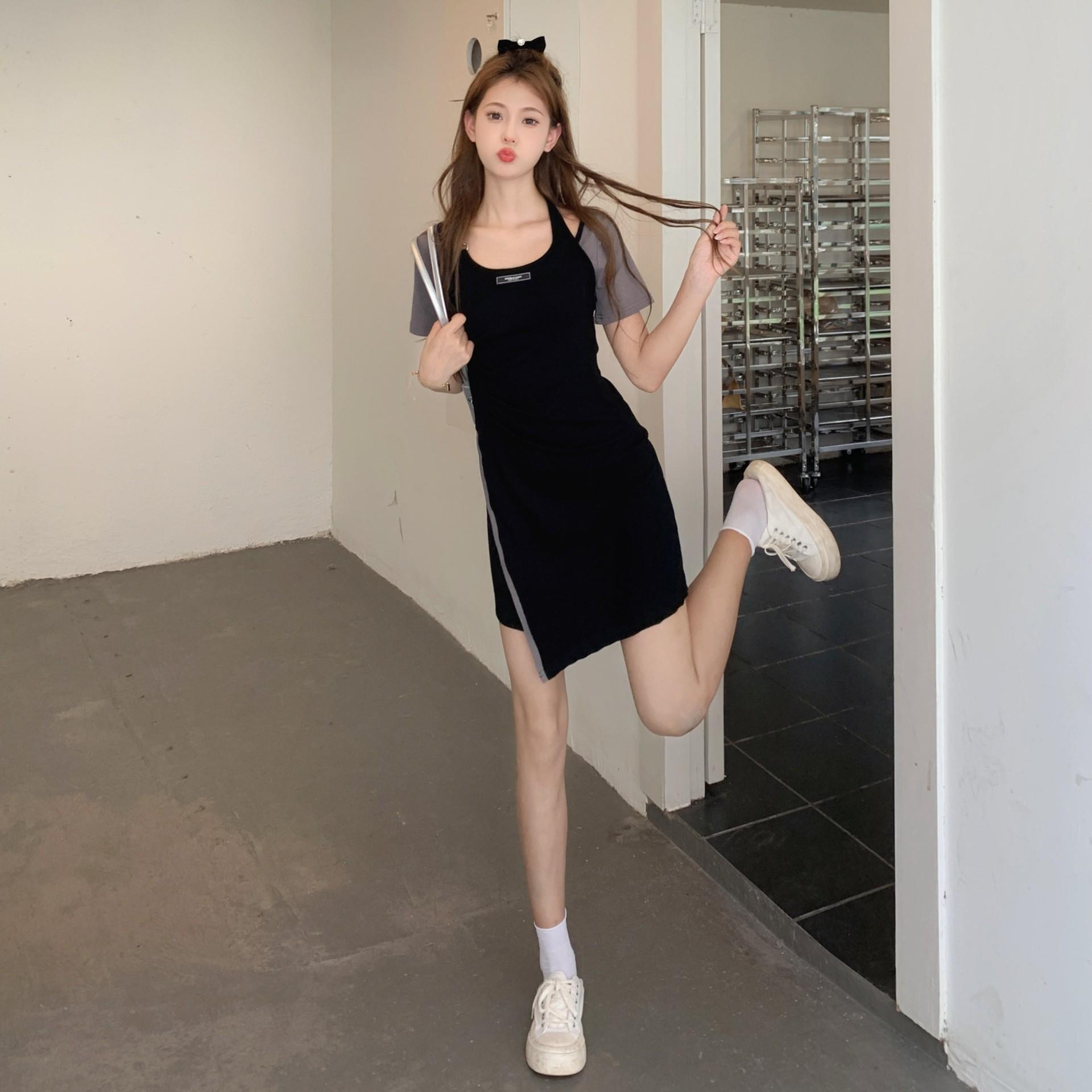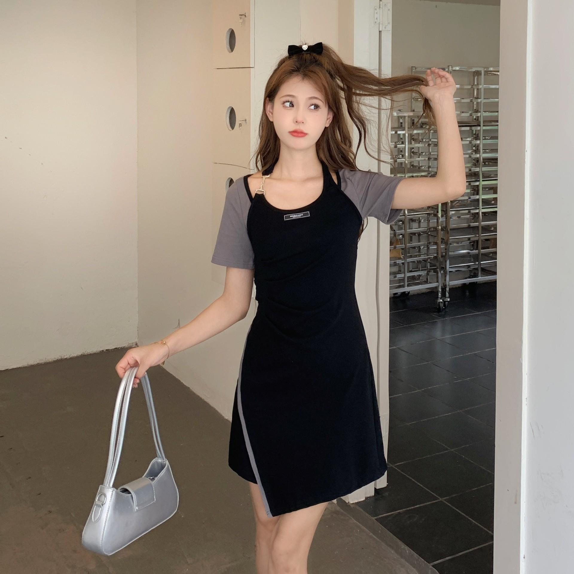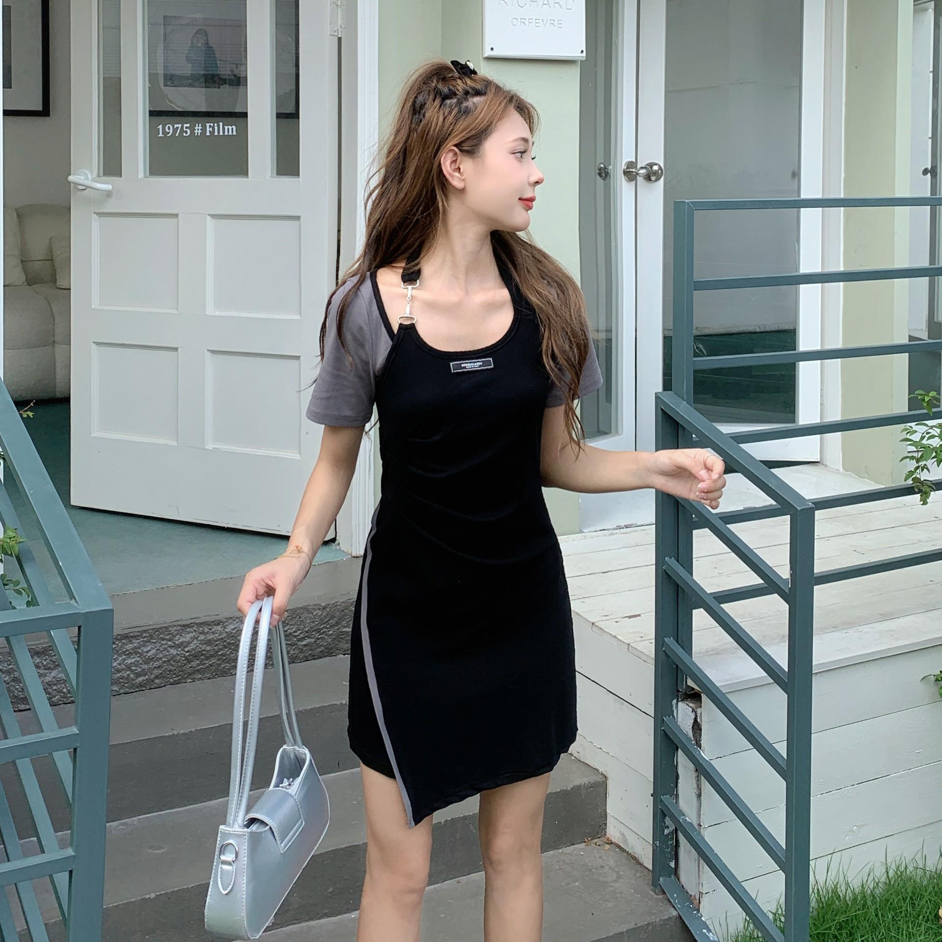 Vestido de dos piezas con escote pronunciado y hombros descubiertos para mujer, diseño de moda, verano 2023, nuevo, adelgazante, combinable, falda corta.