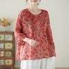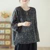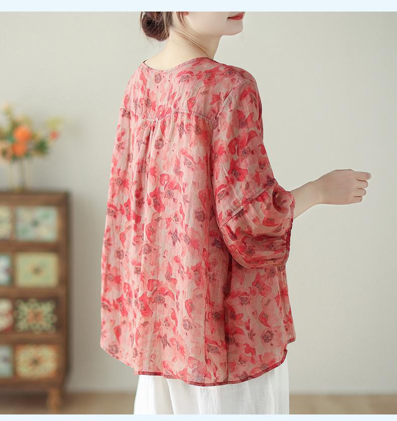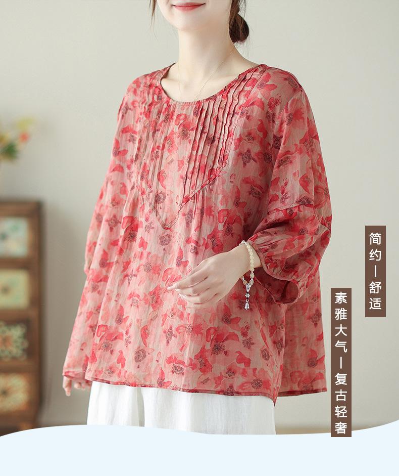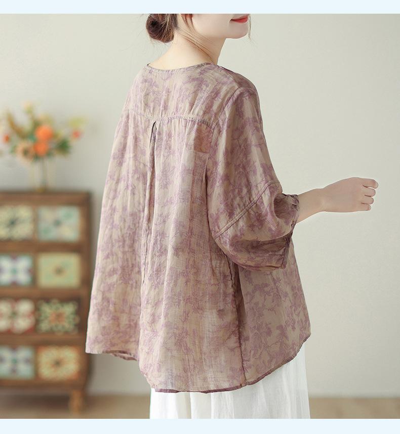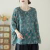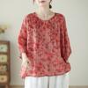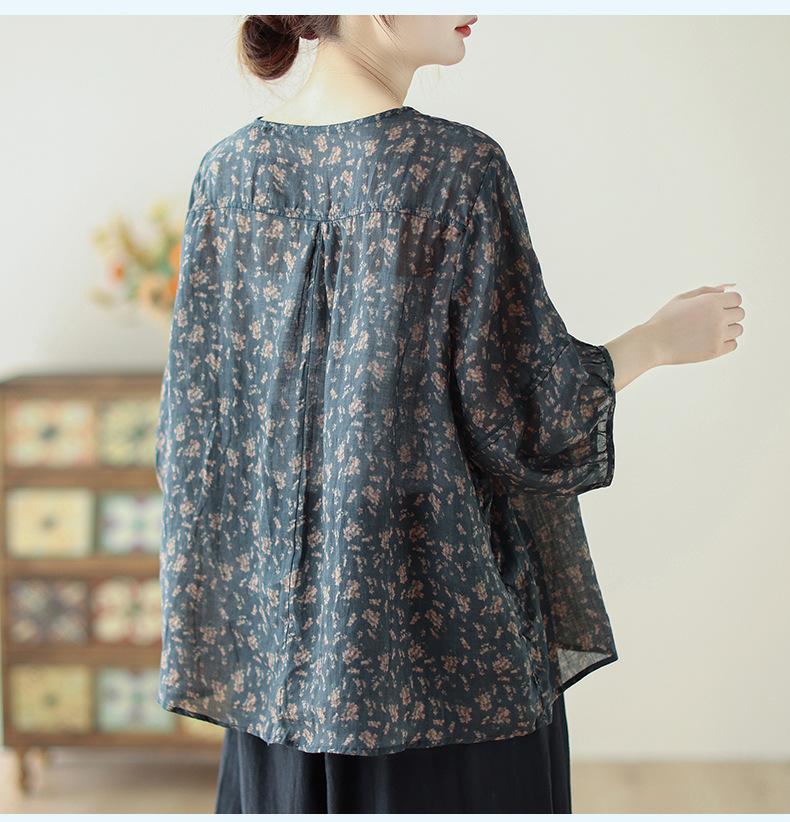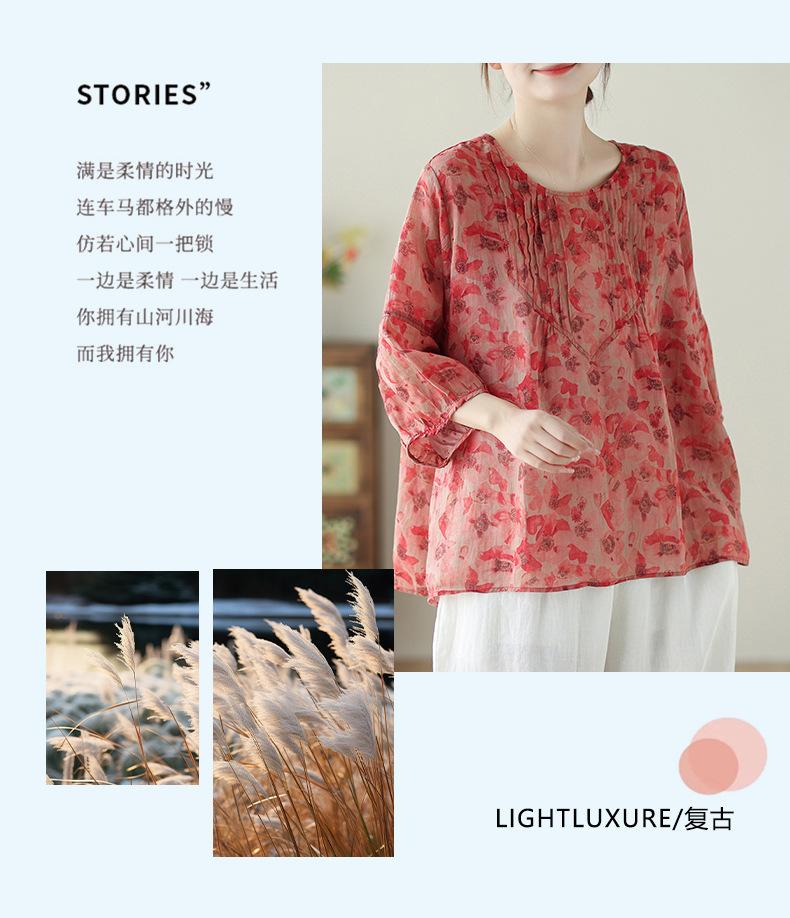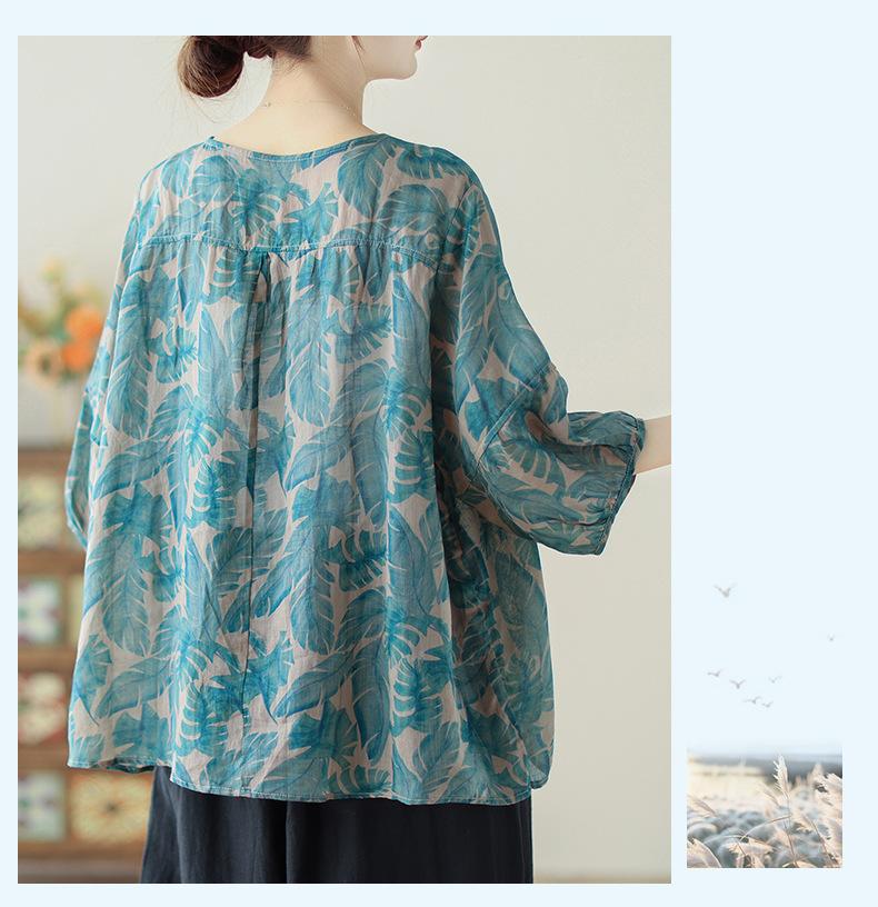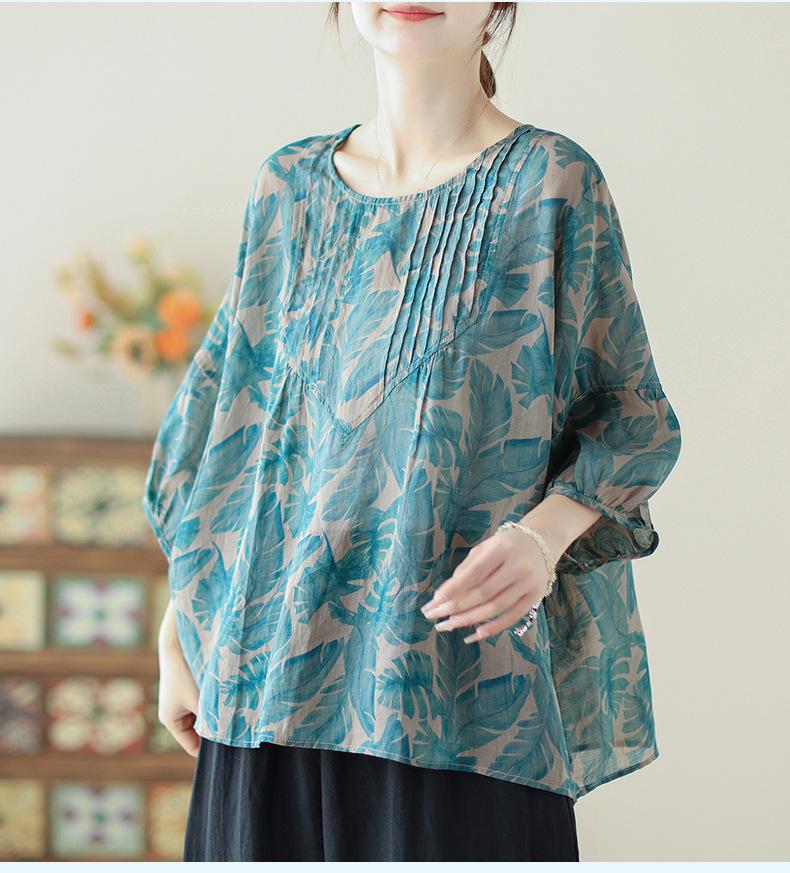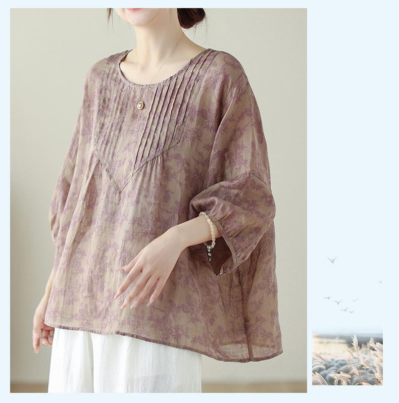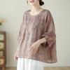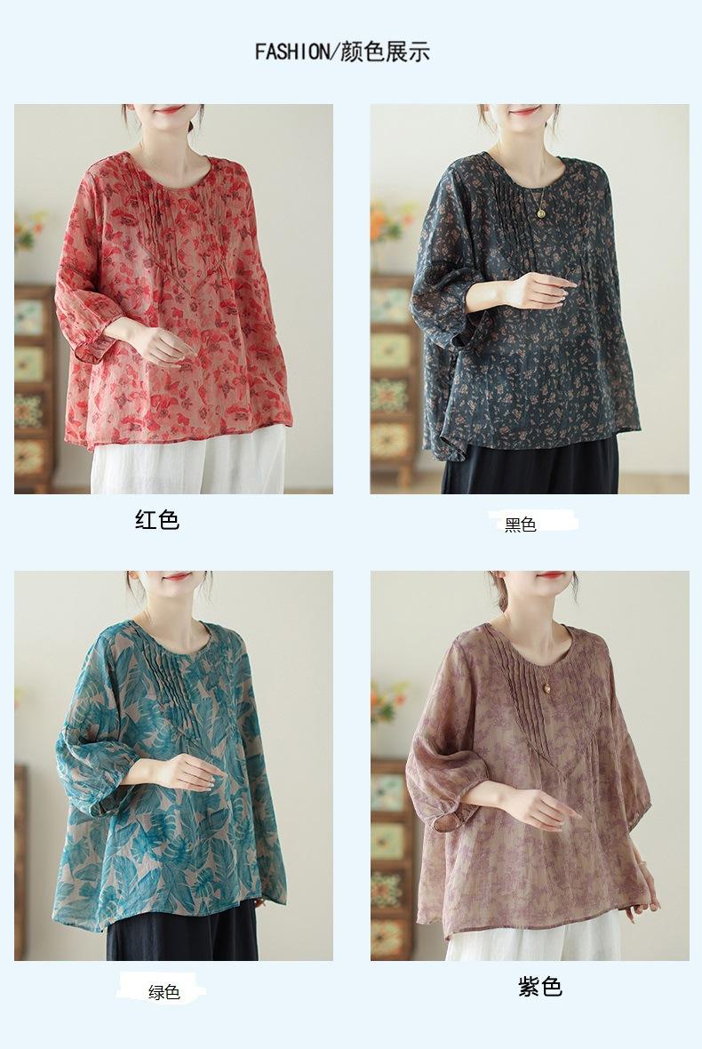 Camiseta de manga corta fina con cuello redondo y estampado floral, estilo artístico, de estilo real, de verano 2024