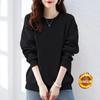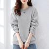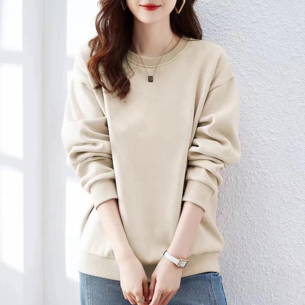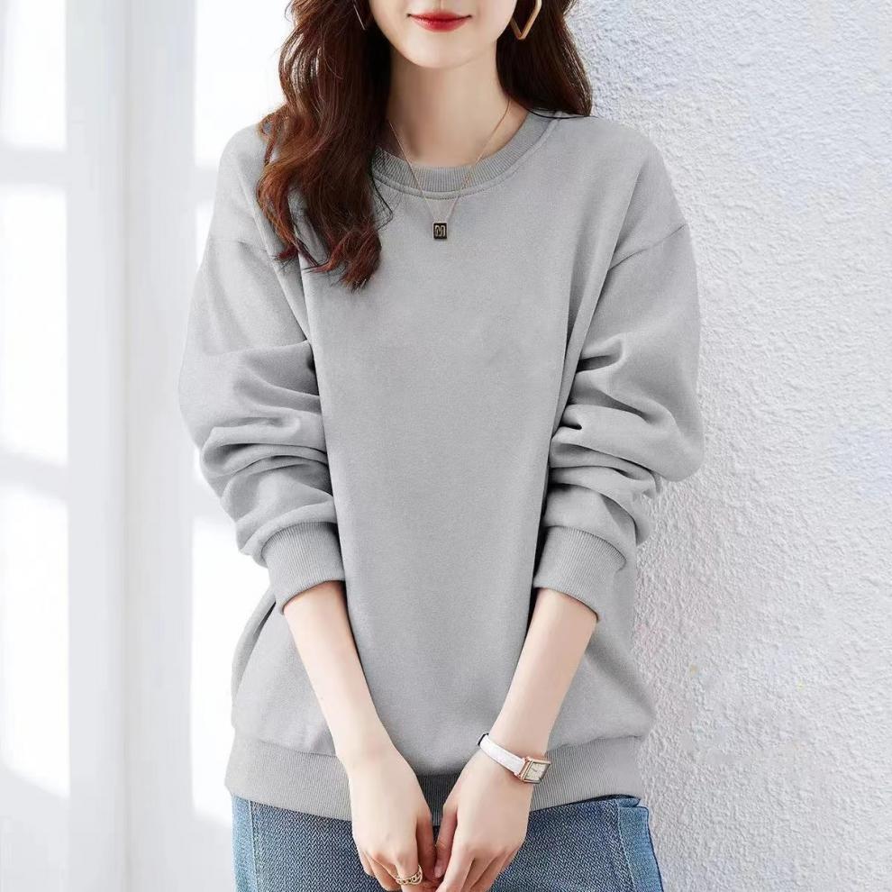 Top de mujer con cuello redondo suelto, de algodón grueso y forrado de vellón, estilo coreano, de primavera y otoño, color sólido, explosivo.