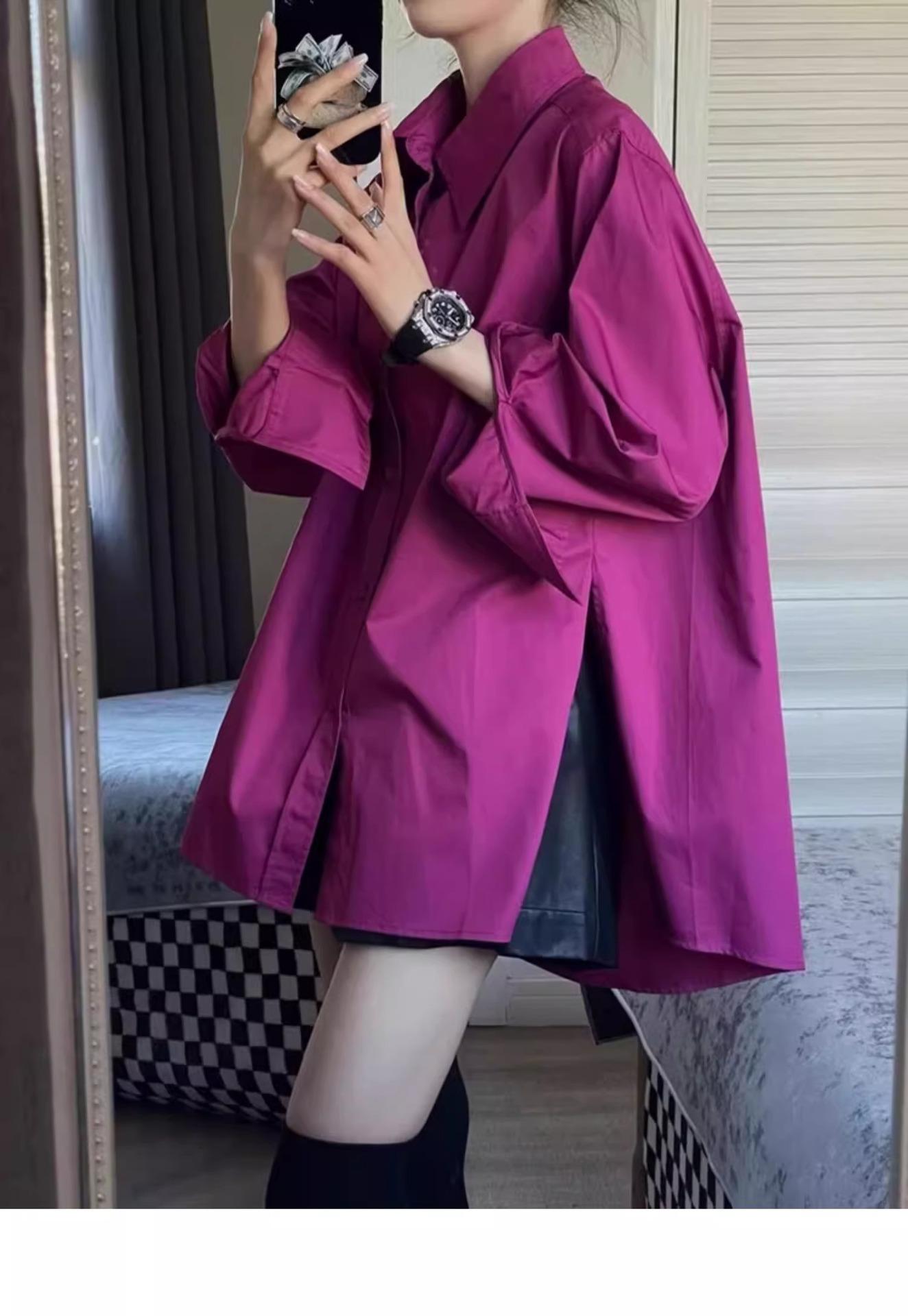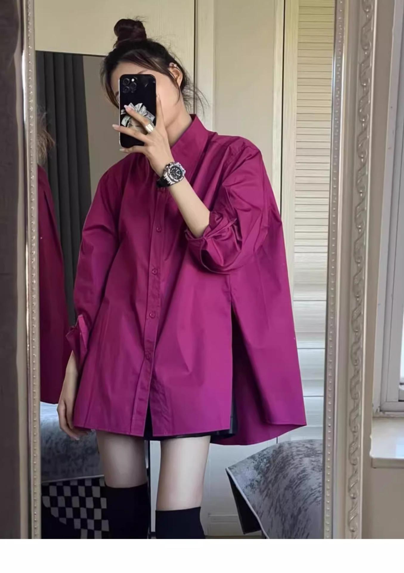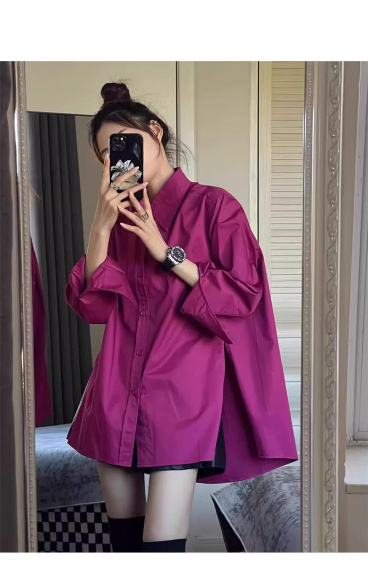 Camisa ligera de lujo en color rojo rosa para mujer, diseño de nicho, chaqueta holgada única y elegante con protección solar para primavera y otoño.