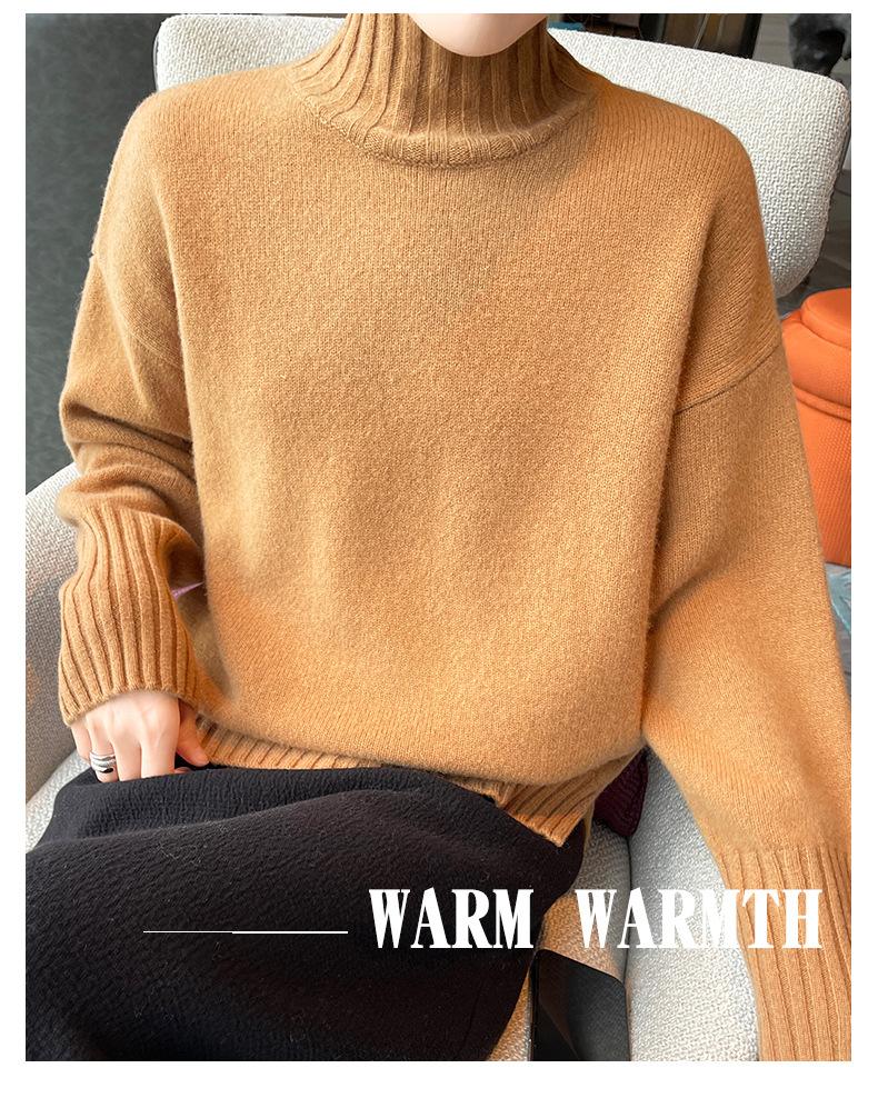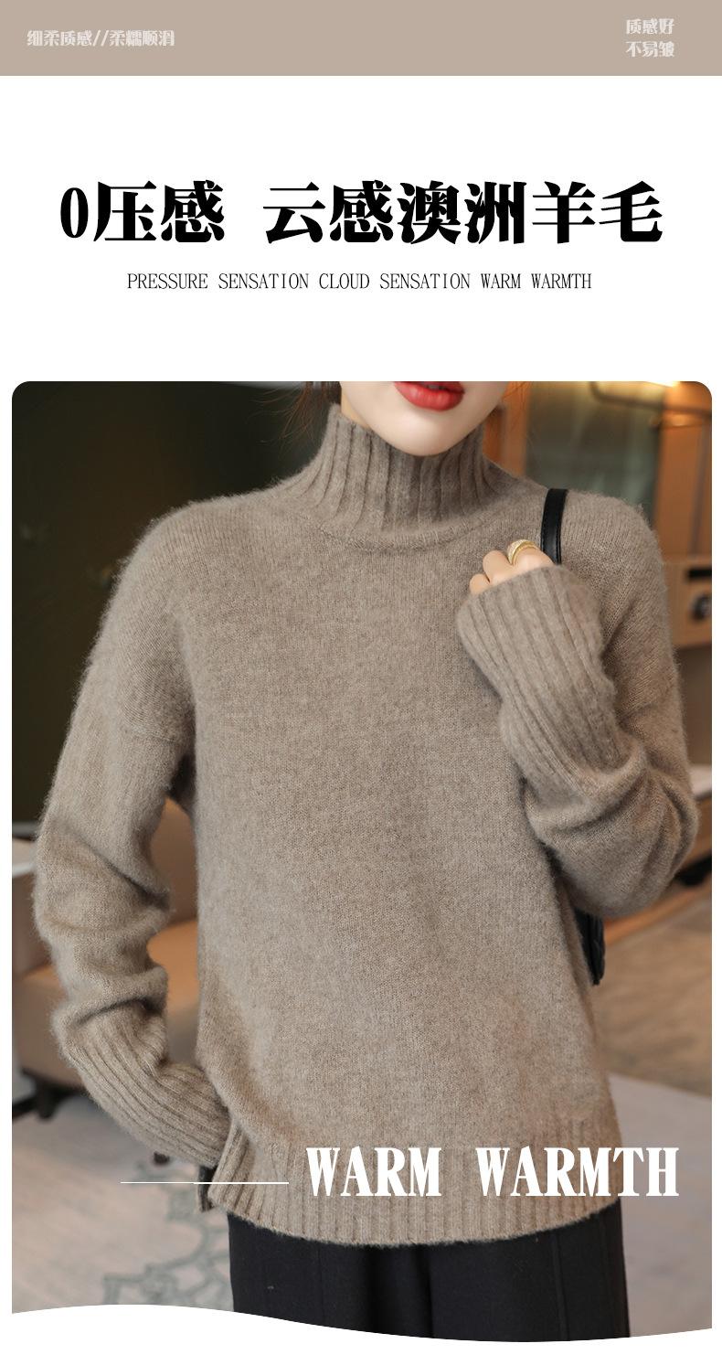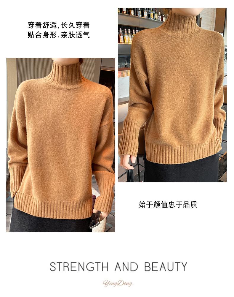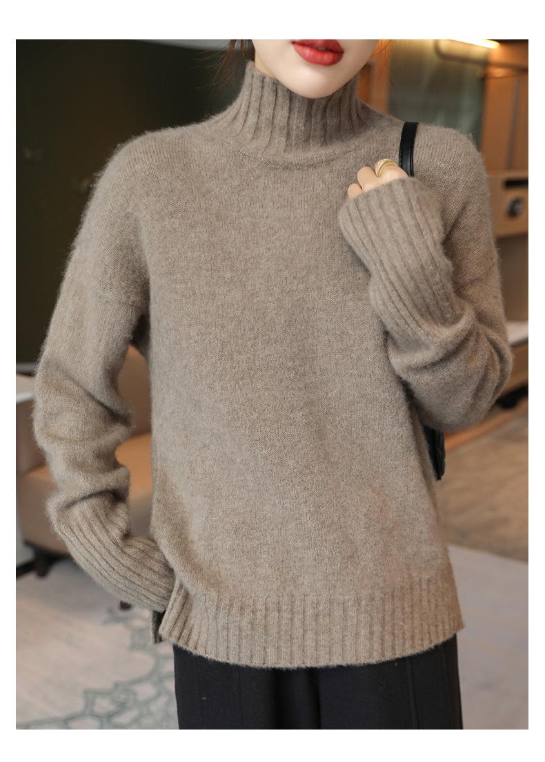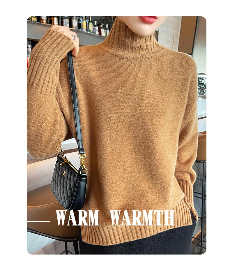 Suéter de lana 100% pura, nuevo suéter de moda para mujer, otoño e invierno, camisa base, nicho, sin golpes, parte superior elegante, interior grueso