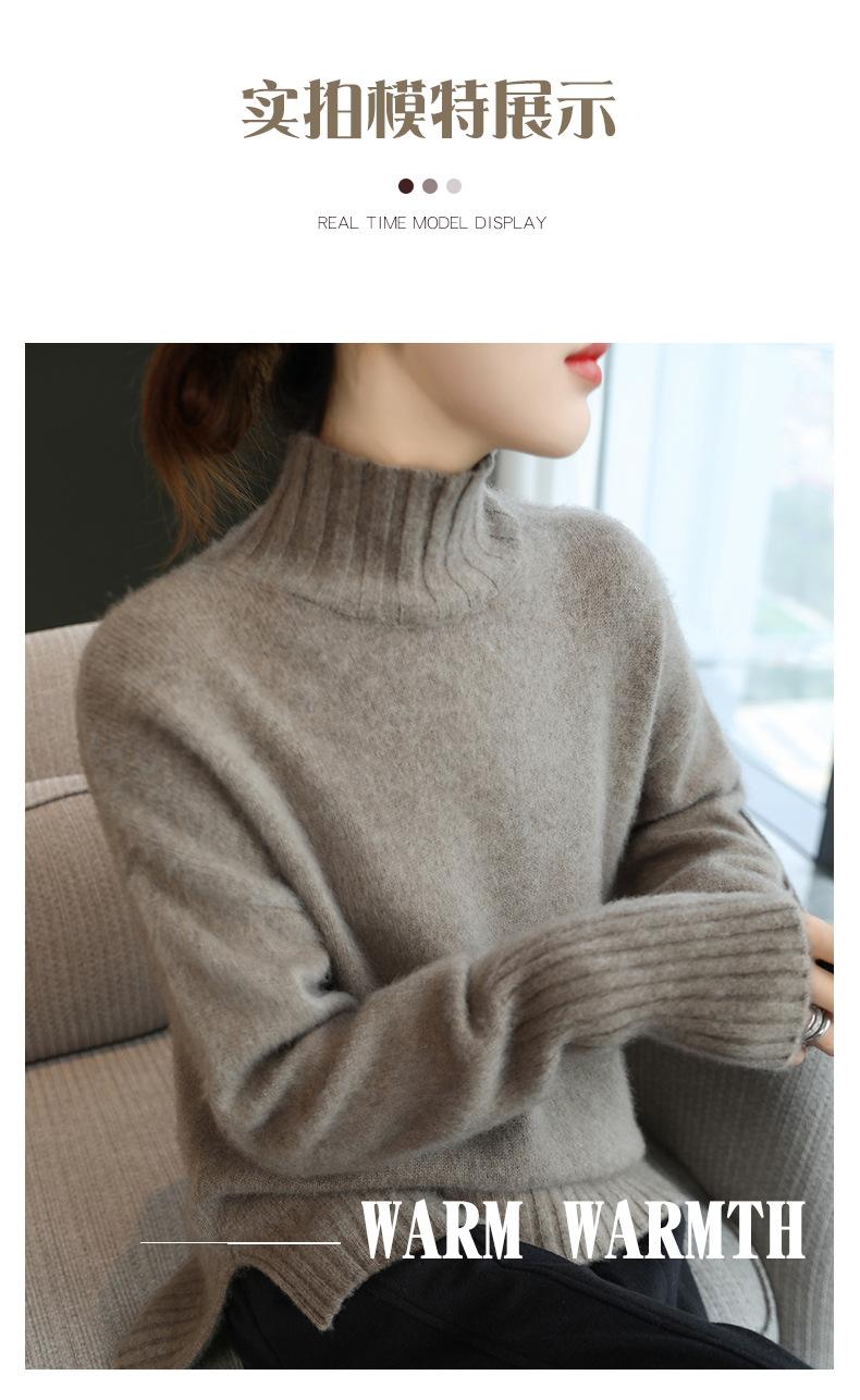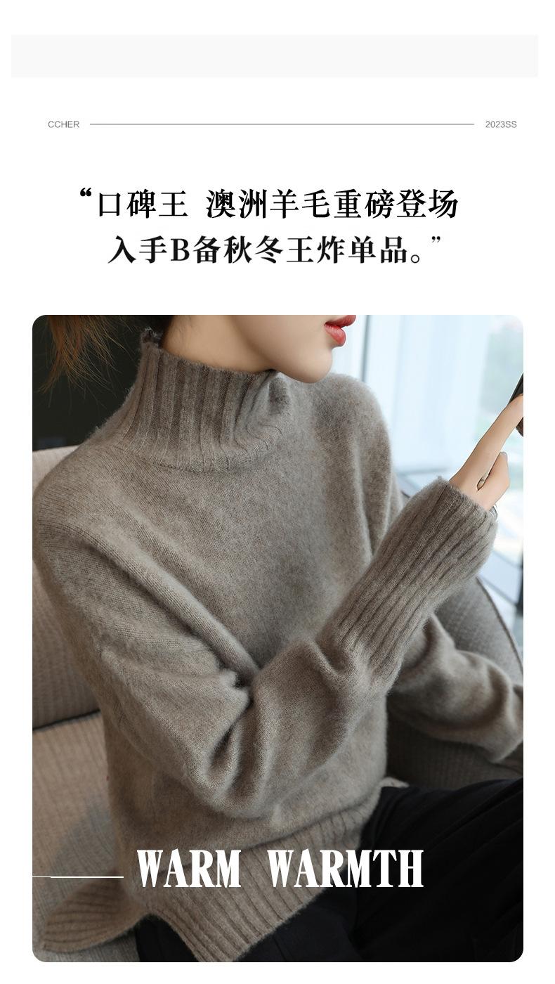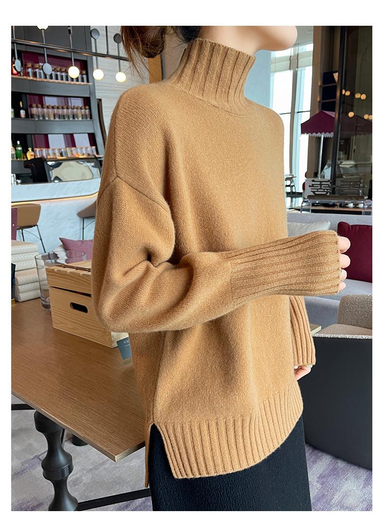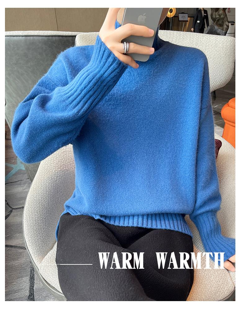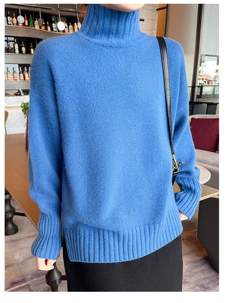 Suéter de lana 100% pura, nuevo suéter de moda para mujer, otoño e invierno, camisa base, nicho, sin golpes, parte superior elegante, interior grueso