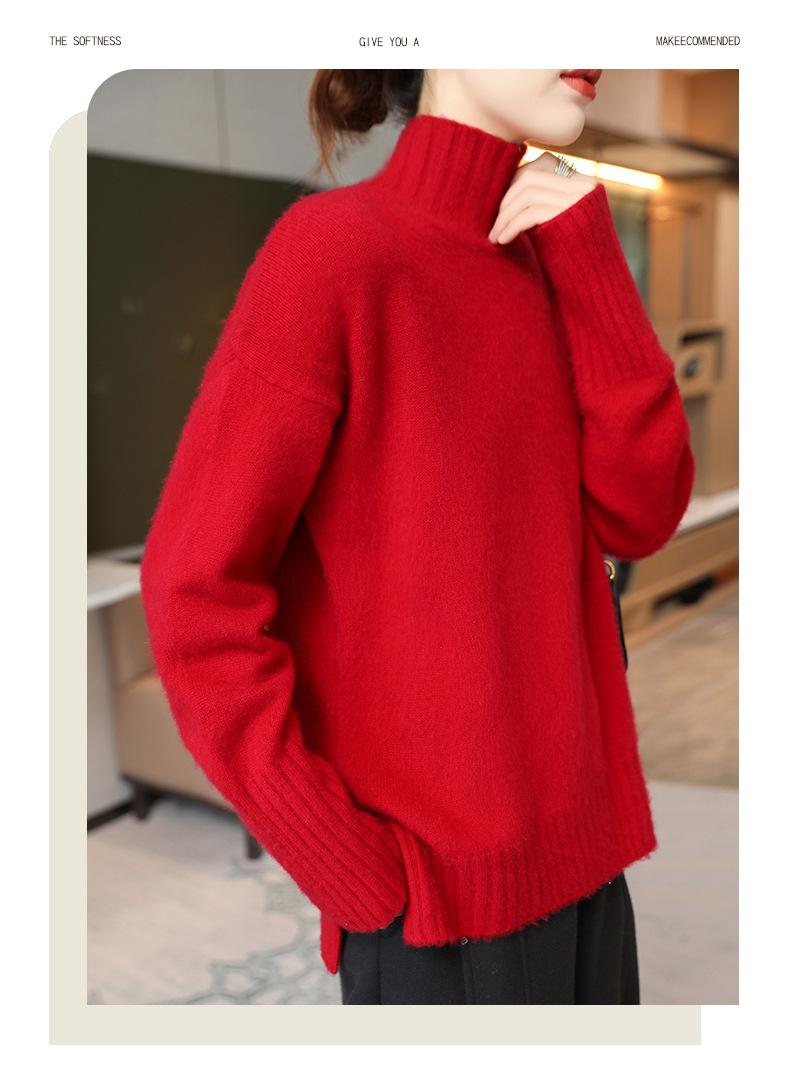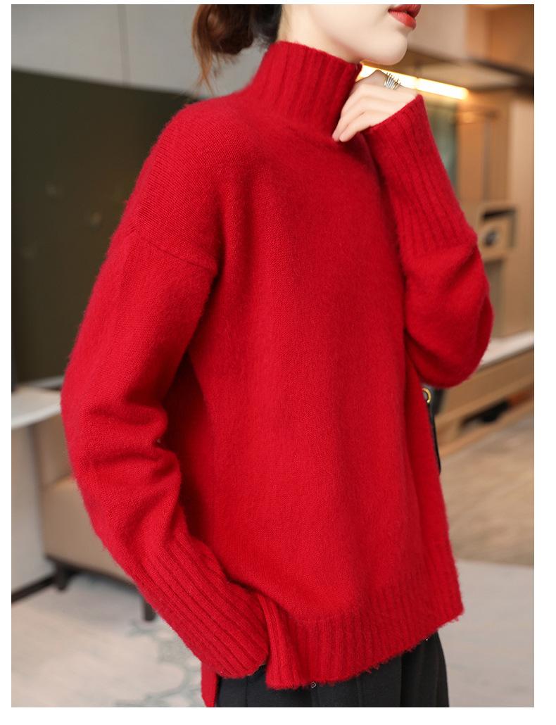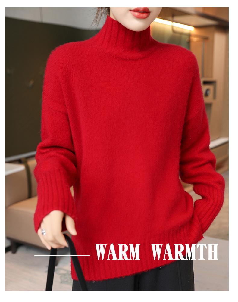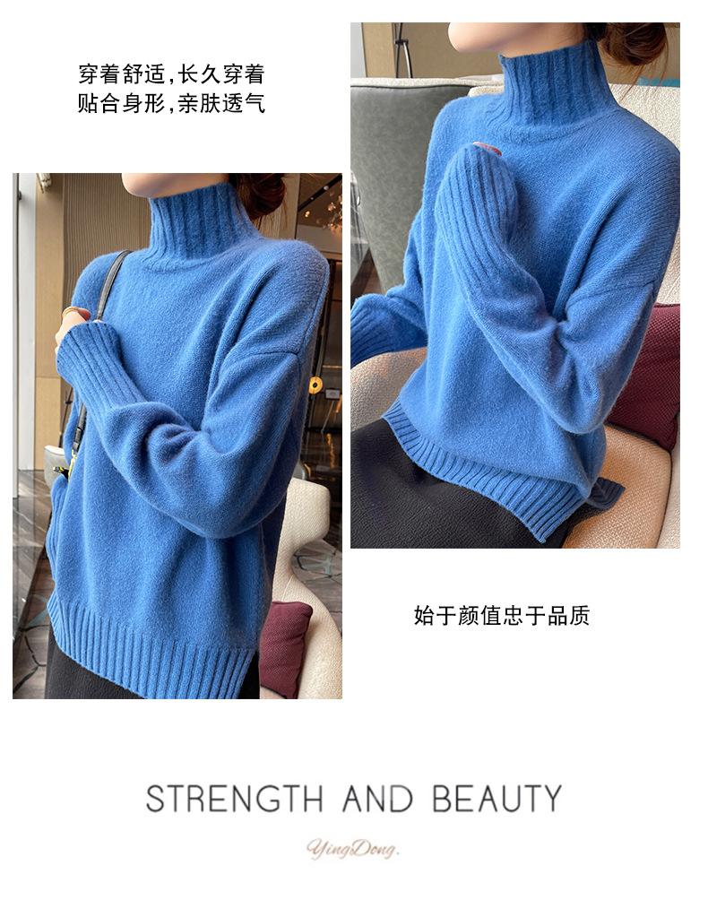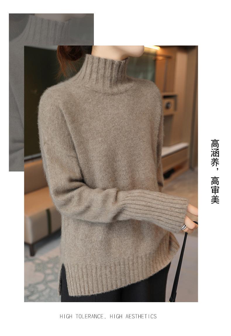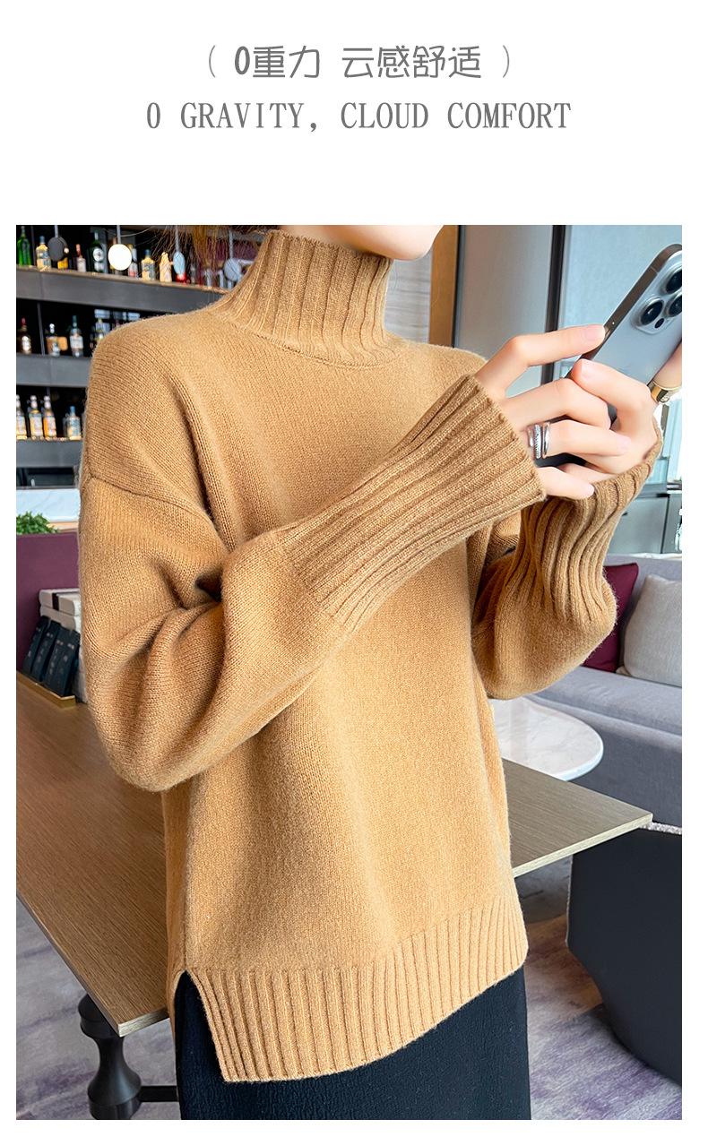 Suéter de lana 100% pura, nuevo suéter de moda para mujer, otoño e invierno, camisa base, nicho, sin golpes, parte superior elegante, interior grueso