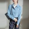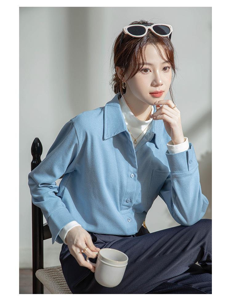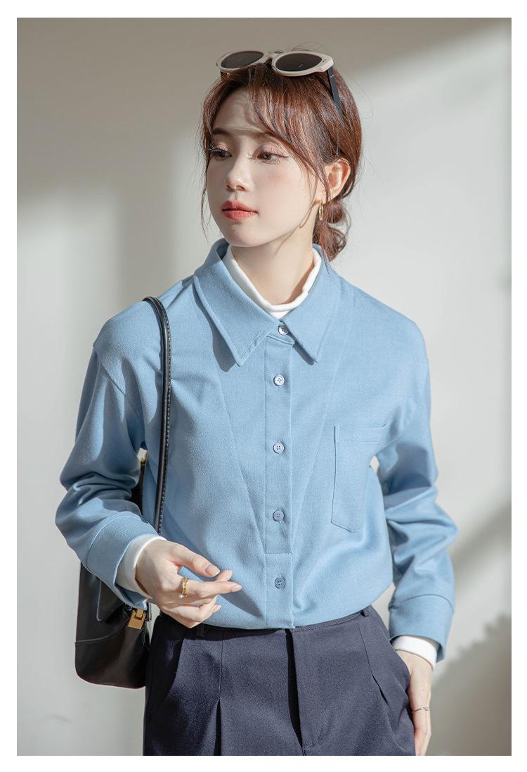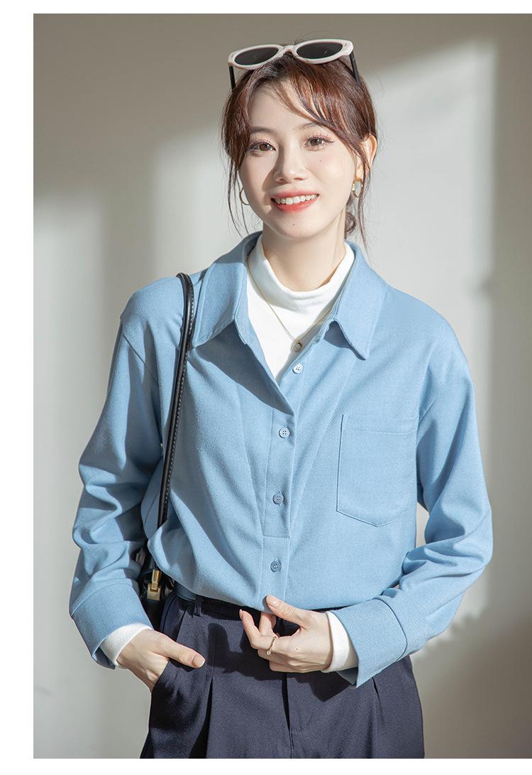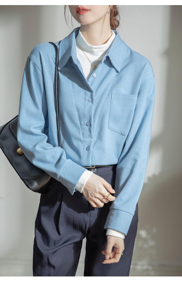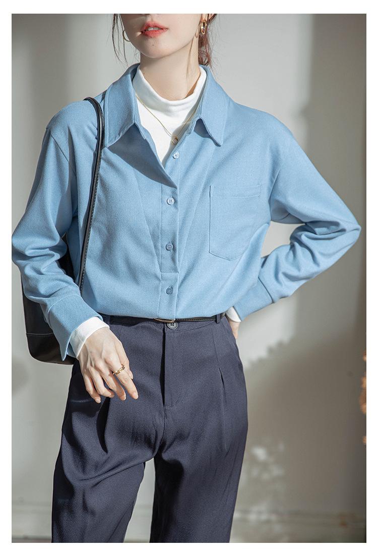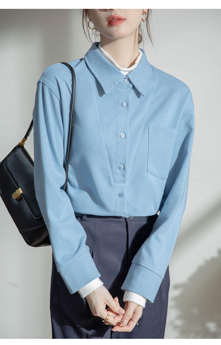 Camisa Azul Falsa de Dos Piezas con Cepillo para Mujer Otoño e Invierno 2024 Nuevo Diseño Nicho Francés Apilado Top Interior