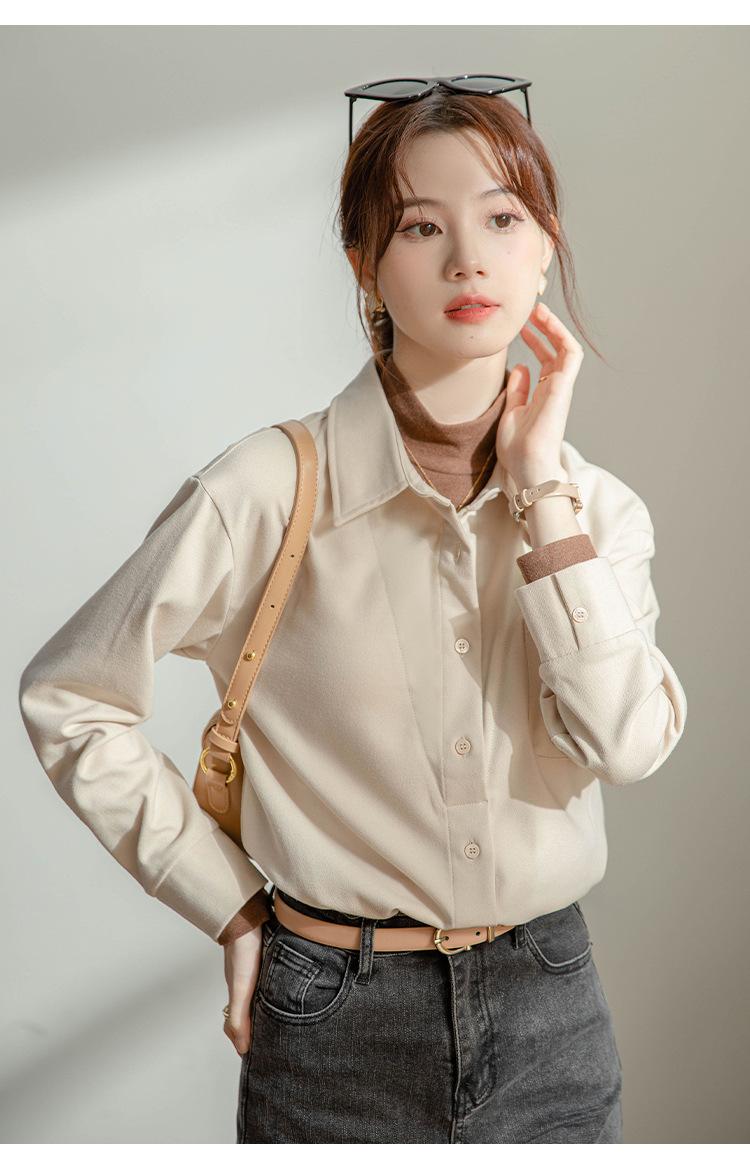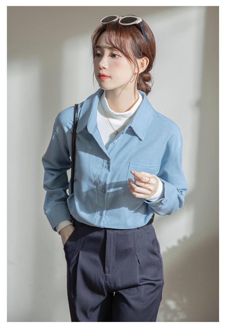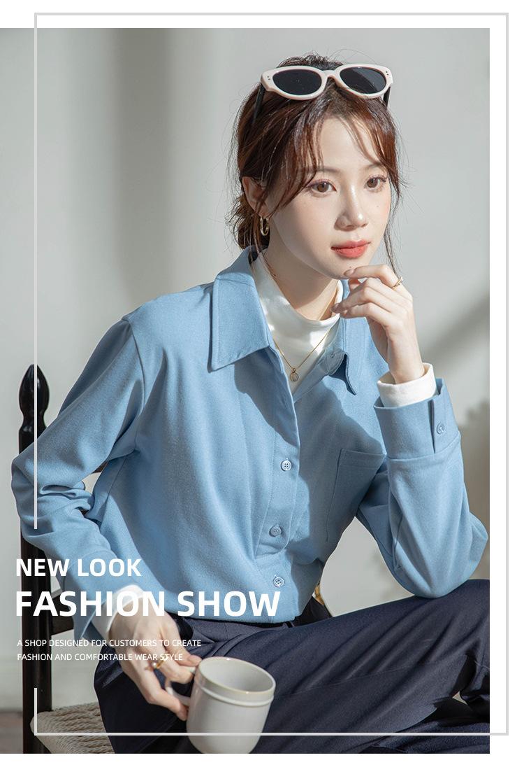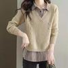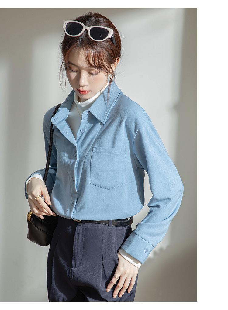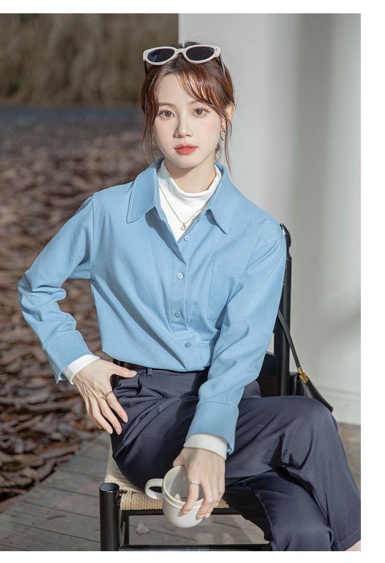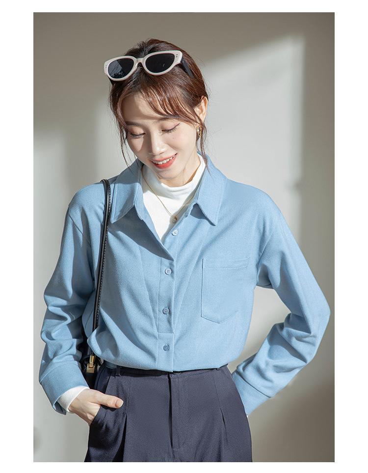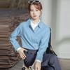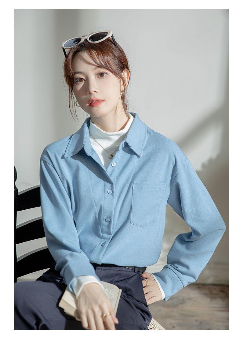 Camisa Azul Falsa de Dos Piezas con Cepillo para Mujer Otoño e Invierno 2024 Nuevo Diseño Nicho Francés Apilado Top Interior