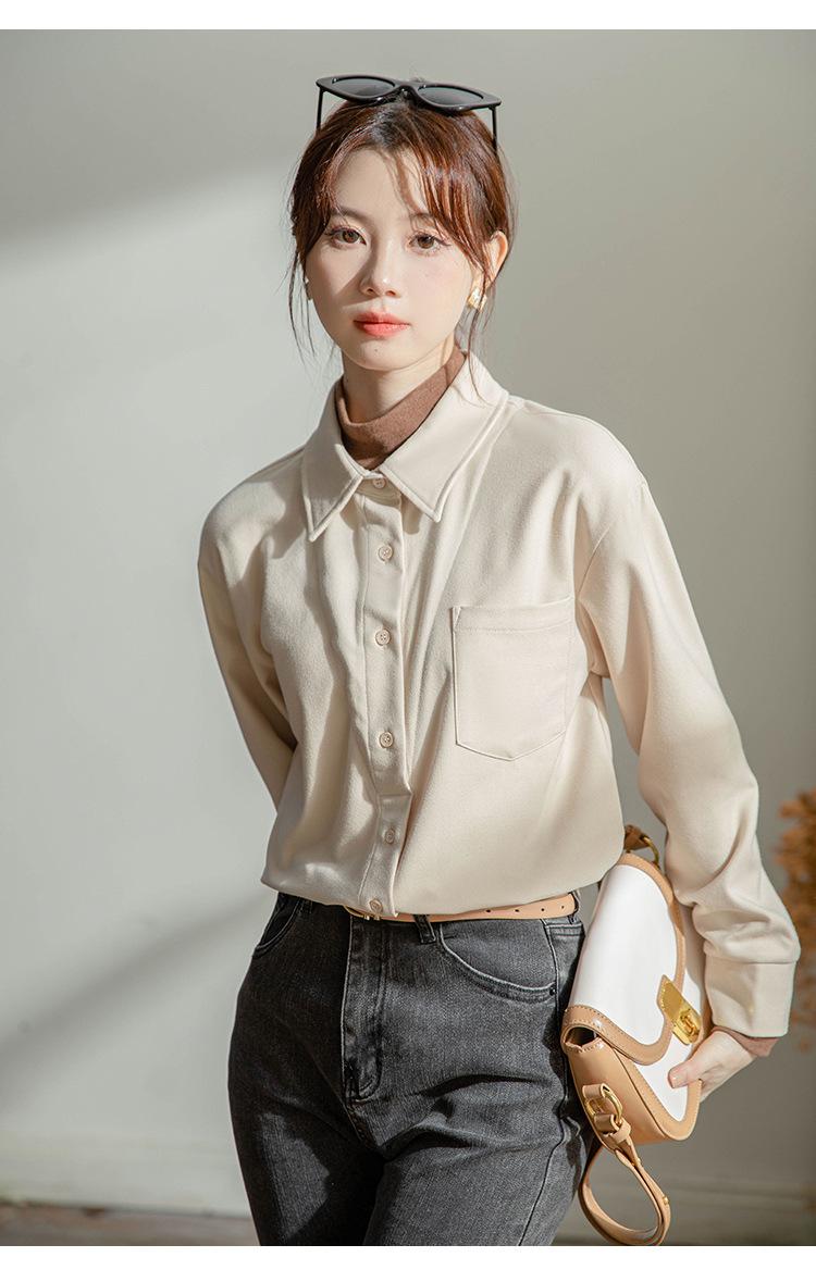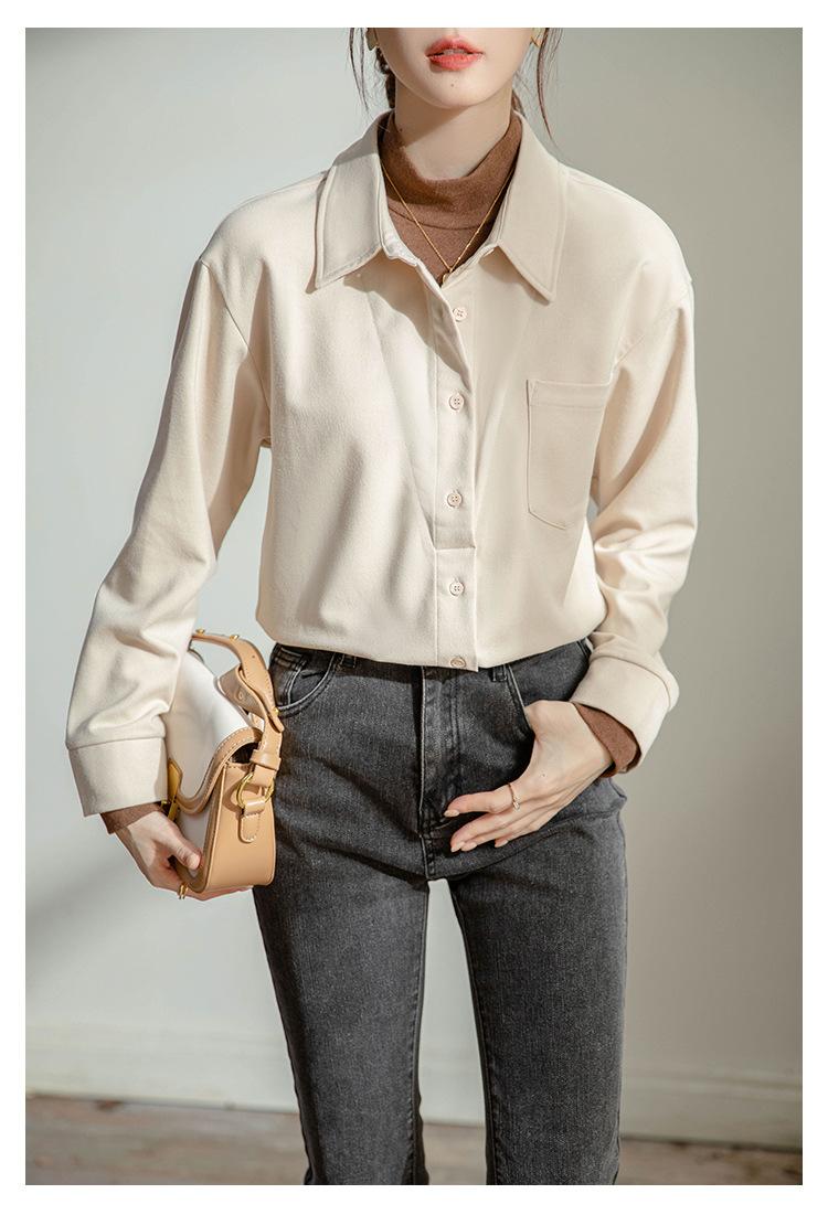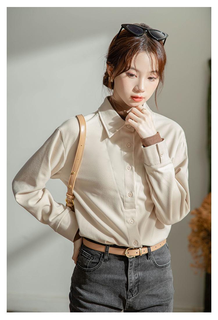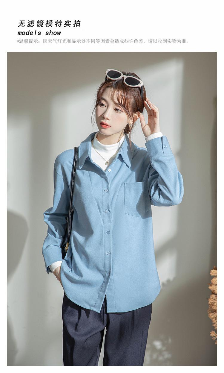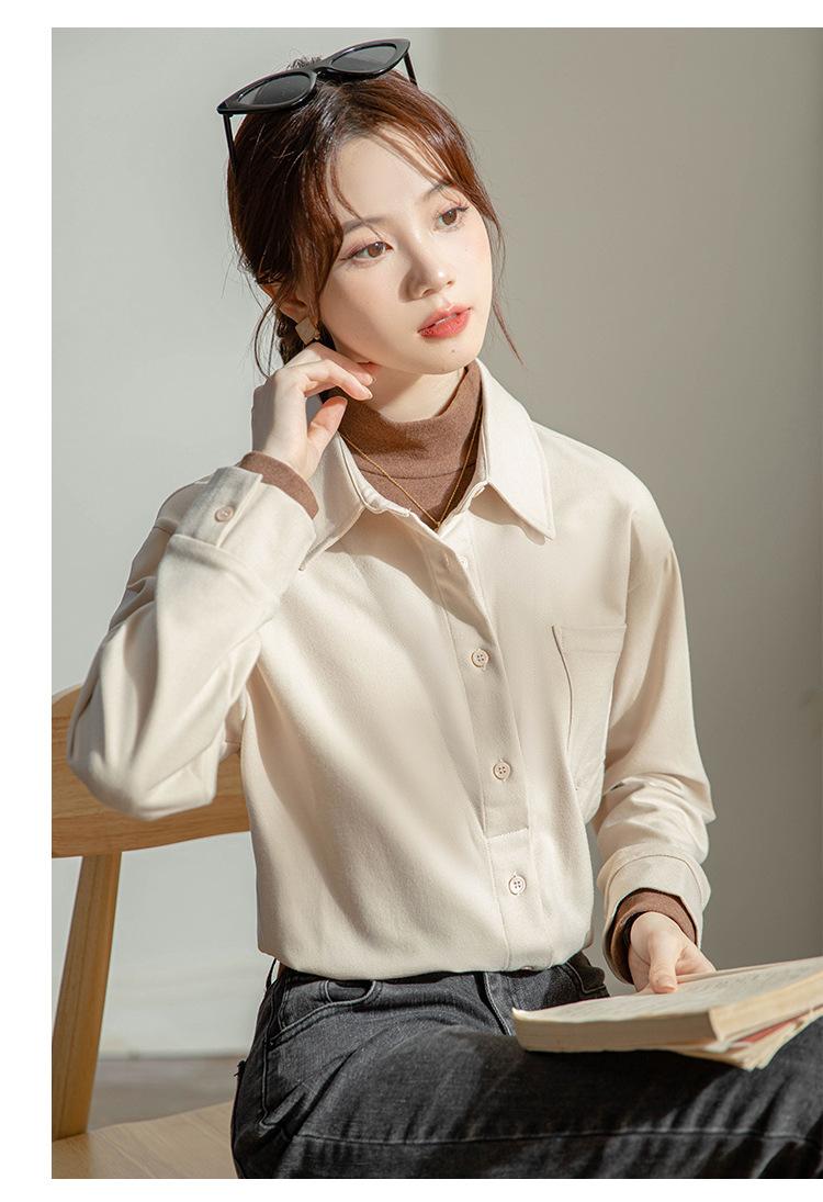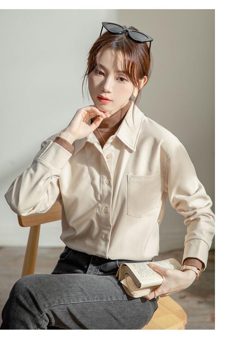 Camisa Azul Falsa de Dos Piezas con Cepillo para Mujer Otoño e Invierno 2024 Nuevo Diseño Nicho Francés Apilado Top Interior