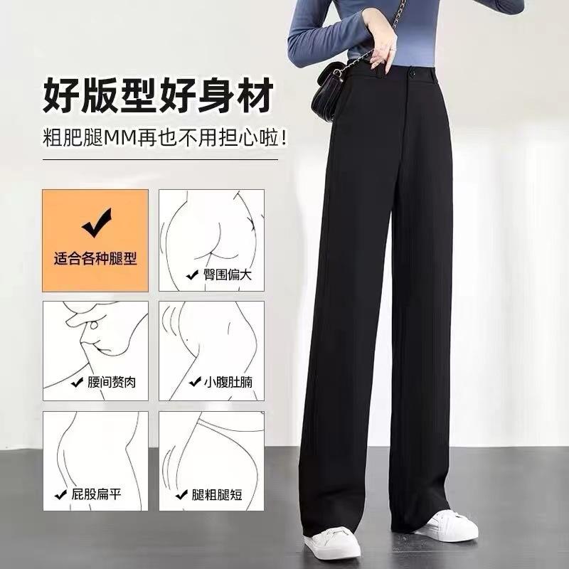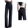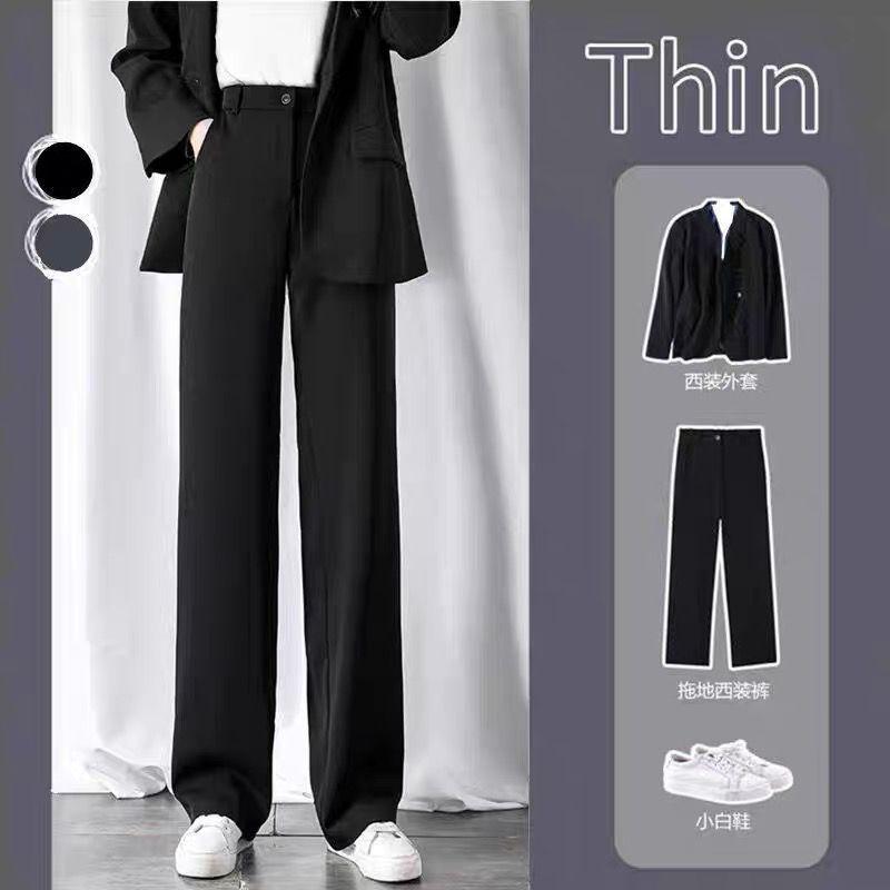 Pantalones de traje negros pequeños para estudiantes femeninas, pantalones holgados informales de cintura alta con pierna ancha, pantalones rectos de moda de verano