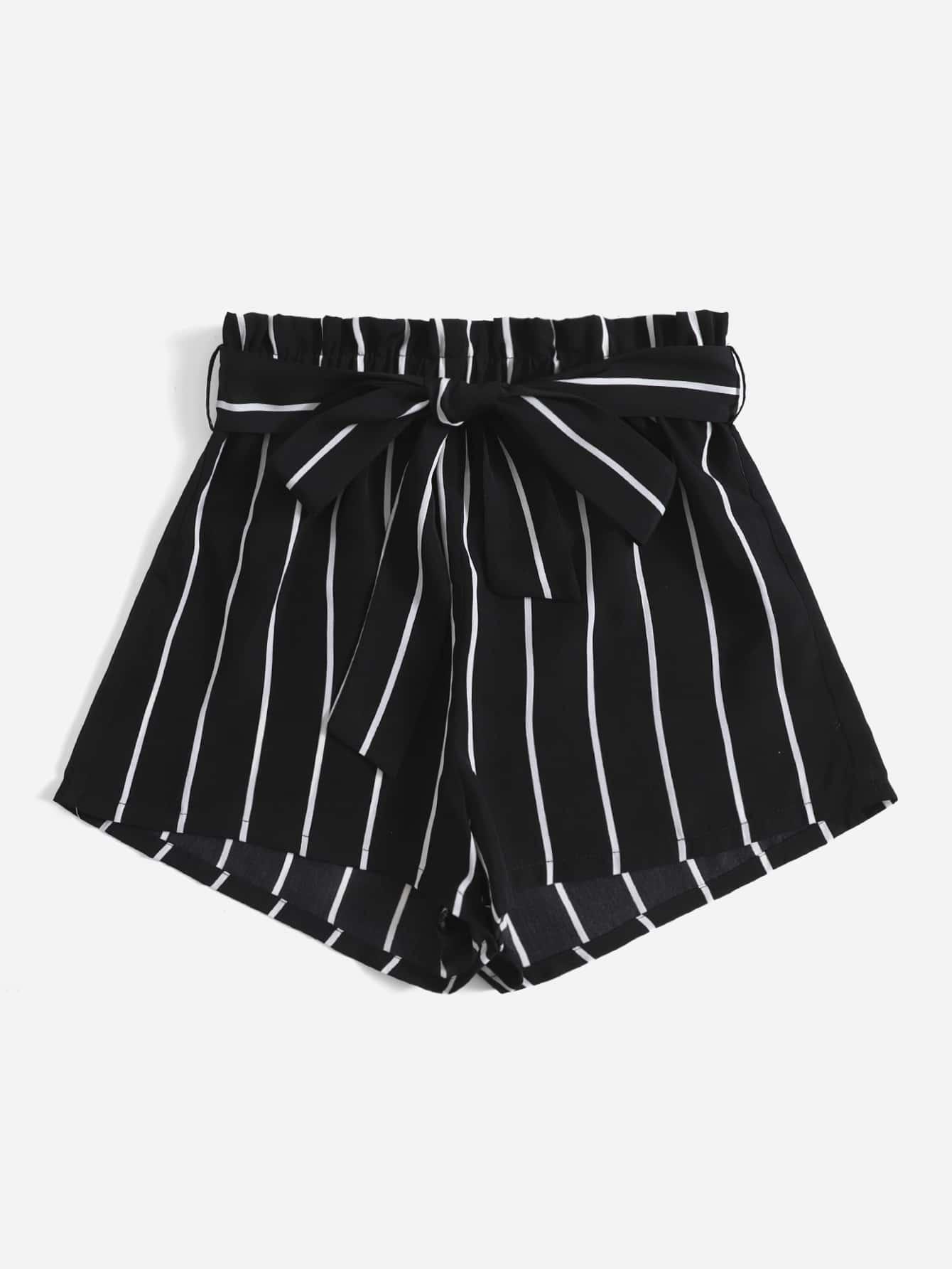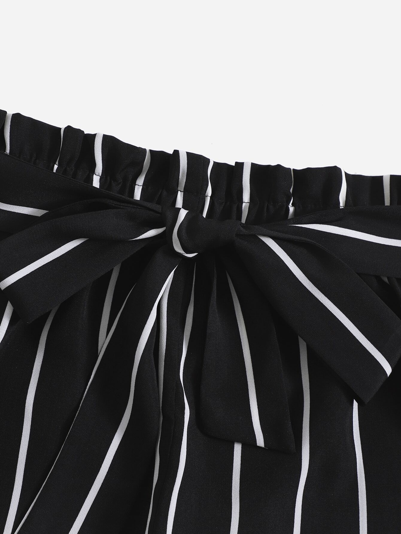 AliExpress Moda de Verano para Mujer Europea y Americana Nuevo Shorts Casuales Holgados a Rayas Blancas y Negras con Lazo Combinables de Corte Slim