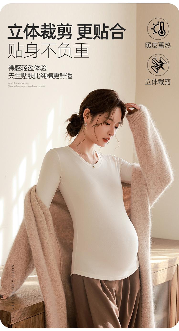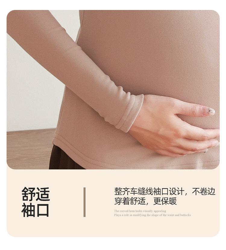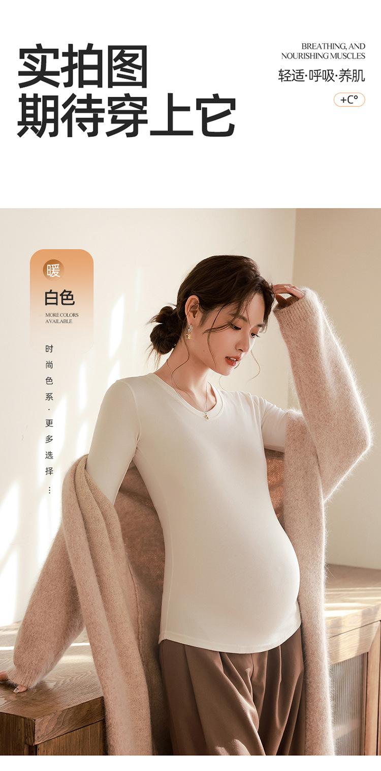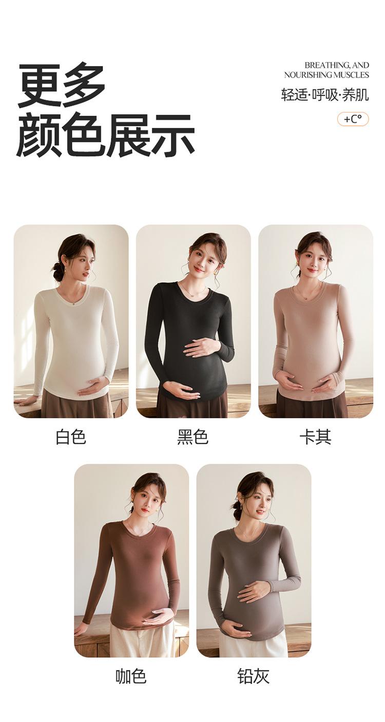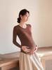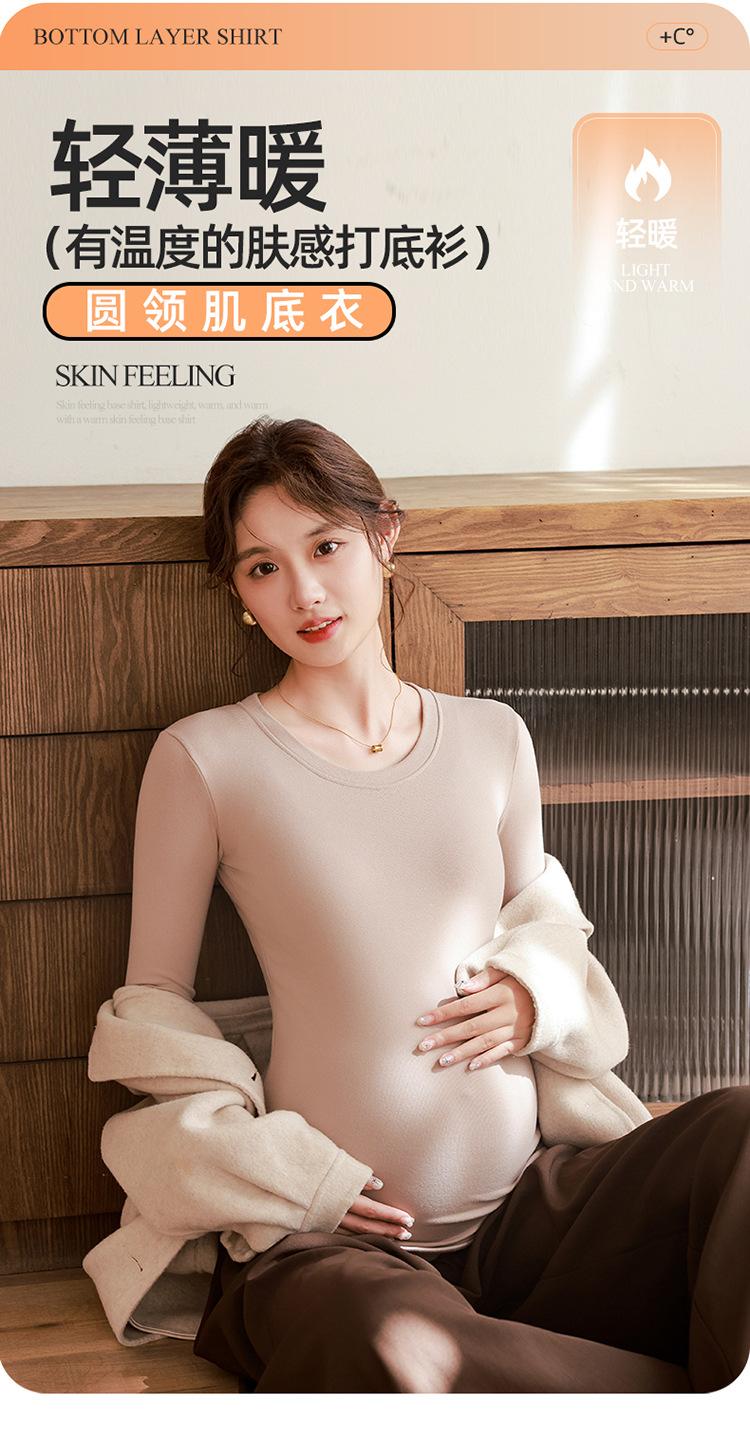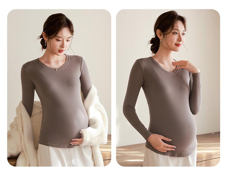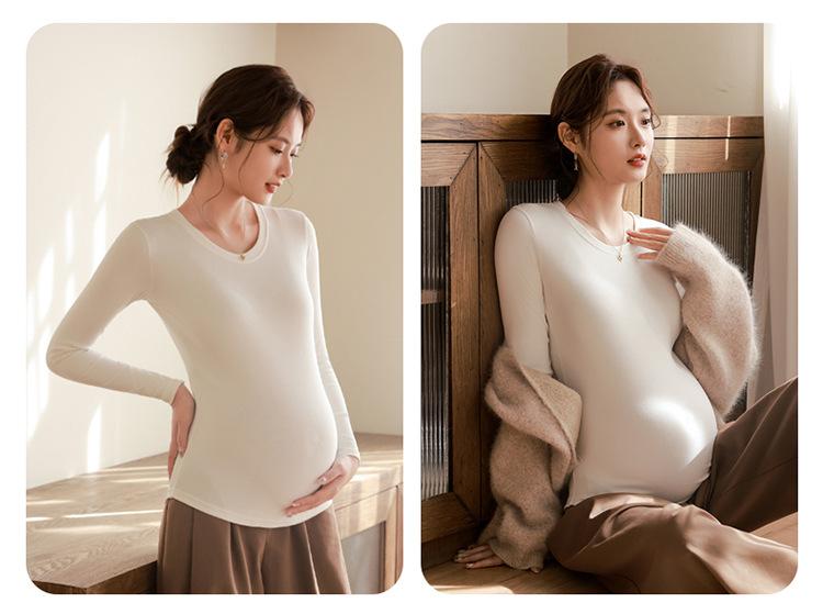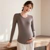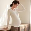 Traje Nuevo para Casa Otoño e Invierno Camiseta Base Primavera y Otoño Interior Top de Embarazo Ajustado Cuello Redondo Manga Larga Ropa de Maternidad
