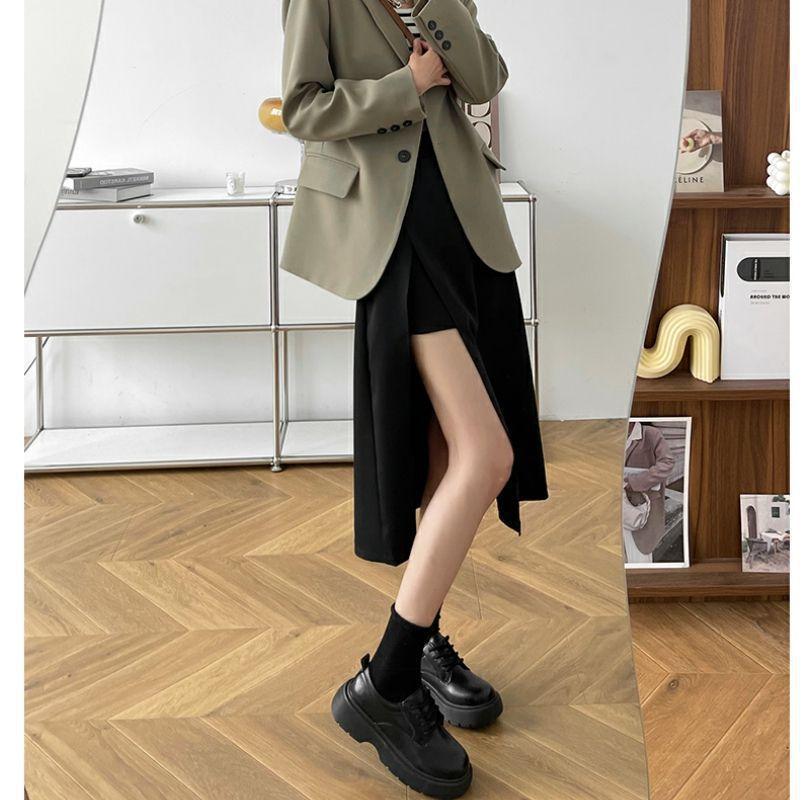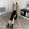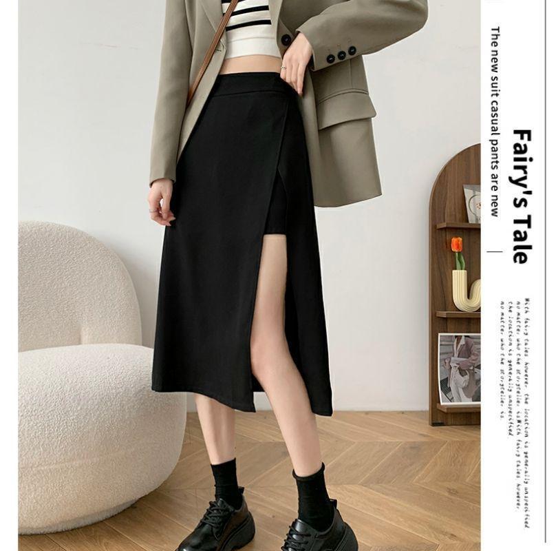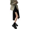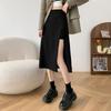 Falda de mujer 2024, nueva falda de verano, de largo medio, combinable con todo, cintura alta, abertura, negra, corte A, caderas estrechas.