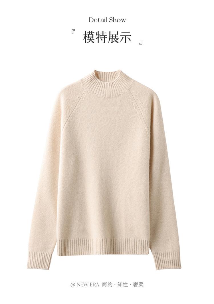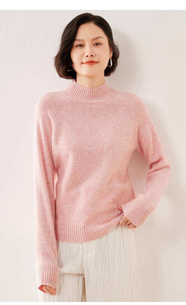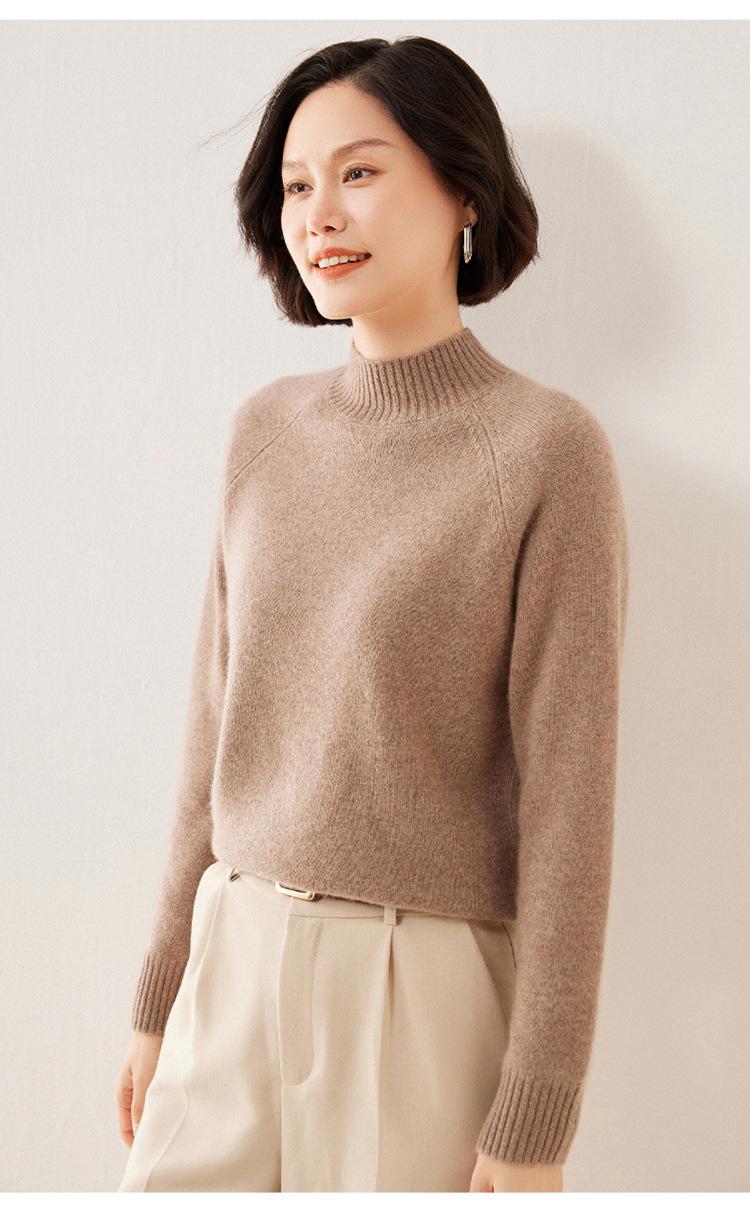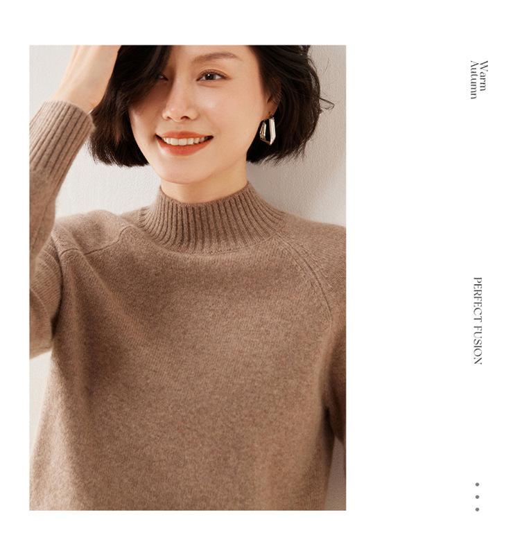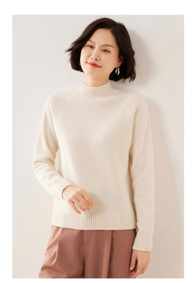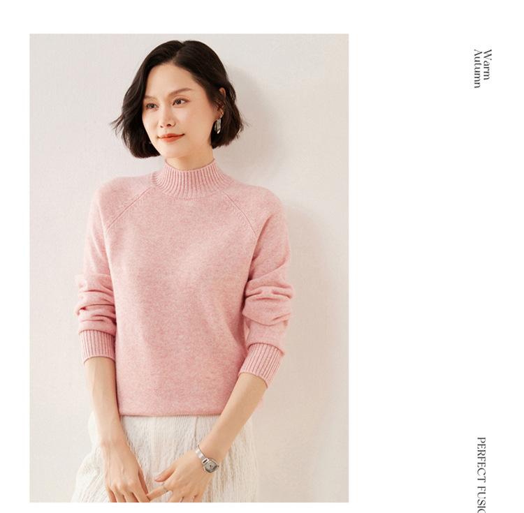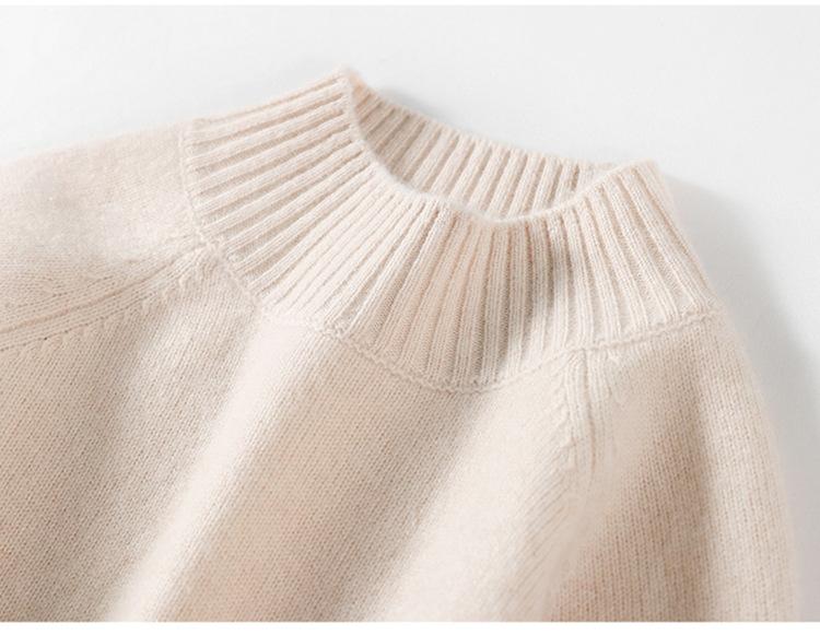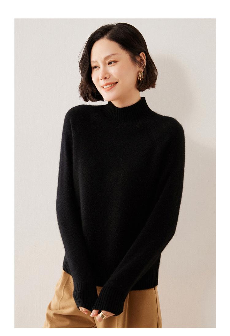 Suéter de lana para mujer, jersey sencillo de otoño e invierno, suéter de manga raglán, camisa gruesa de cachemira con cuello medio y combinación de todo.
