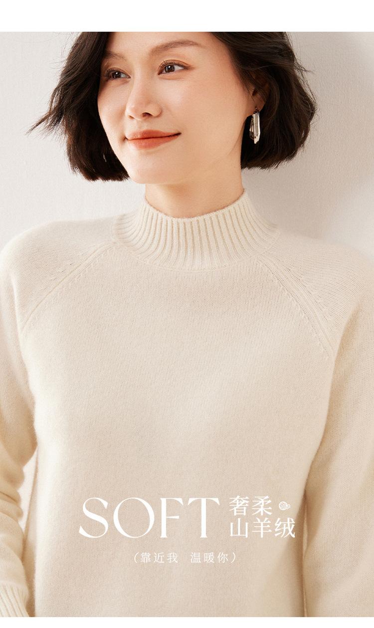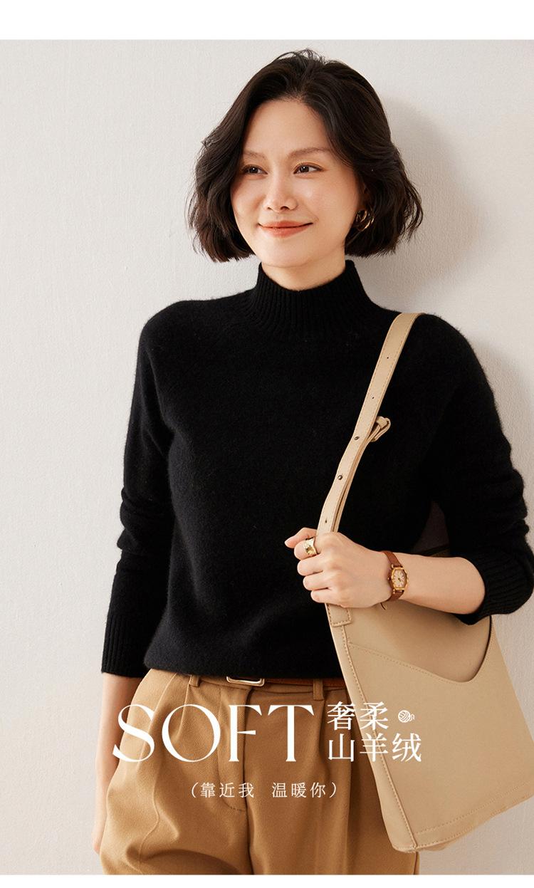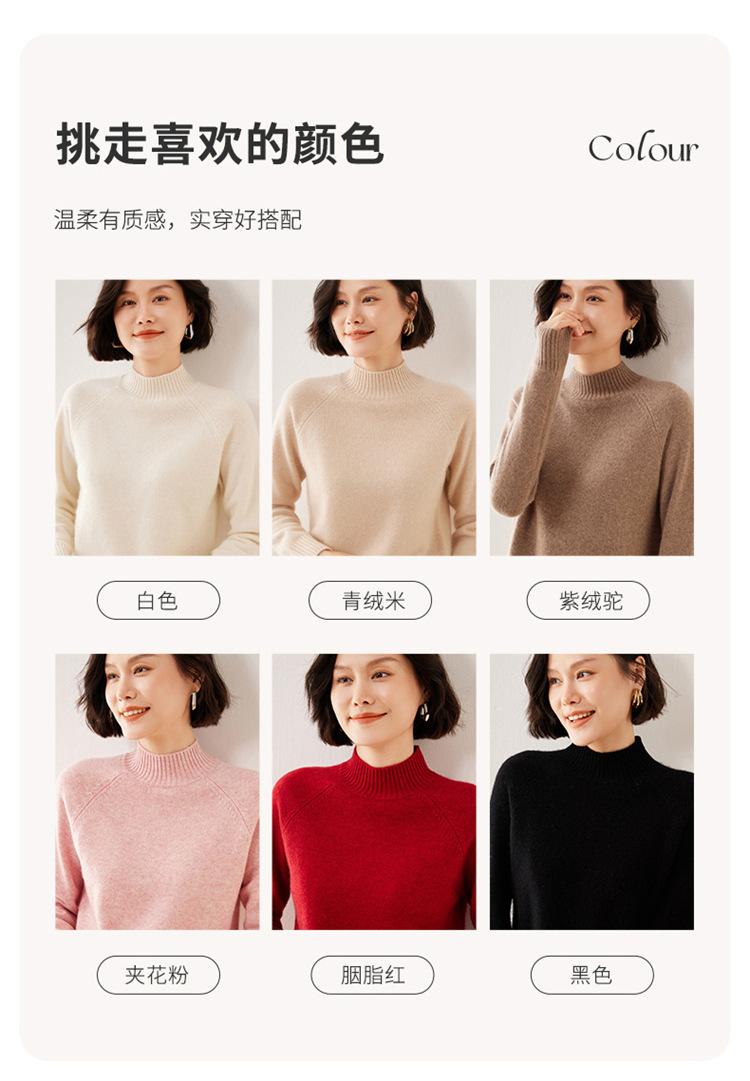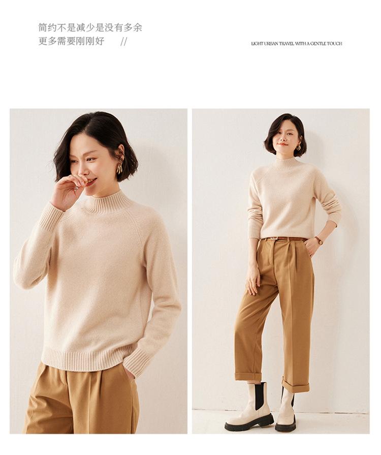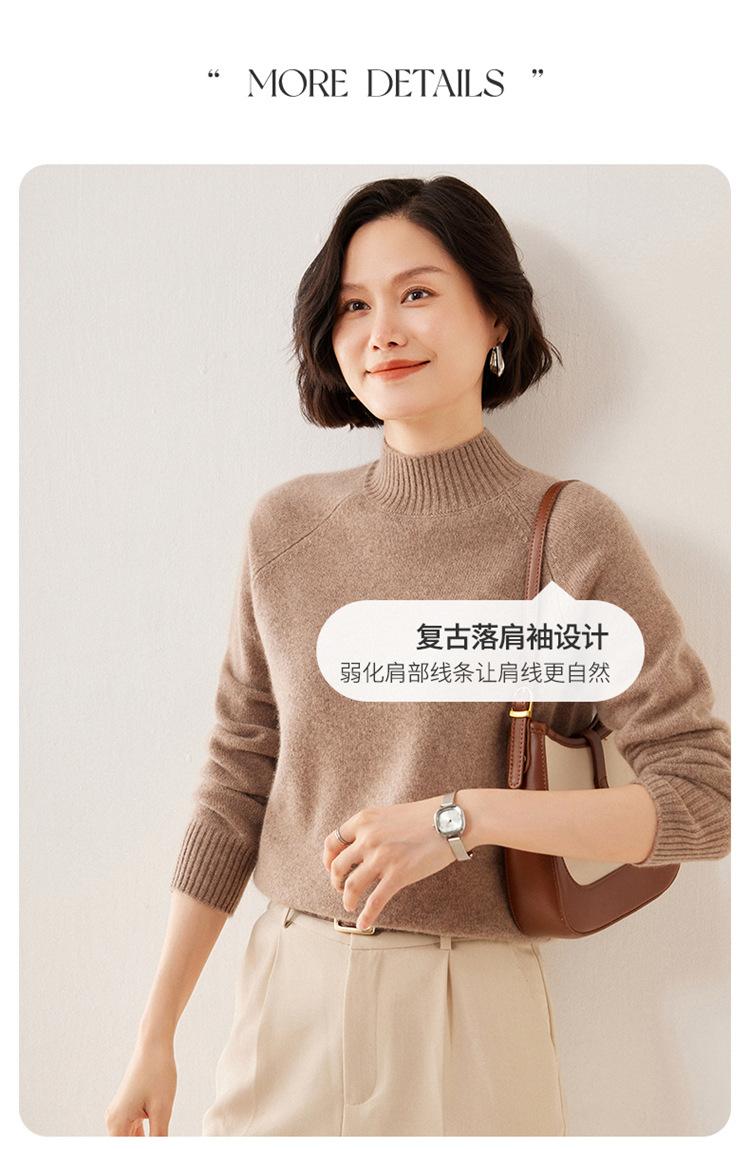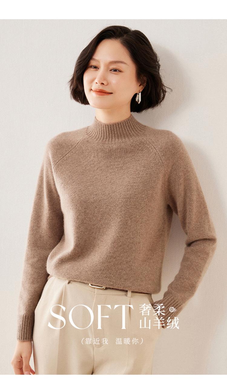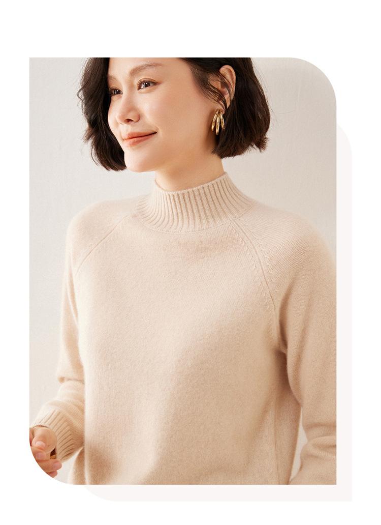 Suéter de lana para mujer, jersey sencillo de otoño e invierno, suéter de manga raglán, camisa gruesa de cachemira con cuello medio y combinación de todo.