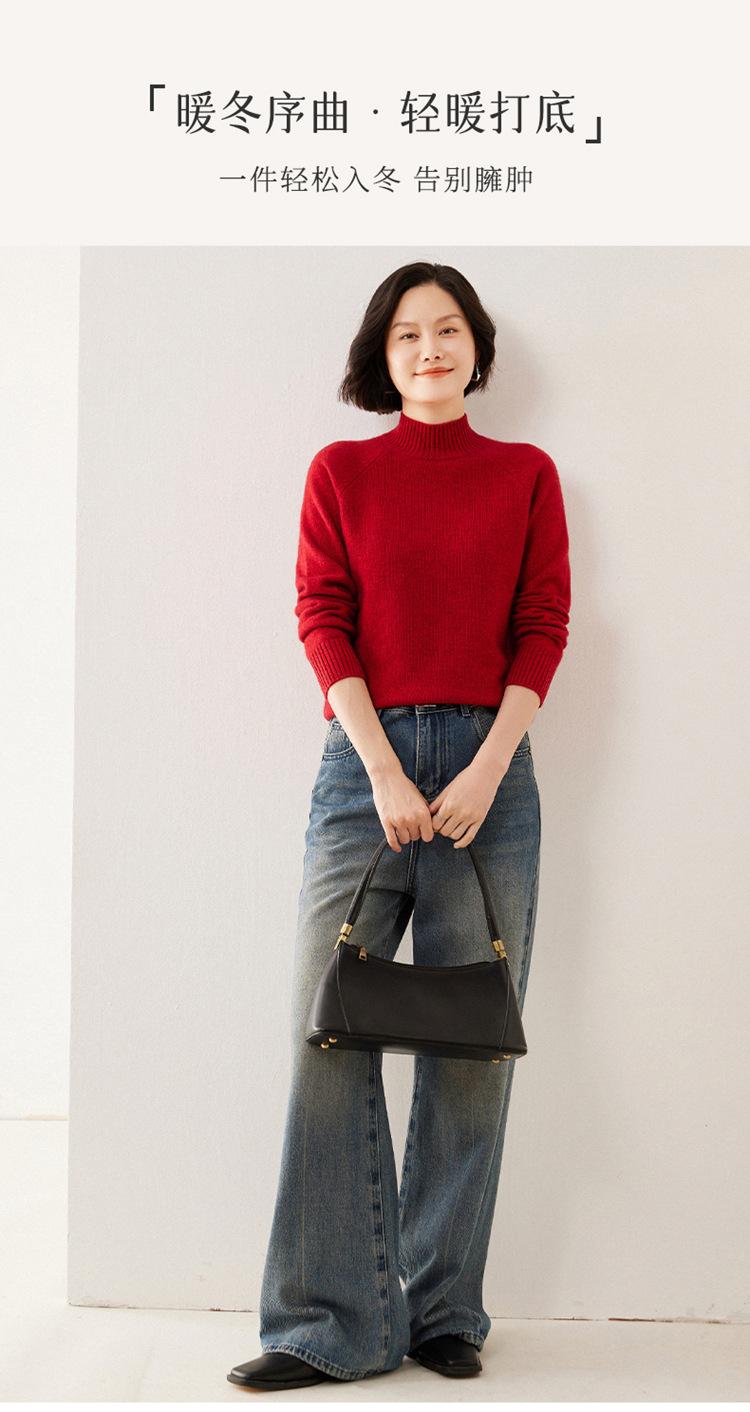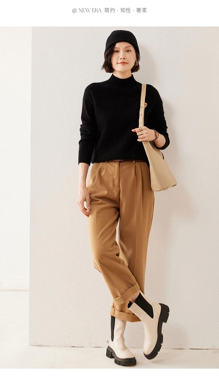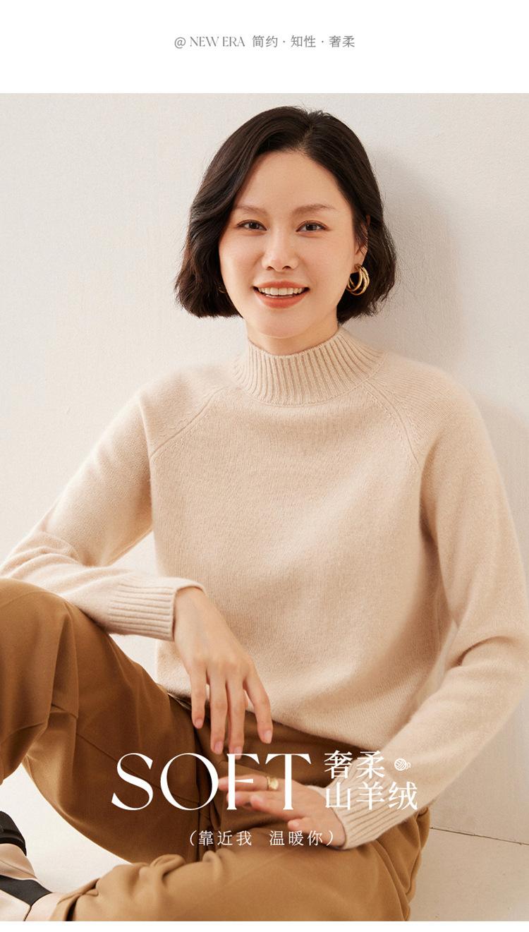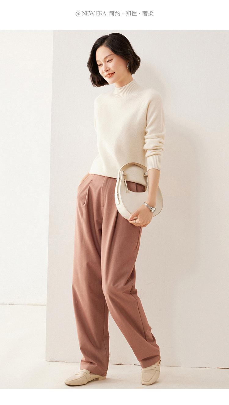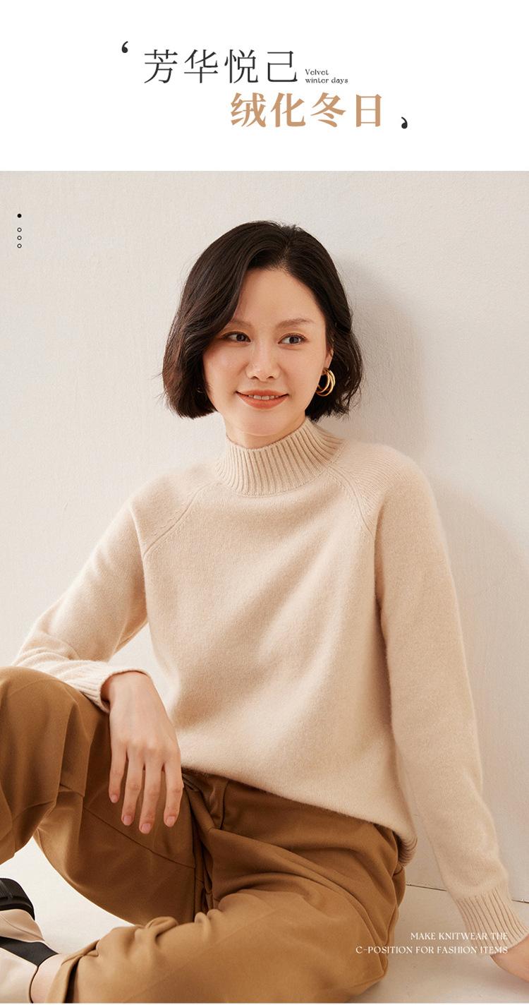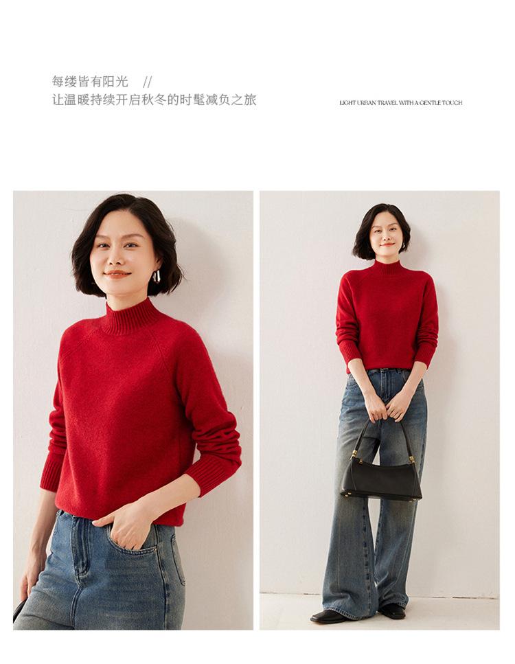 Suéter de lana para mujer, jersey sencillo de otoño e invierno, suéter de manga raglán, camisa gruesa de cachemira con cuello medio y combinación de todo.