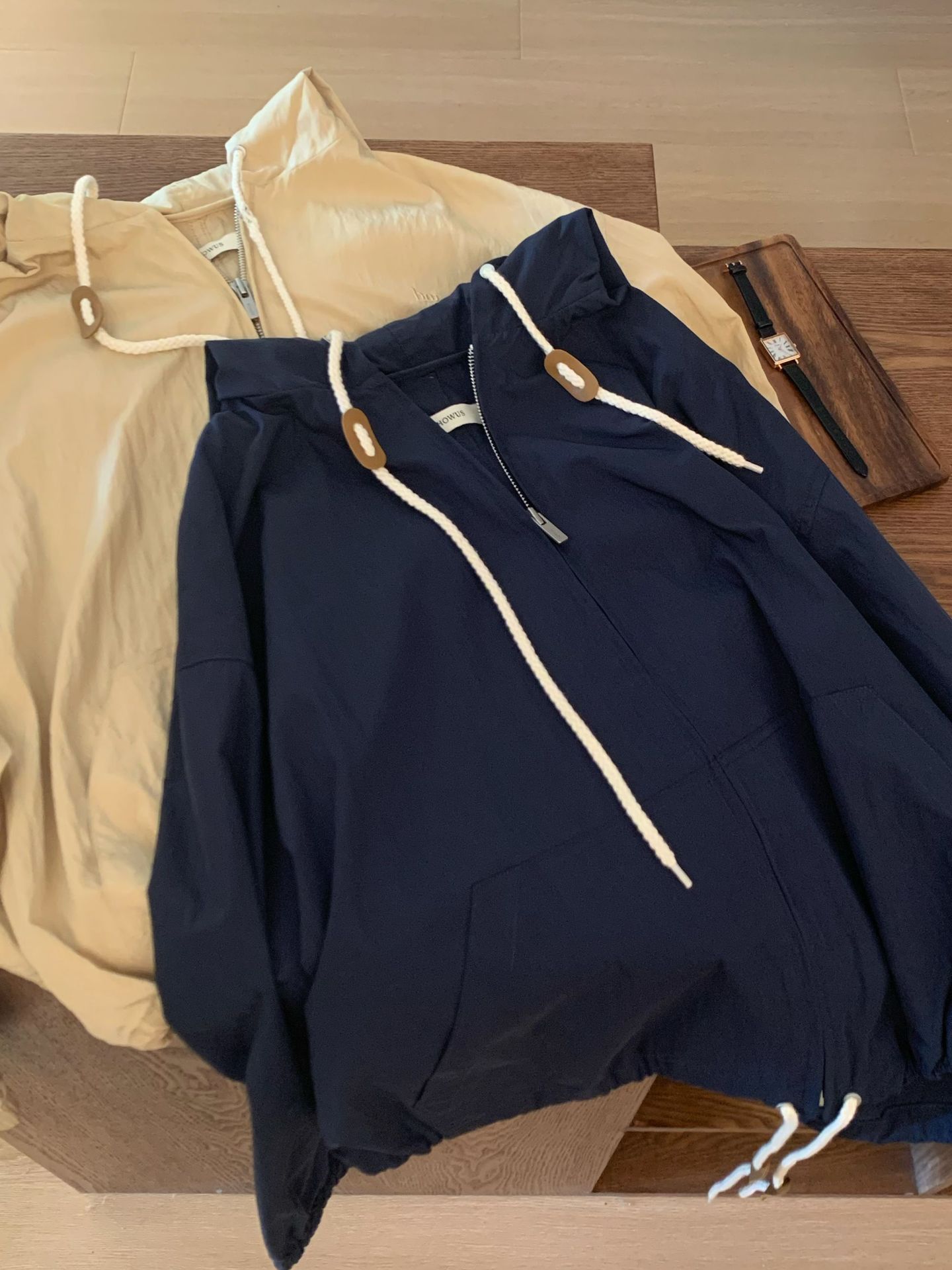 Chaqueta Deportiva Ligera con Capucha y Cremallera para Mujer 2025 Coreana Ins Primavera Holgada Casual con Cordón Tophow*S