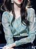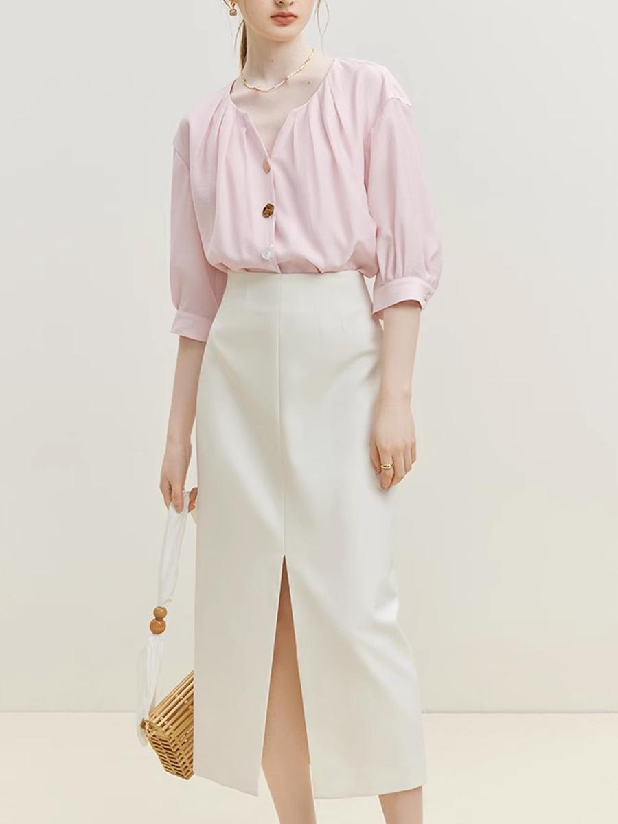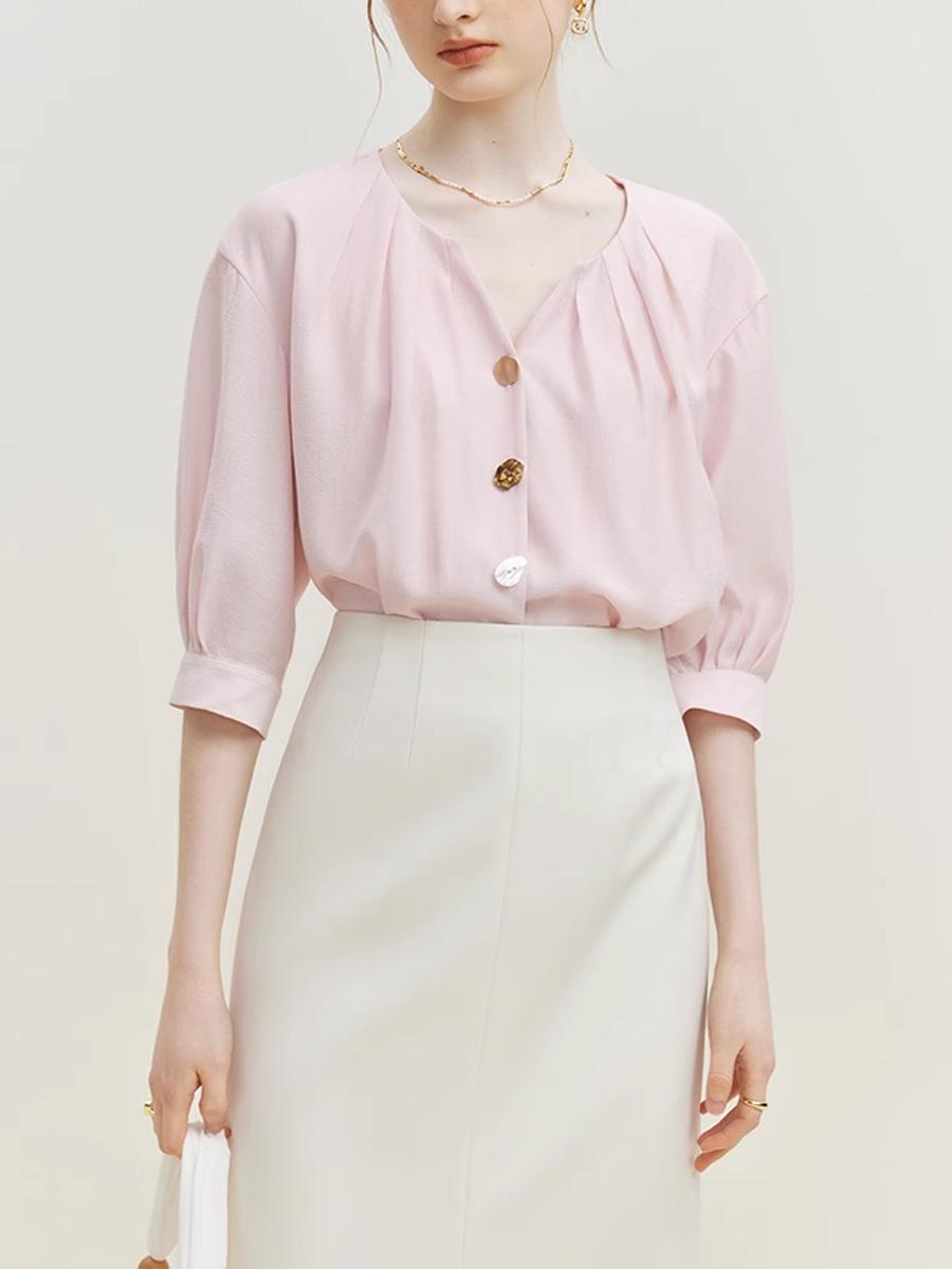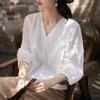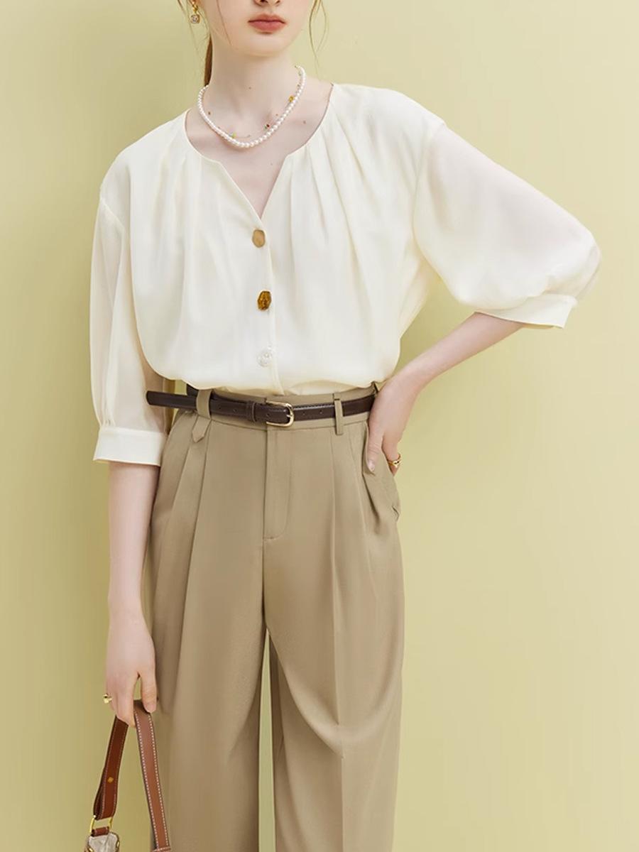 Camisa Elegante de Estilo Francés con Cuello en V Verano Nuevo Exclusivo Único Dama Manga Siete Moda Casual Top