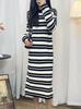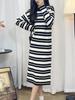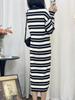 Vestido de Punto de Color Rayado Nuevo de Primavera Temprana 2025 Estilo Casual Francés Relajado Sobre la Rodilla Cuello Redondo Falda Recta