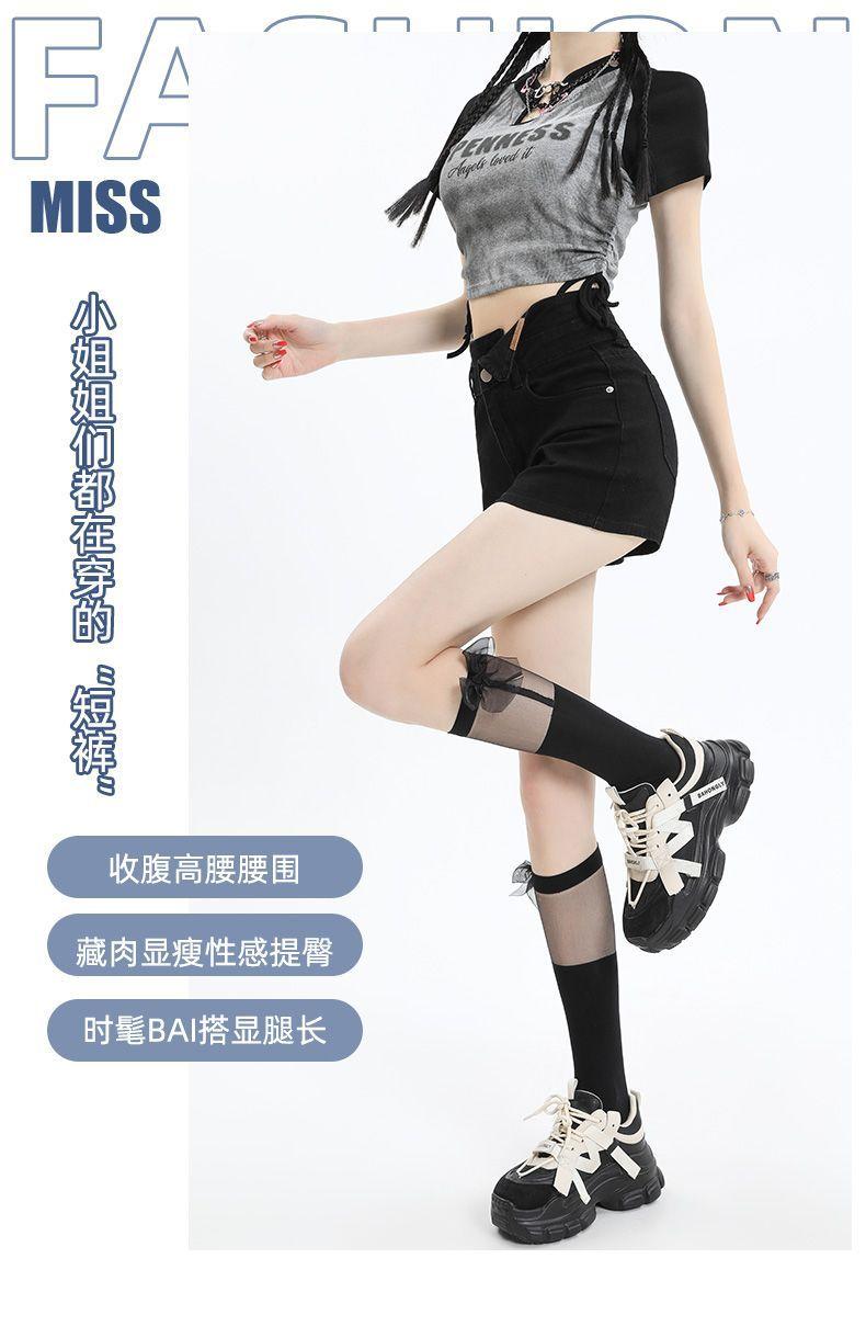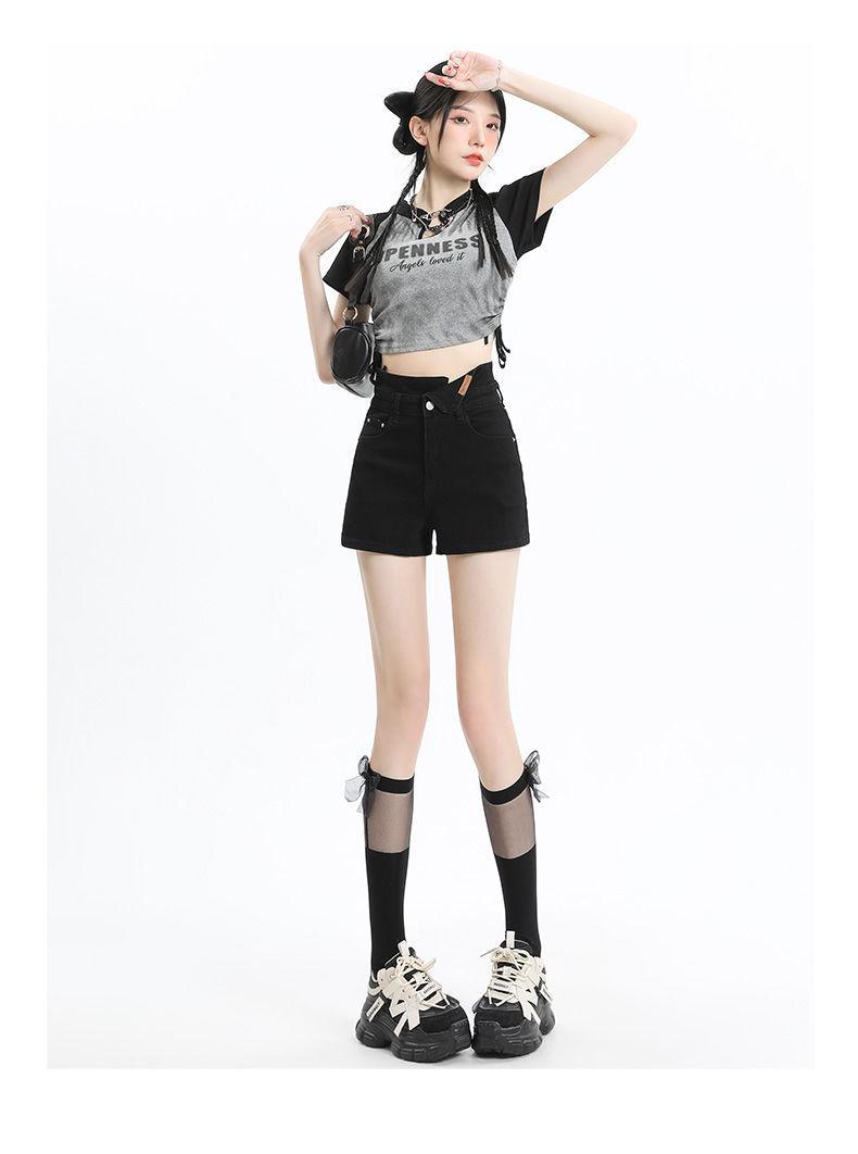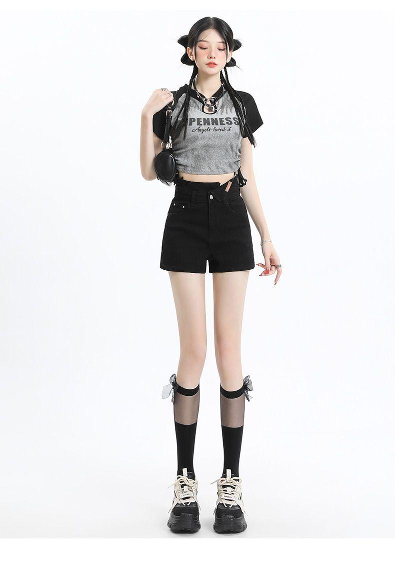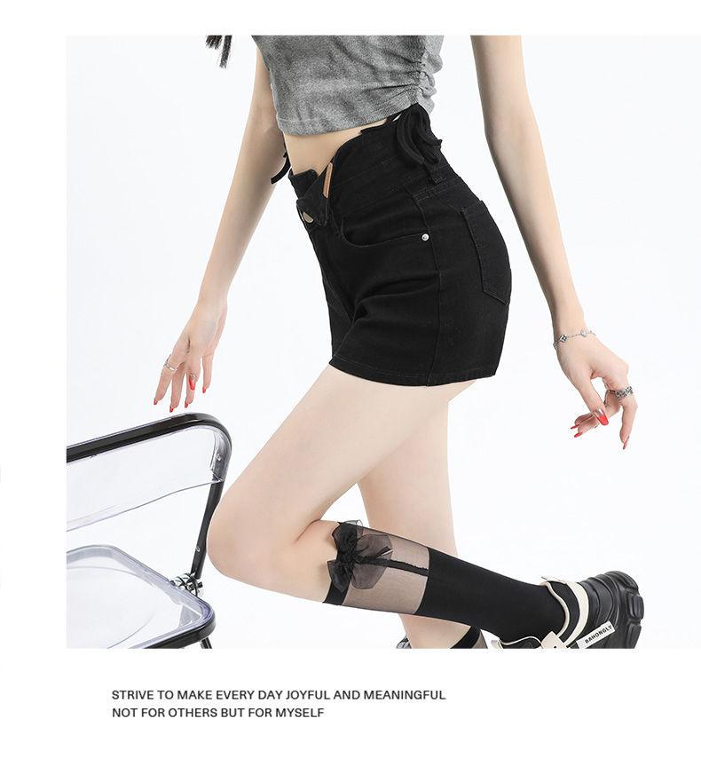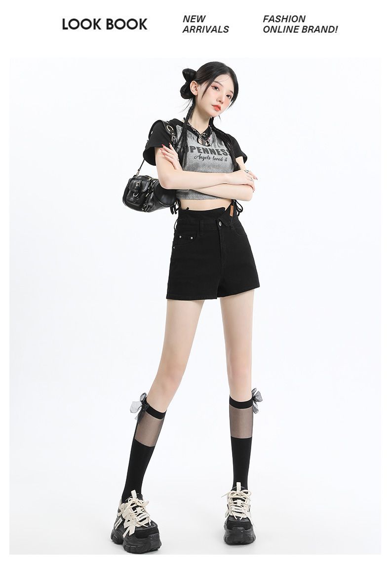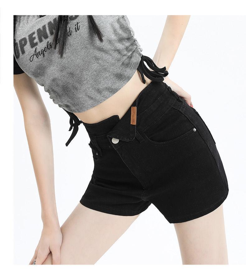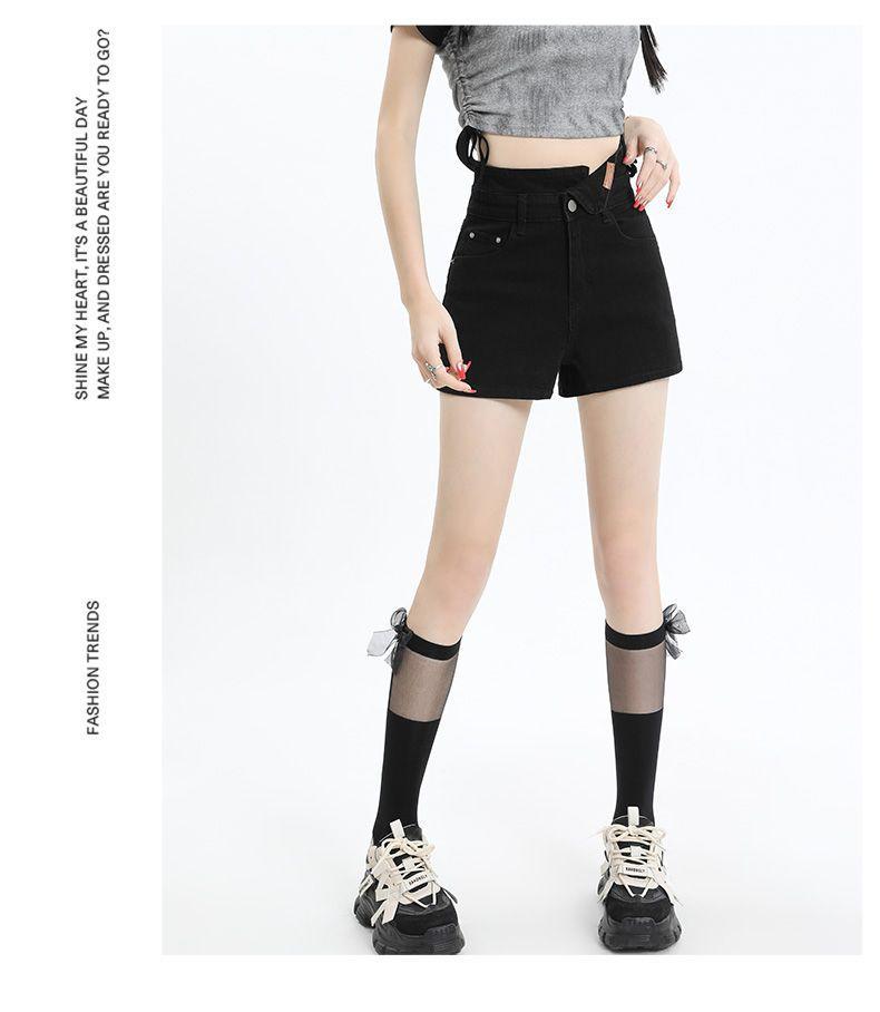 Shorts de mezclilla negros irregulares adelgazantes para mujer verano 2024 nuevo diseño sentido súper cintura alta línea A pierna ancha hot pants
