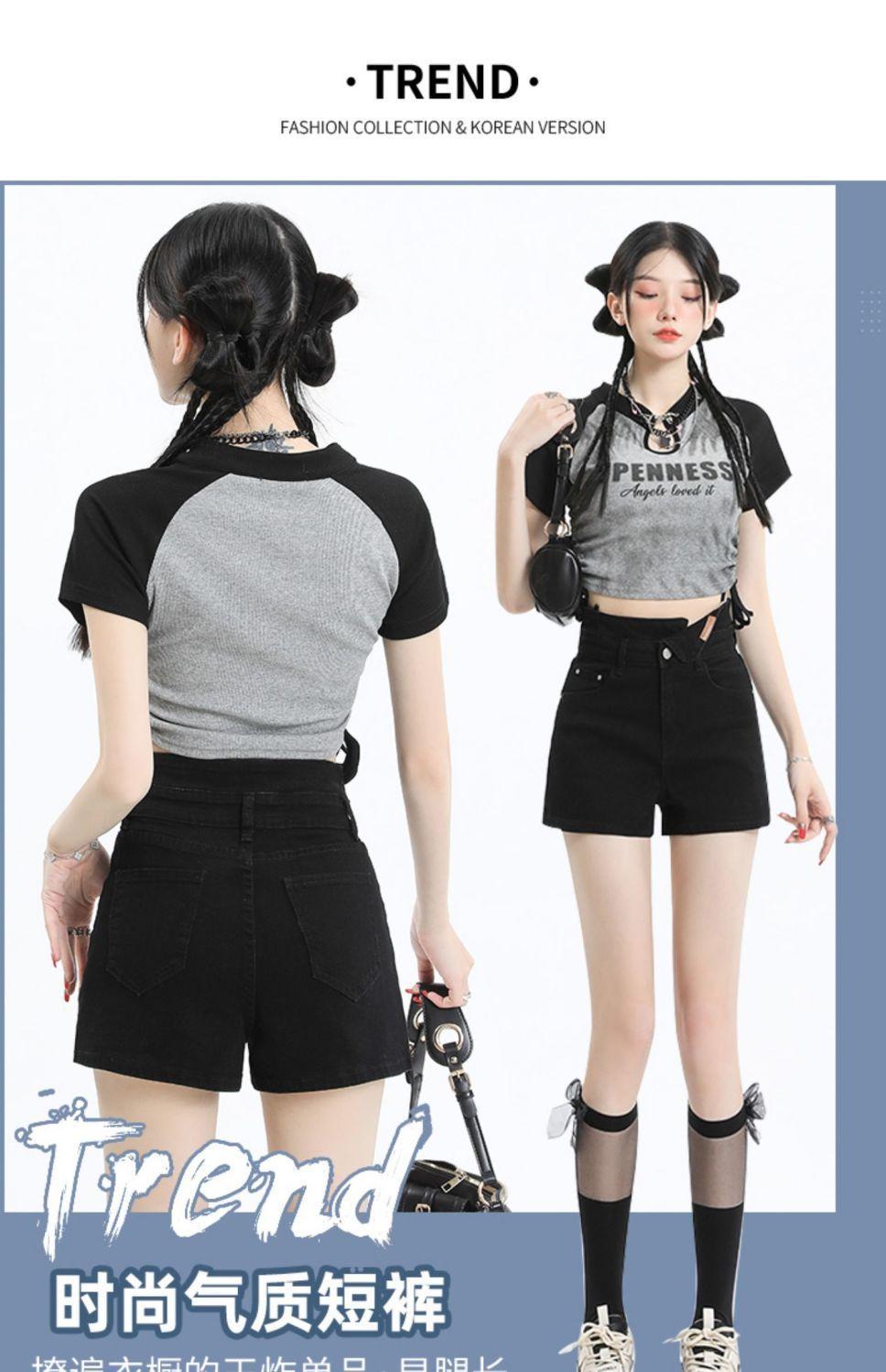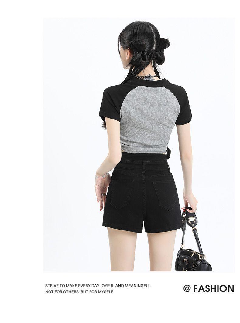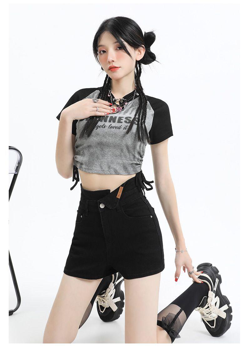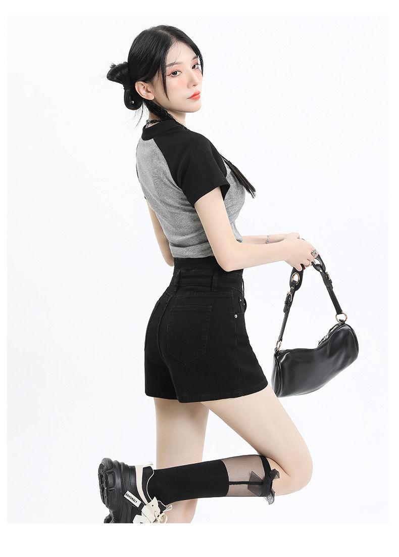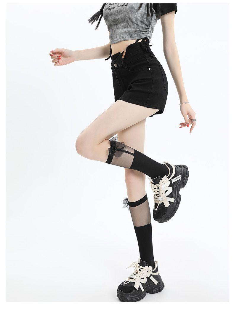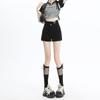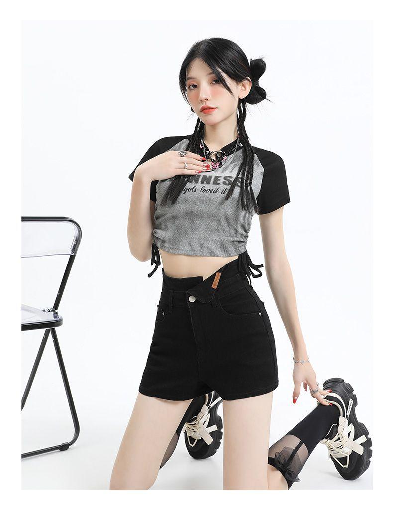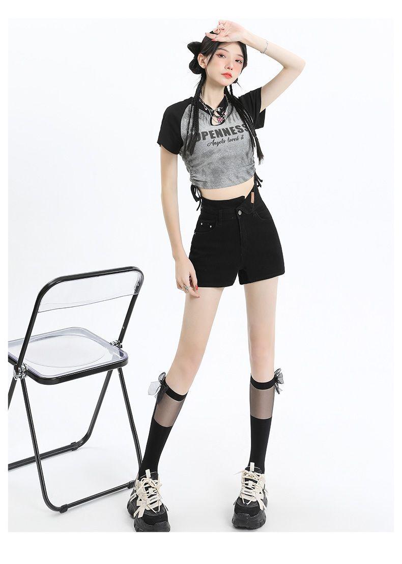 Shorts de mezclilla negros irregulares adelgazantes para mujer verano 2024 nuevo diseño sentido súper cintura alta línea A pierna ancha hot pants