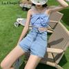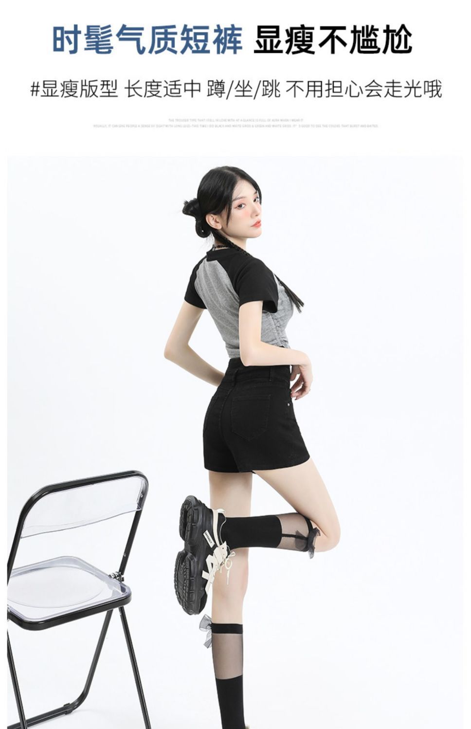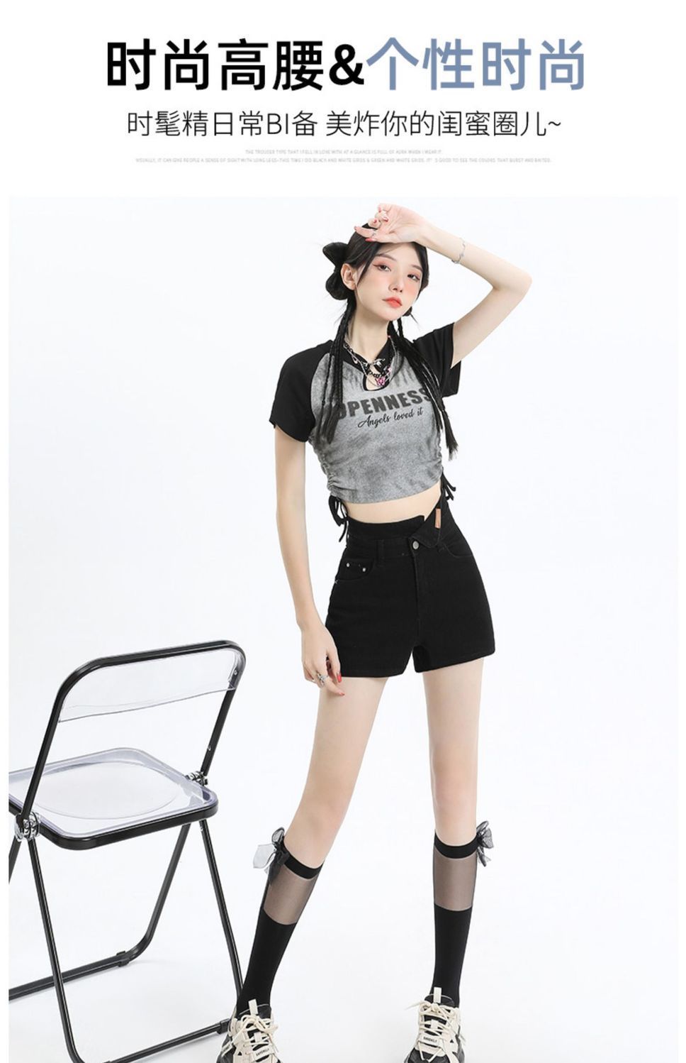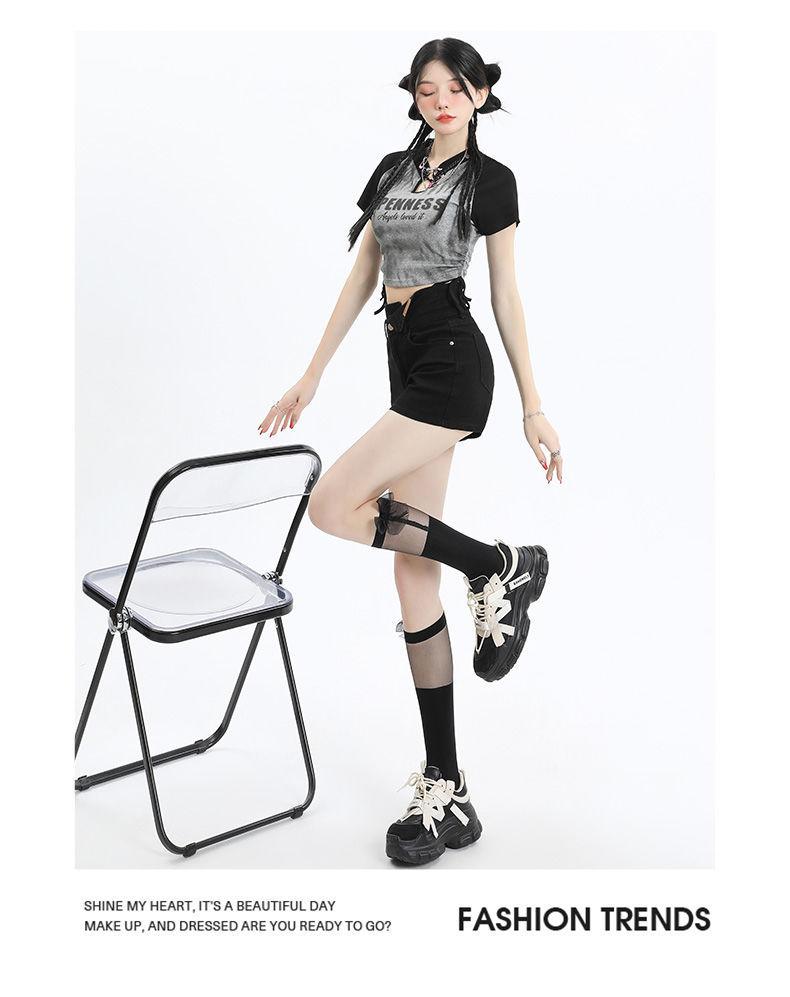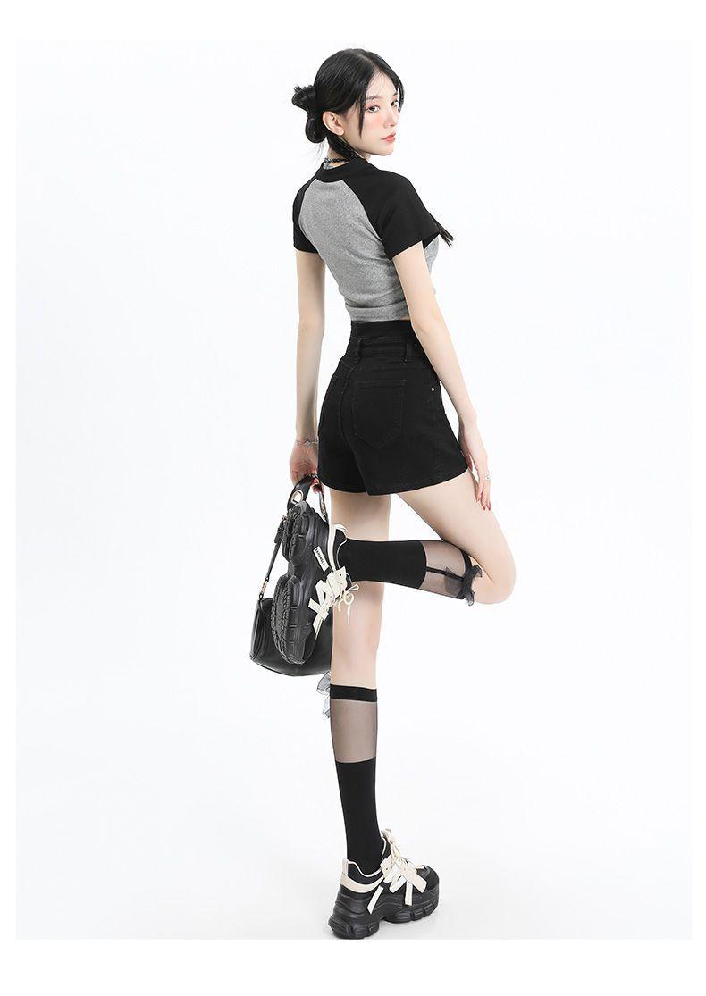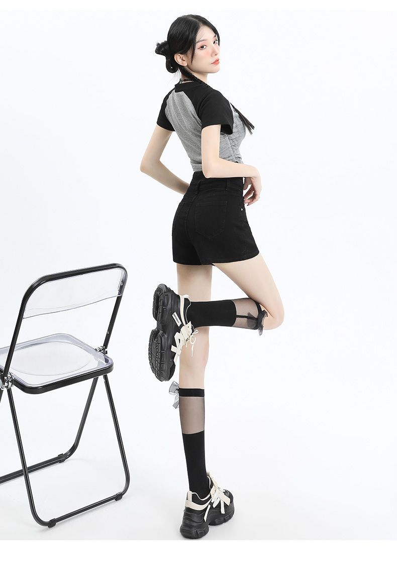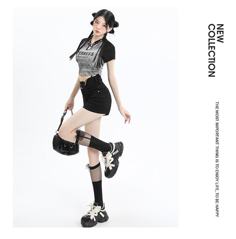 Shorts de mezclilla negros irregulares adelgazantes para mujer verano 2024 nuevo diseño sentido súper cintura alta línea A pierna ancha hot pants