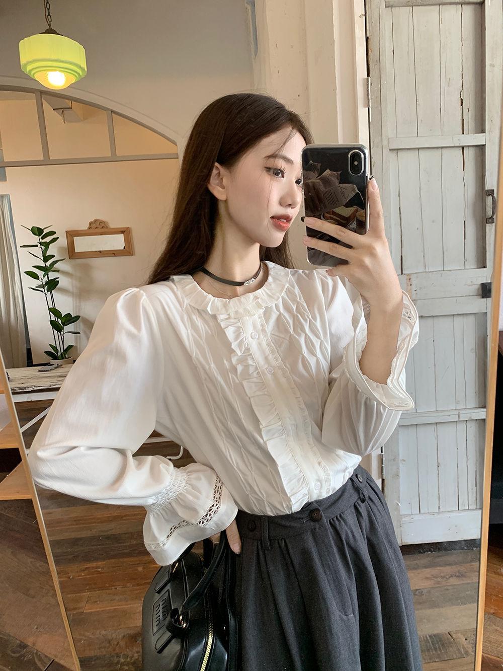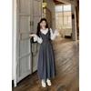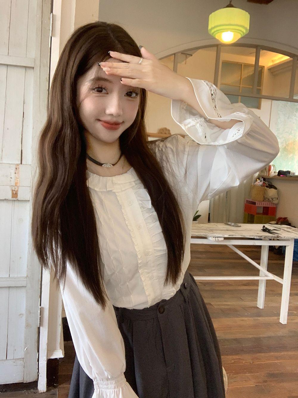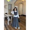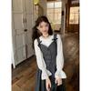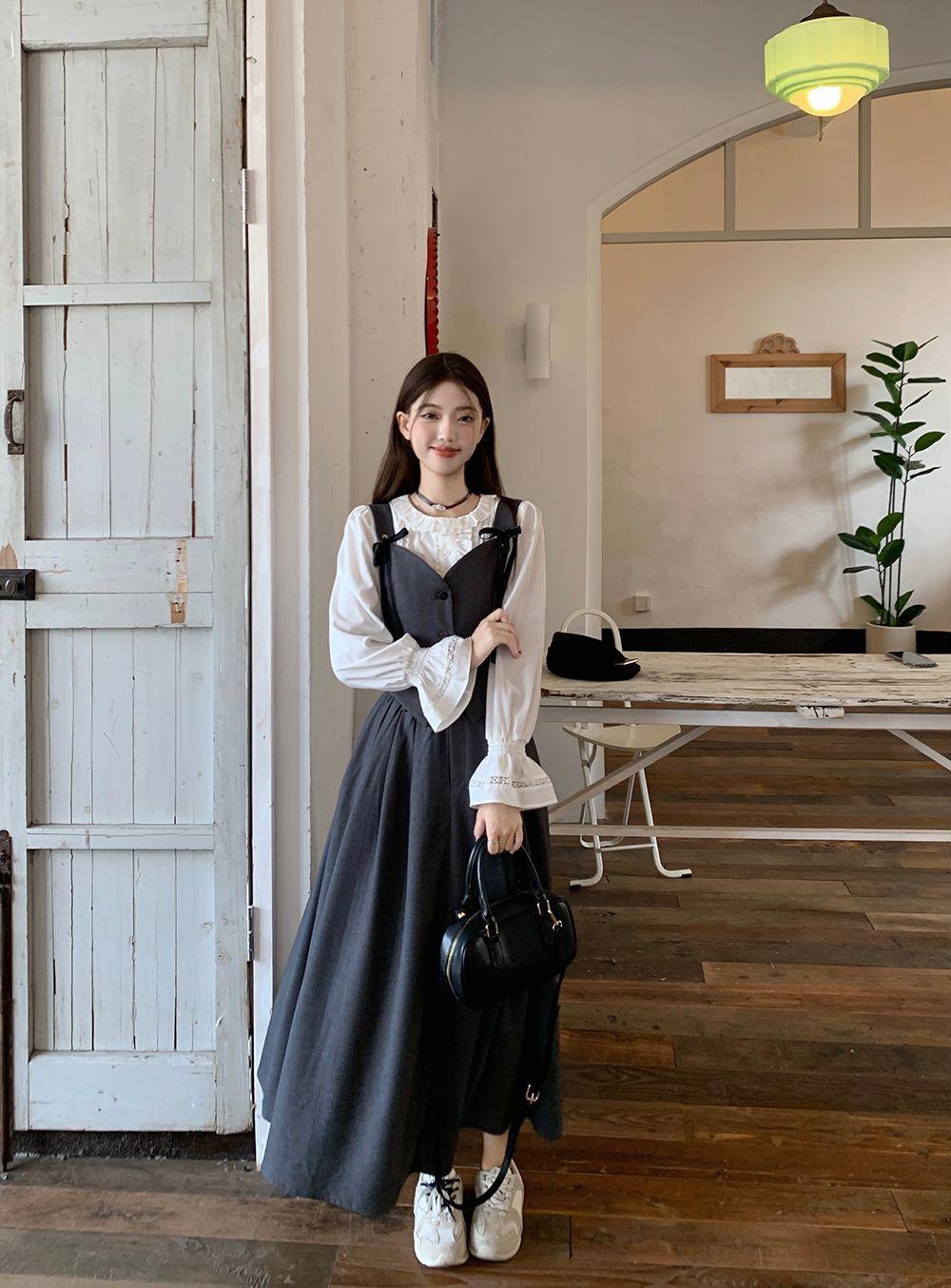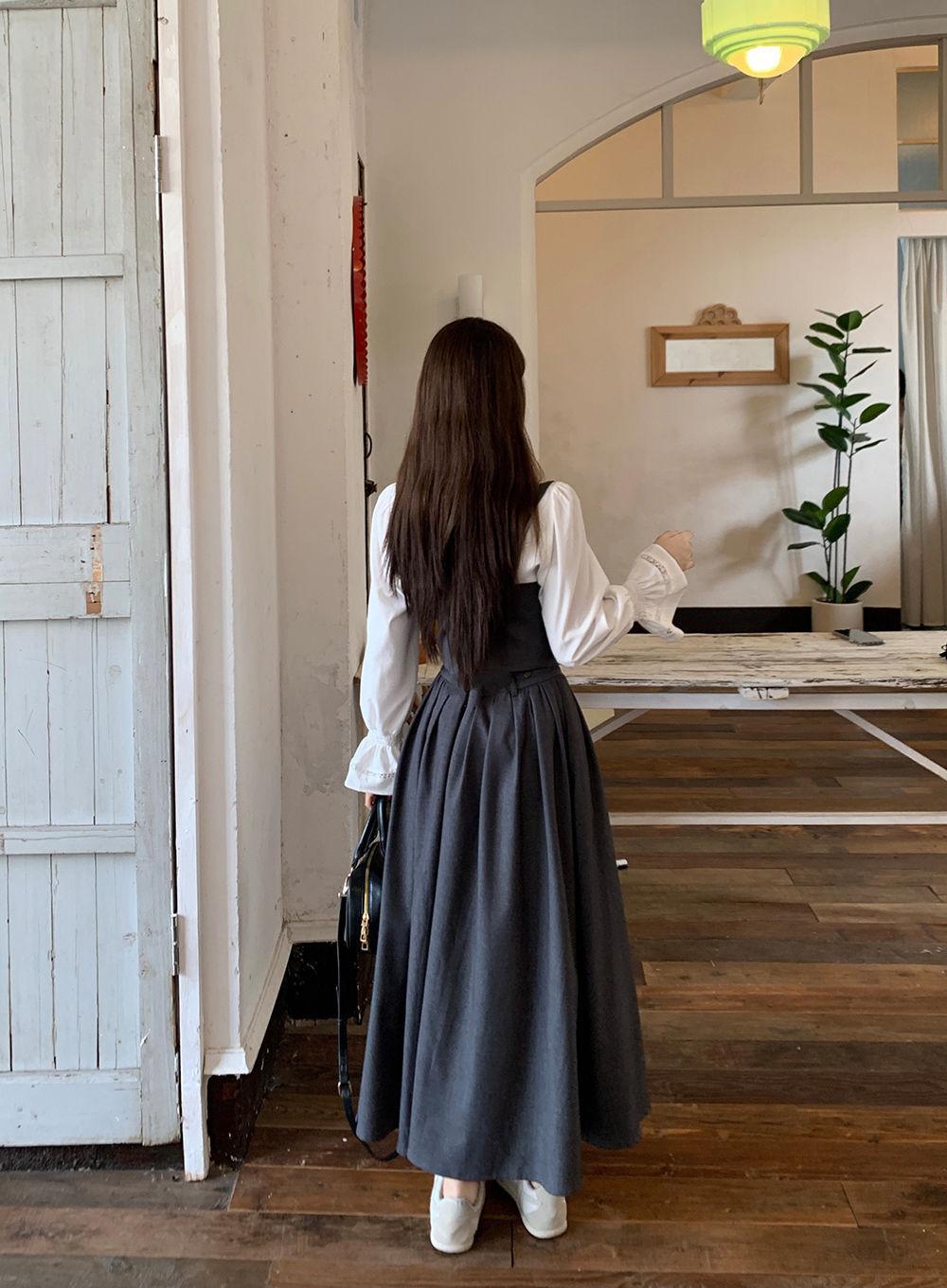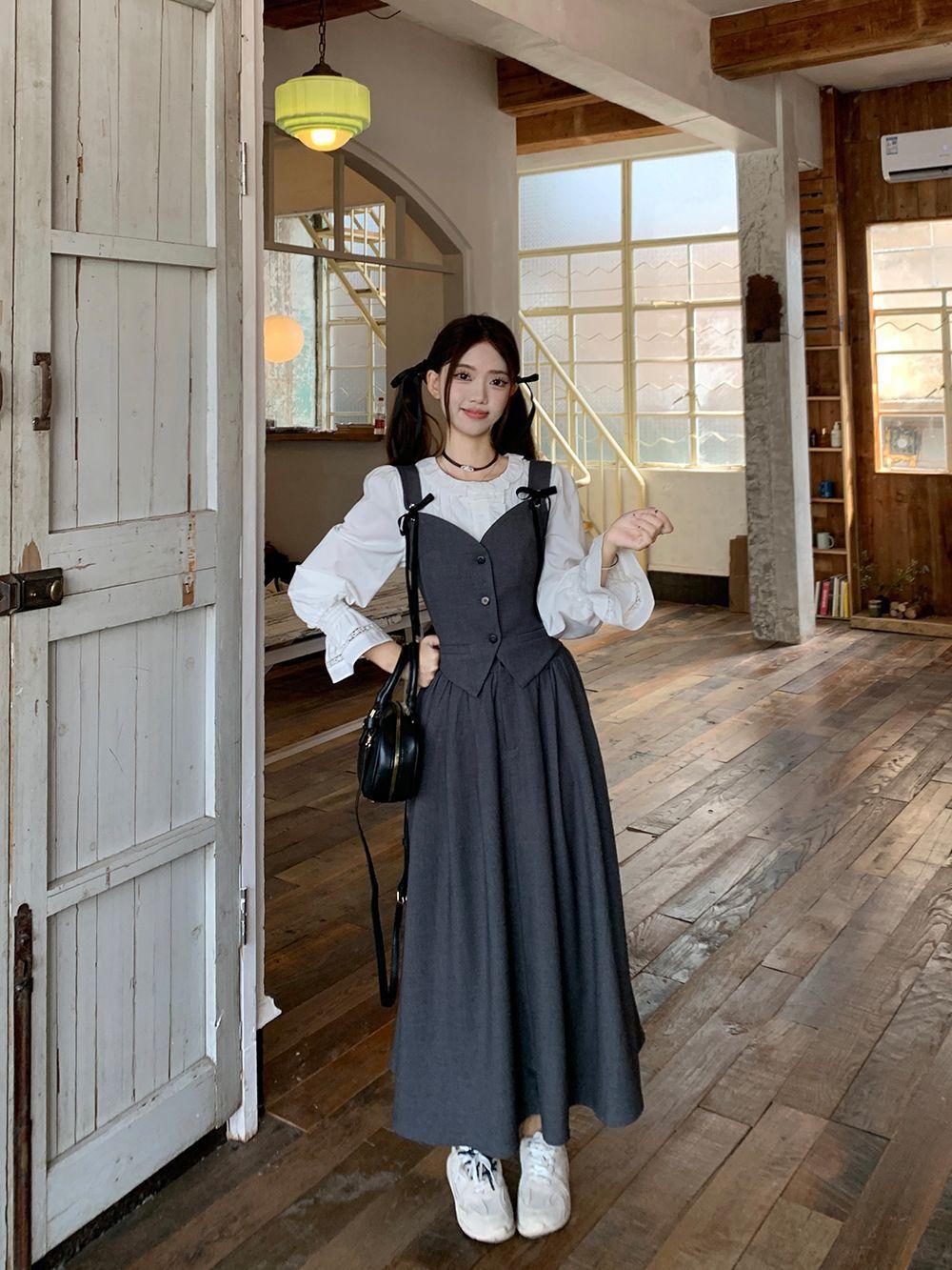 Chaleco de Capas con Lazo, Camisa Hueca de Manga Larga, Falda Slim a Media Pierna, Traje de Moda Nueva para Principios de Primavera para Mujer