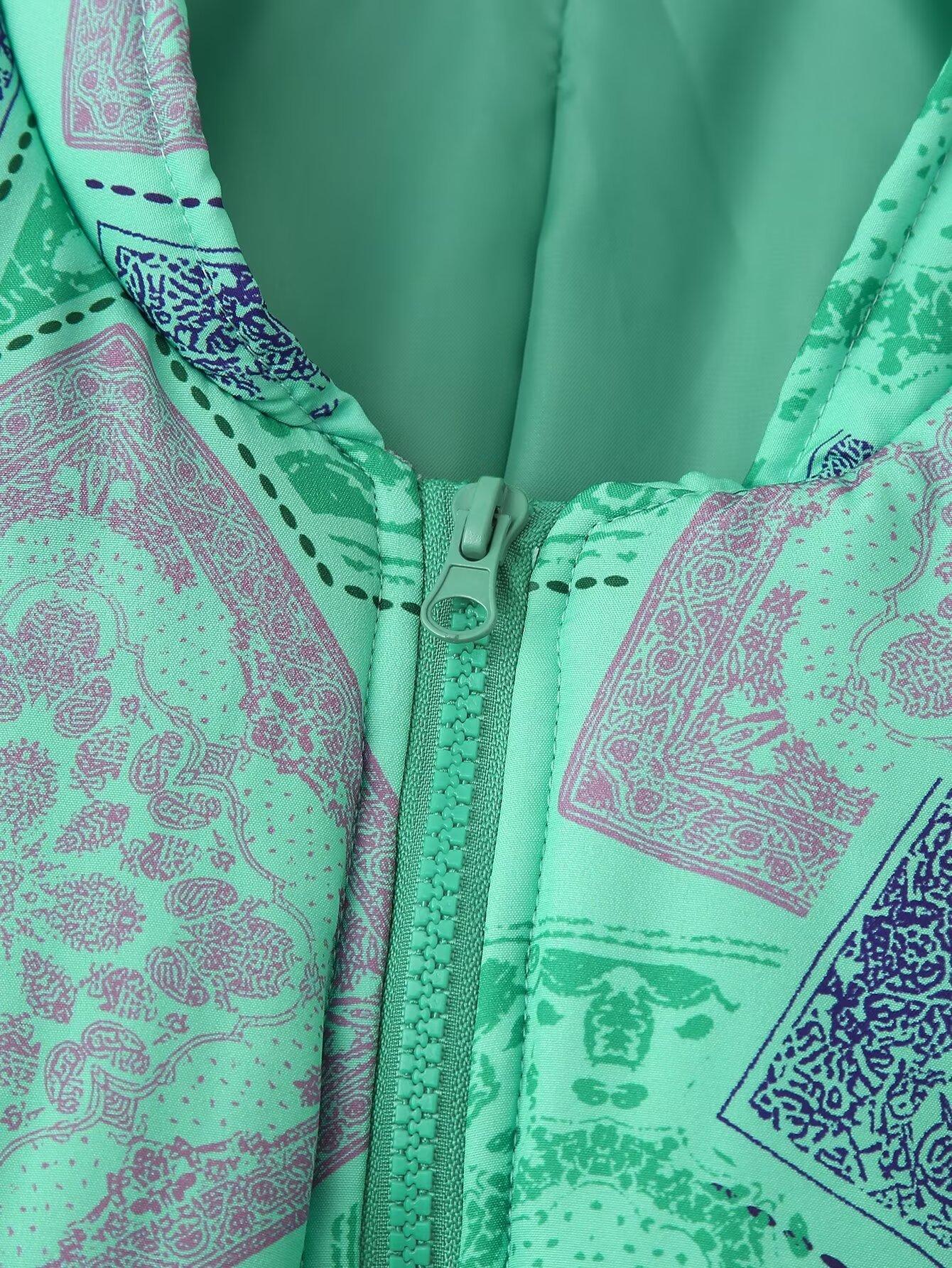 Ropa de Mujer de Estilo Europeo y Americano 2024 Otoño e Invierno Nuevo Retro Estampado Suelto Casual Cuello Alto Manga Larga Cierre Cremallera Chaqueta de Algodón