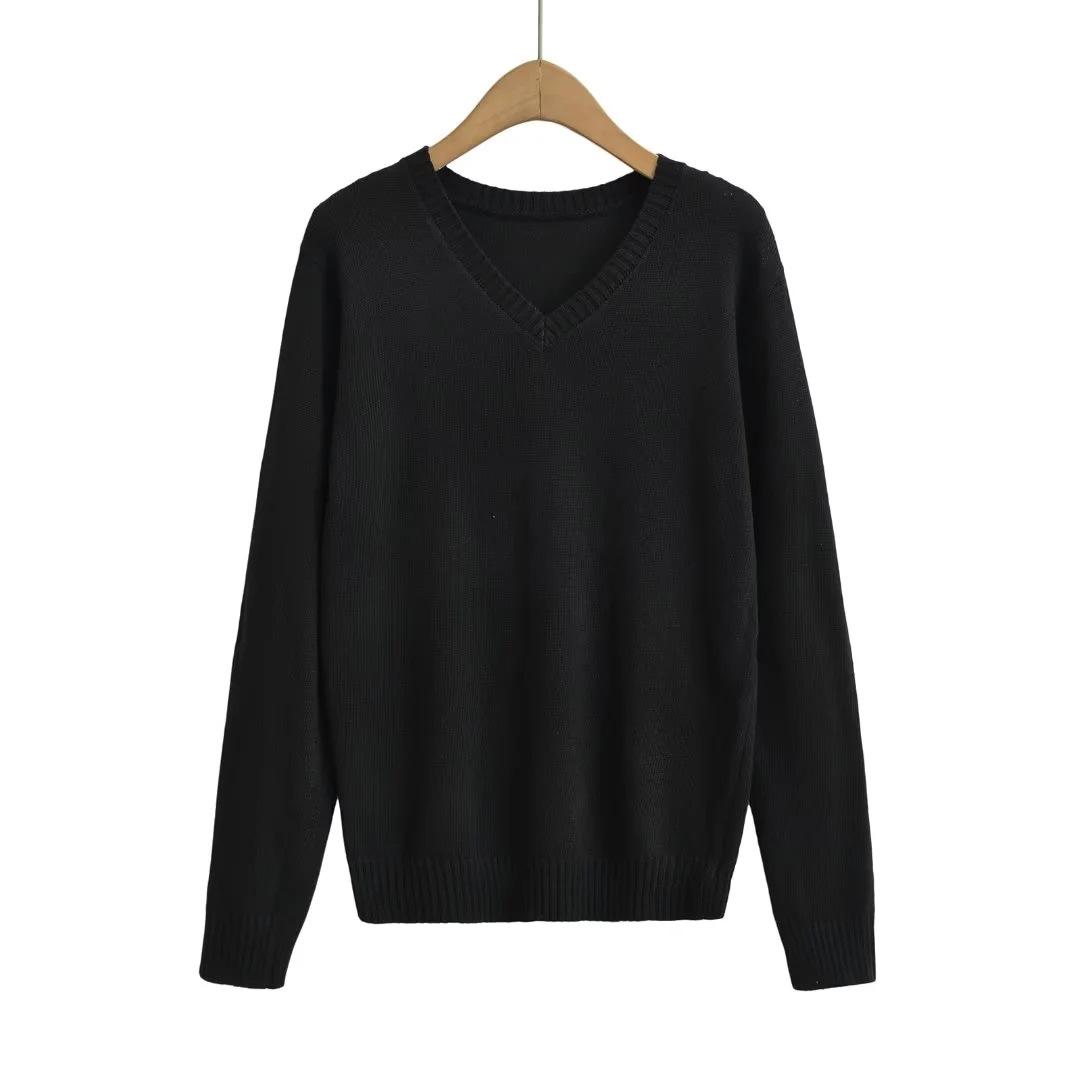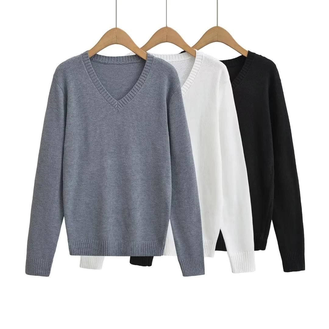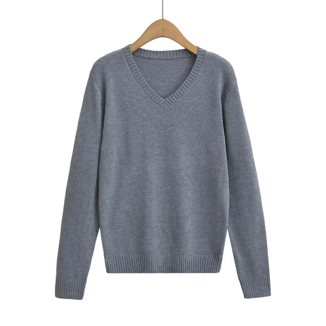Suéter de punto básico sencillo de estilo americano para mujer, jersey holgado con cuello en V, informal, combinable, otoño 2024