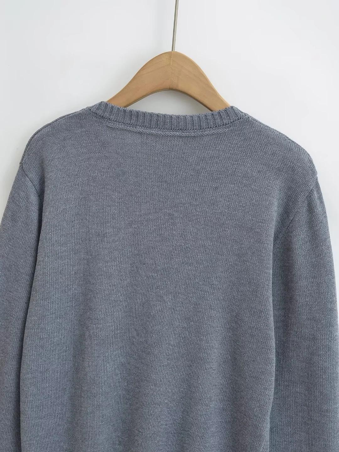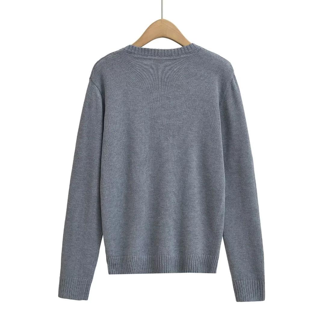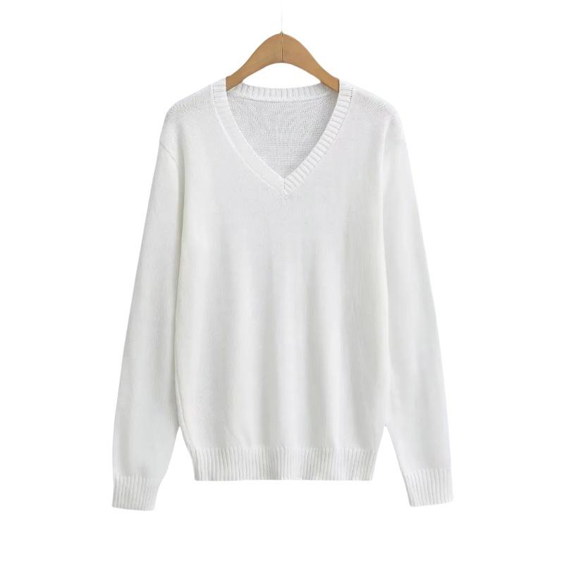 Suéter de punto básico sencillo de estilo americano para mujer, jersey holgado con cuello en V, informal, combinable, otoño 2024