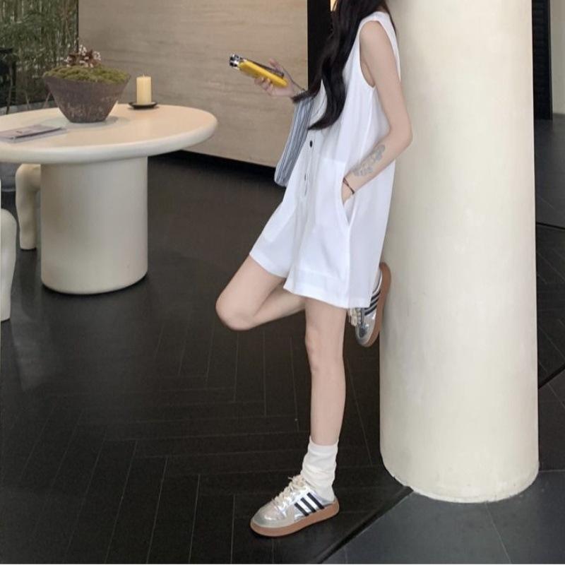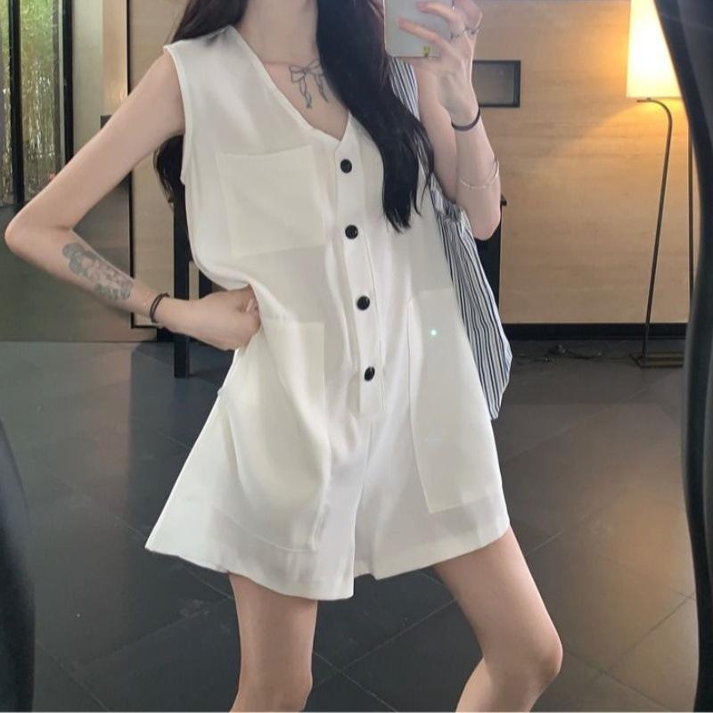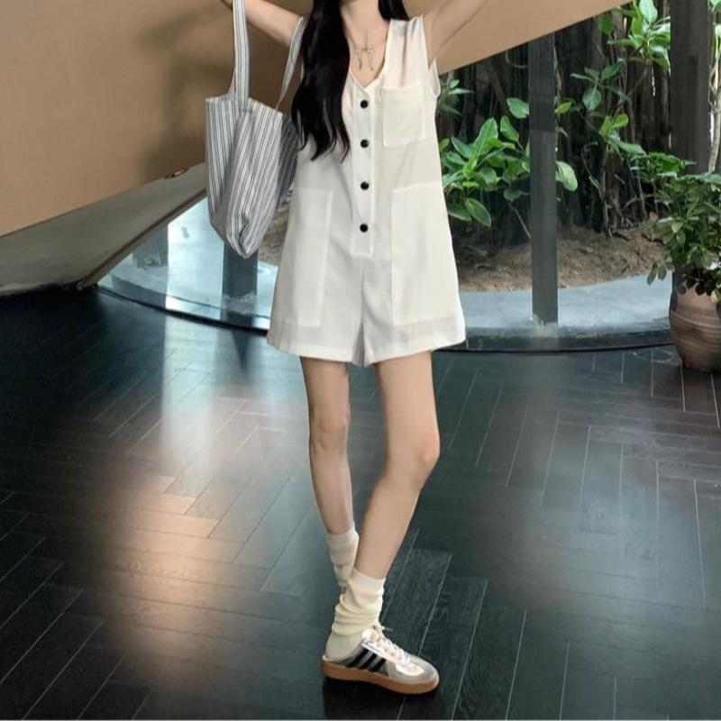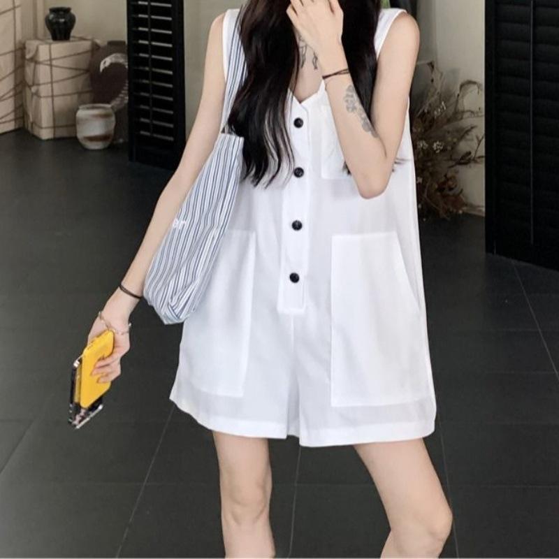 Mono pequeño blanco sin mangas para mujer 2023 verano nuevo diseño casual abotonadura sencilla pantalones de pierna ancha shorts