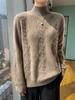 Suéter de lana 100% para mujer, cuello alto medio, camisa de punto, base sencilla, otoño e invierno, nueva, parte superior interior holgada que combina con todo.