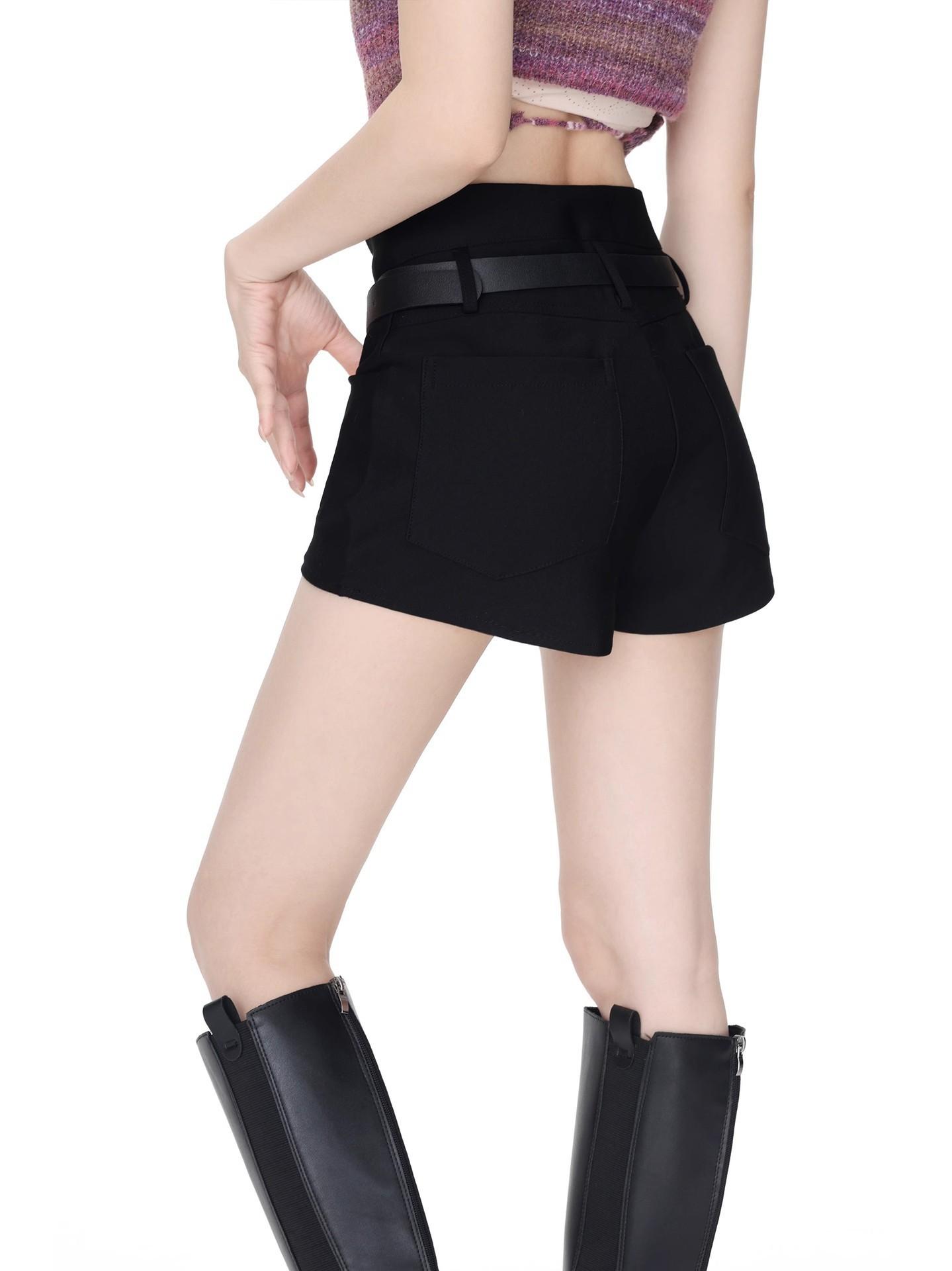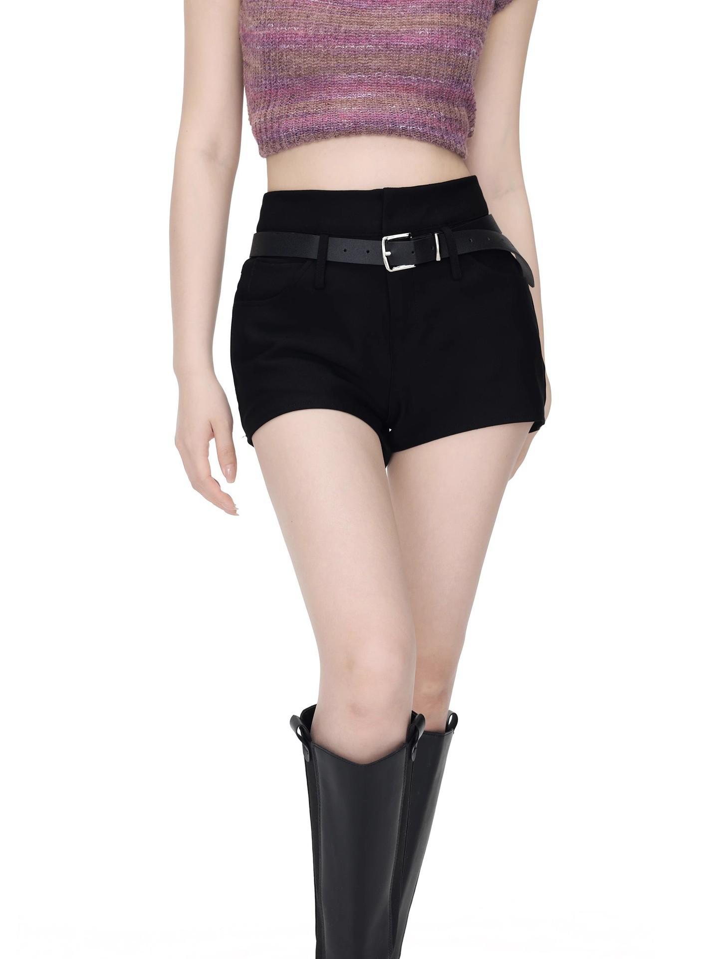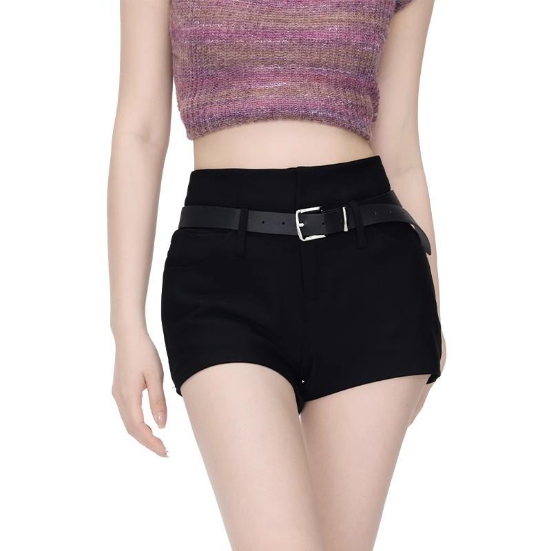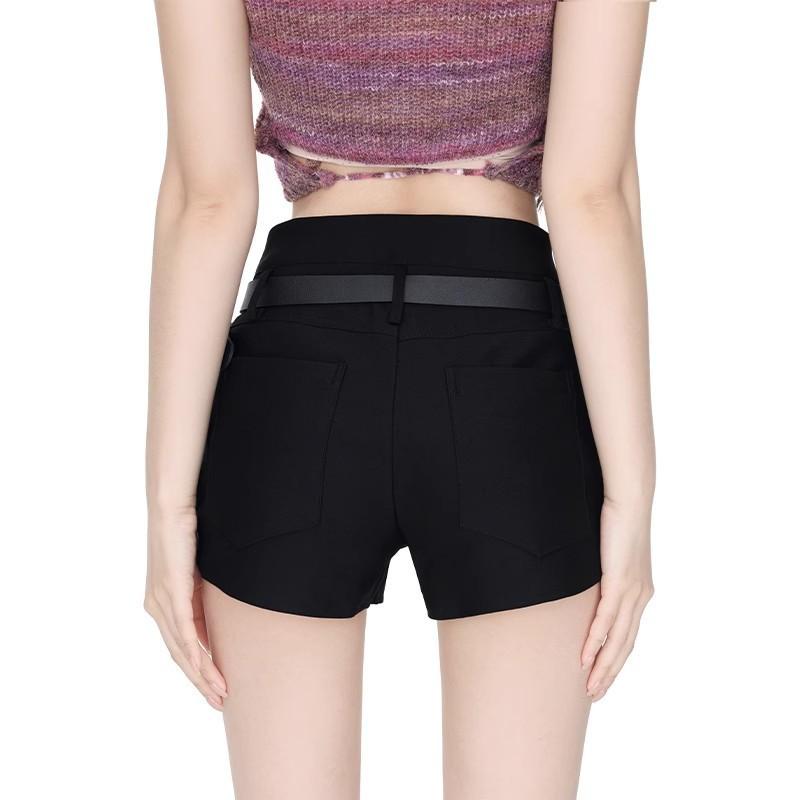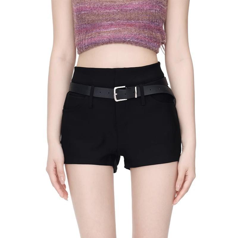 Shorts Negros Calientes para Mujer en Verano, Cintura Alta Sexy Chicas Calientes con Cinturones, Look Adelgazante Pantalones Cortos Casuales Calientes